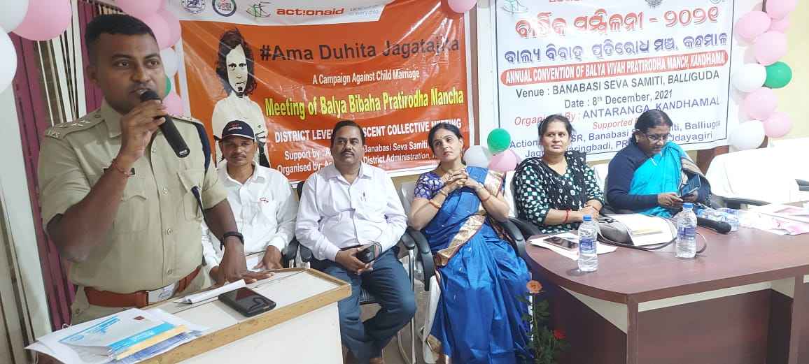 ବାଲିଗୁଡା,(ସୁଶିଲ କୁମାର ପାଣିଗ୍ରାହୀ):କନ୍ଧମାଳ ଜିଲ୍ଲା ବାଲିଗୁଡା ସ୍ଥିତ ବନବାସୀ ସେବା ସମିତିର ସଭାଗୃହ ପରିସରରେ ଅନ୍ତରଙ୍ଗ, କନ୍ଧମାଳ ଦ୍ଵାରା ବାଲ୍ୟ ବିବାହ ପ୍ରତିରୋଧ ମଞ୍ଚର ବାର୍ଷିକ ସମ୍ମିଳନୀ ଅନୁଷ୍ଠିତ ହୋଇଯାଇଛି l ଏଥିରେ ମୁଖ୍ୟ ଅତିଥି ଭାବରେ ଉପଖଣ୍ଡ ପୋଲିସ ଅଧିକାରୀ ଗୁନ୍ଦାଲାଲ ରେଡି ରାଘବେନ୍ଦ୍ର ଯୋଗ ଦେଇଥିବା ବେଳେ ଜିଲ୍ଲା