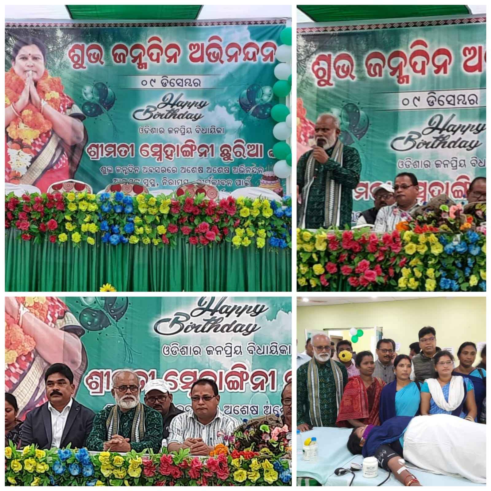 ସମାଜସେବୀ ଗଣେଶ ସାହୁ,ଜିଲ୍ଳା ଯୁବ ସମ୍ପାଦକ ଅରବିନ୍ଦ ହୋତା, ବରିଷ୍ଠ ନେତା ତୋଷବନ୍ତ ବେହେରା,ସରପଞ୍ଚ ସଂଘ ସଭାପତି ସୁଶାନ୍ତ ସାହୁ, ବ୍ଳକ ମହିଳା ସଭାନେତ୍ରୀ ସୁଧାମୟୀ ମେହେର, ବ୍ଳକ ଛାତ୍ର ସଭାପତି ସୁଶିଲ ବୁଧିଆ ପ୍ରମୁଖ ଯୋଗଦାନ କରି ସ୍ନେହାଙ୍ଗିନୀ ଙ୍କ ଦିର୍ଘାୟୁ କାମନା କରିଥିଲେ lଜନ୍ମଦିନ ସ୍ମୃତି କୁ ମନେପକାଇ ଆୟୋଜିତ ଏହି ରକ୍ତଦାନ ଶିବିରରେ ସମୁଦାୟ ୮୫ ୟୁନିଟ ରକ୍ତ ସଂଗ୍ରହ କରାଯାଇଥିଲା l ଏ ପରିପ୍ରେକ୍ଷୀରେ ଏକ ଭଜନ ସମାରୋହ ଅନୁଷ୍ଠିତ ମଧ୍ୟ ହୋଇଥିଲା