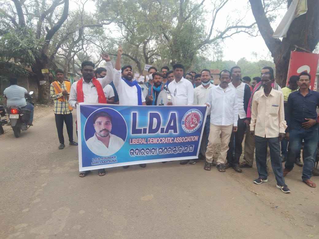 ପାଟଣାଗଡ଼ (ପୁର୍ଣ୍ଣ ଶଶୀ ଶେଖର ରାଓ)ବଲାଙ୍ଗୀର ଜିଲ୍ଲା ଖପ୍ରାଖୋଲ ଠାରେ ଆଜି ଦିନ ୧୧ ଟା ସମୟରେ ଏଲ୍ ଡି ଏ ପ୍ରତିଷ୍ଠାତା ଲବ ସୁନା ଙ୍କ ନେତୃତ୍ୱ ରେ ଏଲ୍,ଡି,ଏ ପକ୍ଷରୁ ଏକ ରାଲି ବାହାରି ବ୍ଲକ କାର୍ଯ୍ୟାଳୟ କୁ ଯାଇଥିଲେ ଓ ବ୍ଲକ ସମ୍ମୁଖ ରେ ଧାରଣା ଦେଇ ଖପ୍ରାଖୋଲ ଅଞ୍ଚଳର ବିଭିନ୍ନ ସମସ୍ୟାକୁ