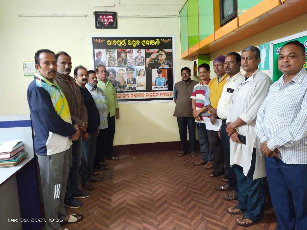 ଢେଙ୍କାନାଳ, ଆଜି ସନ୍ଧ୍ୟାରେ ଢେଙ୍କାନାଳ ସଚେତନ ନାଗରିକ ଫୋରମ ପକ୍ଷରୁ କୁନୁର ଠାରେ ସହିଦ ହୋଇଥିବା ସିଡିଏସ ବିପିନ ରାୱତଙ୍କ ସହିତ ଅନ୍ୟ ଯବାନ ମାନଙ୍କ ସମ୍ମାର୍ଥେ ଏକ ମିନିଟ ନିରବ ପ୍ରାର୍ଥନା ସହିତ ଭାବପୂର୍ଣ୍ଣ ଅଶ୍ରୁଳ ଶ୍ରଦ୍ଧାଞ୍ଜଳି ଜ୍ଞାପନ କରାଯାଇଥିଲା l ଉକ୍ତ ସହିଦ ଗ୍ରୁପରେ ଅବିଭକ୍ତ ଢେଙ୍କାନାଳ ଜିଲ୍ଲାର ତାଳଚେର ଅଞ୍ଚଳର ରାଣାପ୍ରତାପ ଦାସ ଥିଲେ l ଏହି କାର୍ଯ୍ୟକ୍ରମରେ ଫୋରମର କାର୍ଯ୍ୟକାରୀ ସଭାପତି ତଥା ପୂର୍ବତନ ନଗରପାଳ ସୁରେନ୍ଦ୍ର କୁମାର ମିଶ୍ର, ଉପସଭାପତି ତଥା ଜିଲ୍ଲା ଓକିଲ ସଂଘ ପୂର୍ବତନ ସଭାପତି ଦୀପକ ପ୍ରସାଦ ପଟ୍ଟନାୟକ, ସମ୍ପାଦକ ଭରତ କୁମାର ଦାସ, ସହସମ୍ପାଦକ ତଥା ଆଇନଜୀବୀ ଗୁପ୍ତେଶ୍ୱର ମିଶ୍ର, ଆଇନଜୀବୀ ଅମ୍ବିକା ପ୍ରସାଦ ମିଶ୍ର, ରଞ୍ଜିତ ପାଣିଗ୍ରାହୀ, ଶିଳ୍ପୀଶ୍ରୀ ହରିଚନ୍ଦନ, ପଙ୍କଜ ନାୟକ, ଉଦୟନାଥ ବେହେରା, ଜି ମନ୍ମଥ ରାଓ, ଅଶୋକ ସ୍ୱାଇଁ ଓ ସରୋଜ ଶତପଥି ପ୍ରମୁଖ ଉପସ୍ଥିତ ରହି ସହିଦ ଯବାନ ମାନଙ୍କର ଅଶ୍ରୁଳ ଶ୍ରଦ୍ଧାଞ୍ଜଳି ଜ୍ଞାପନ କରିଥିଲେ l