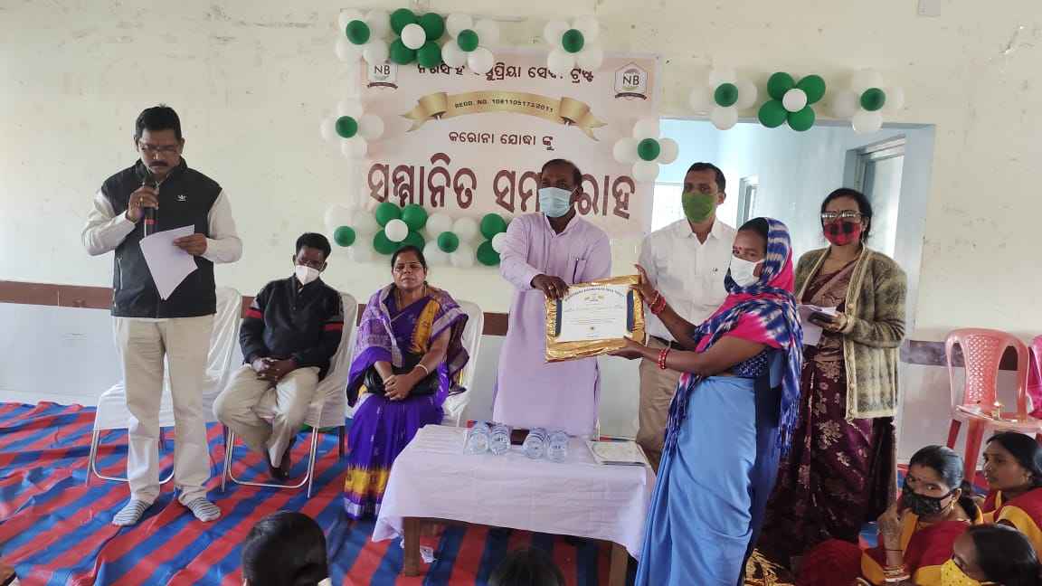 ଧର୍ମଗଡ଼ ବିଜୁ କଲ୍ୟାଣ ମଣ୍ଡପ ଠାରେ ନରସିଂହ ବିଷ୍ଣୁ ପ୍ରିୟା ସେବା ଟ୍ରଷ୍ଟ ଆନୁକୂଲ୍ୟରେ କରୋନା ଯୋଦ୍ଧା ଙ୍କୁ ସମ୍ମାନିତ କରିବା ପାଇଁ ଏକ ସମାରୋହ ଅନୁଷ୍ଠିତ ହୋଇ ଯାଇଛି।ଏଥିରେ ମୁଖ୍ୟ ଅତିଥି ଭାବେ ଧର୍ମଗଡ଼ ବିଧାୟକ ମୌସୁଧି ବାଗ ଯୋଗ ଦେଇ କରୋନା କାର୍ଯ୍ୟକ୍ରମ କୁ ସଫଳସହ ନିର୍ବାହ କରି ଥିବା ଏବଂ ଅଙ୍ଗନବାଡି କର୍ମୀ ଓ ଆଶା କର୍ମୀ ମାନଙ୍କୁ ପୁରସ୍କୃତ କରିଥିଲେ।ଅନ୍ୟପଟେ ସମ୍ମାନୀୟ ଅତିଥି ଧର୍ମଗଡ଼ ବିଡ଼ିଓ ଶରତ କୁମାର ସେଠୀ,ଶିଶୁ ବିକାଶ ଅଧିକାରୀ ସୁଚରିତା ମହାପାତ୍ର ,ବିଜୁ ଜନତା ଦଳ ଧର୍ମଗଡ଼ ବ୍ଲକ ସଭାପତି ଟିକଚନ ୟାଦବ ପ୍ରମୁଖ ନିଜ ଅଭିଭାଷଣ ରେ କର୍ମୀ ମାନେ ନିଜ ଜୀବନ କୁ ବାଜି ଲଗାଇ କରୋନା କାଳରେ ସାହାସ ସହ କାର୍ଯ୍ୟ ନିର୍ବାହ କରିବା ଅତି ପ୍ରଶଂସନୀୟ ବୋଲି ପ୍ରକାଶ କରିଥିଲେ।