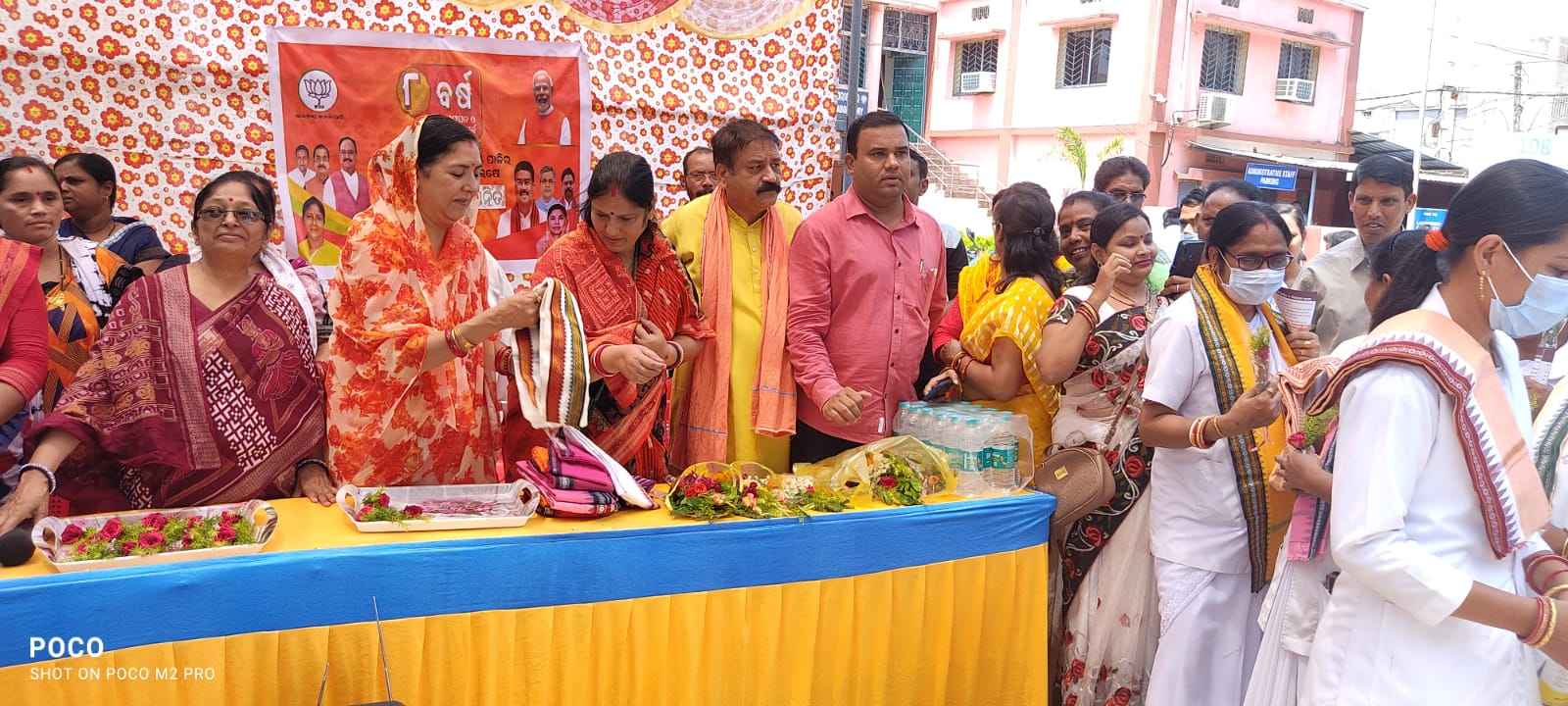 ବଲାଙ୍ଗିର(ପ୍ରେରଣା ଖବର) ଆଜି ଭୀମଭୋଇ ମେଡିକାଲ କଲେଜ ଓ ହସପିଟାଲ ଠାରେ ଆରତି ଗୁରୁଙ୍କ ସଂଯୋଜନାରେ ପ୍ରଧାନମନ୍ତ୍ରୀ ନରେନ୍ଦ୍ର ମୋଦିଜୀଙ୍କ ୮ ବର୍ଷ ପୂର୍ତ୍ତି ଅବସରରେ ଏକ ସ୍ୱାସ୍ଥ୍ୟକର୍ମୀଙ୍କୁ ସମ୍ମାନୀତ କରିବାର କାର୍ଯ୍ୟକ୍ରମ ଆଯୋଜନ କରାଯାଇଥିଲା । ଉକ୍ତ କାର୍ଯ୍ୟକ୍ରମରେ ଜିଲ୍ଲା ମହିଳା ମୋର୍ଚା