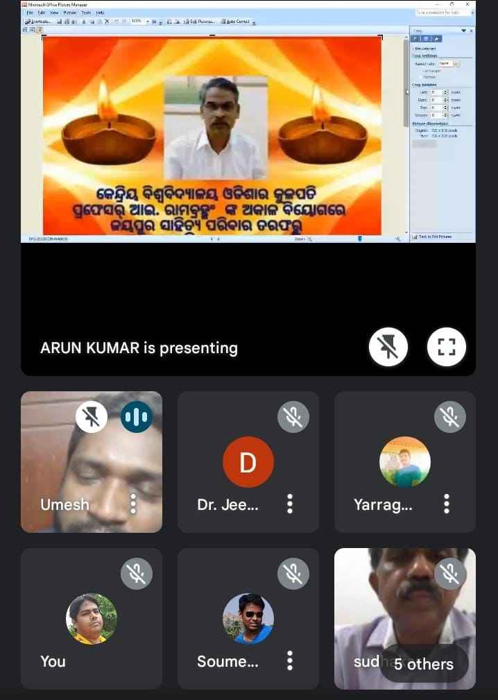 ଓଡିଶା କେନ୍ଦ୍ରିୟ ବିଶ୍ୱବିଦ୍ୟାଳୟର ପୂର୍ବତନ କୁଳପତିଙ୍କ ବିୟୋଗର ଏକ ବର୍ଷ ବିୟୋଗ ଅବସରରେ ଏକ ଆଭାସୀ ସ୍ମୃତିସଭା ଅନୁଷ୍ଠିତ ହେଇଯାଇଅଛି । ହାଇଦ୍ରାବାଦ ବିଶ୍ବବିଦ୍ଯାଳୟର ପ୍ରଫେସର ଏସ୍ ସୁଧାକର ବାବୁଙ୍କ ସଭାପତିତ୍ୱରେ ଅନୁଷ୍ଠିତ ଏହି ସଭାରେ ଭାରତର ବିଭିନ୍ନ ରାଜ୍ୟରେ ଅବସ୍ଥାପିତ ସାର୍ ଙ୍କ ଛାତ୍ର ଏବଂ ସହକର୍ମୀ ମାନ ଯୋଗଦାନ କରିଥିଲେ । କେରଳ କେନ୍ଦ୍ରିୟ ବିଶ୍ବବିଦ୍ଯାଳୟର ପ୍ରଫେସର ଏମ୍ ଆର୍ ବୁଜି, କଲିକତା ବିଶ୍ବବିଦ୍ଯାଳୟର ପ୍ରଫେସର ଦିପଙ୍କର ସିହ୍ନା, ହାଇଦ୍ରାବାଦ ରୁ ପ୍ରଫେସର ଏସ ସାଜି, ରାଜସ୍ଥାନ କେନ୍ଦ୍ରିୟ ବିଶ୍ବବିଦ୍ଯାଳୟରୁ ପ୍ରଫେସର ଏସ୍ ଏନ ଆମ୍ବେଦକର ତଥା ପ୍ରଫେସର ଜୀବନ କୁମାର, ସାର୍ ଙ୍କ ଅତିନିବିଡ ଦୁଇ ସ୍କଲାର ଡ.ସୌମେନ୍ଦ୍ର ତଥା ଡ. ଉମା ମହେଶ୍ୱର ତଥା ଅନ୍ୟମାନେ ଯୋଗଦେଇ ପ୍ରଫେସର ରାମବ୍ରହ୍ମଂଙ୍କ ସହ ବିତେଇଥିବା ସ୍ମୃତି ରୋମାନ୍ଥନ କରିଥିଲେ । ସଭାରେ ପ୍ରଫେସର ରାମବ୍ରହ୍ମଂ ଙ୍କ ପତ୍ନୀ ଆଇ. ଲକ୍ଷ୍ମୀ ତଥା ଝିଅ ଆଇ. ଅନୁପମା ଯୋଗଦେଇ କିଭଳ ତାଙ୍କ ଘର ବିଶ୍ବବିଦ୍ଯାଳୟର ଶିକ୍ଷାର ଅଭିନ୍ନ ପ୍ରକୋଷ୍ଠ ପାଲଟି ଯାଇଥିଲା, ତଥା ନିଜ ସନ୍ତାନ ମାନଙ୍କ ଅପେକ୍ଷା ନିଜ ବିଦ୍ୟାର୍ଥିଙ୍କ ଜୀବନକୁ କିଭଳି ଗୁରୁତ୍ୱ ଦେଉଥିଲେ ତଥା ଛାତ୍ରଙ୍କ ଉନ୍ନତି କଳ୍ପେ ନେଉଥିବା