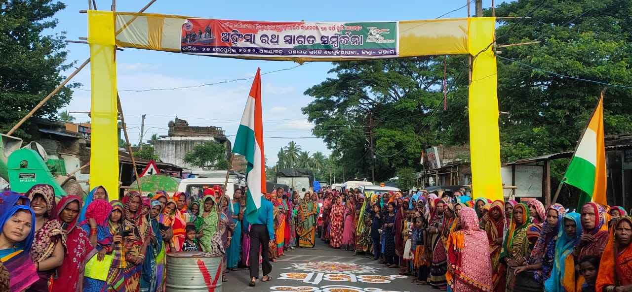 ଶାନ୍ତି, ମୈତ୍ରୀ ଓ ପ୍ରଗତିର ବାର୍ତ୍ତା ନେଇ ଆସିଥିବା ଅହିଂସା ରଥ କୁ ଗଞ୍ଜାମ ଜିଲ୍ଲା ର ବେଗୁନିଆପଡା ବ୍ଲକ ରେ ଭବ୍ୟ ସମର୍ଦ୍ଧନା ଦିଆଯାଇଥିଲା l ମଙ୍ଗଳବାର ଅପରାହ୍ନ ସମୟରେ ମଠସାରସିଂ ଛକରେ ରଥଟି ପହଞ୍ଚିବା ପରେ କବିସୂର୍ଯ୍ୟନଗର ବିଧାୟିକା ଲତିକା ପ୍ରଧାନ, ଗୋଷ୍ଟି ଉନ୍ନୟନ ଅଧିକାରୀ ପ୍ରଜ୍ଞା ପ୍ରିୟଦର୍ଶିନୀ, କୋଦଳା ତହସିଲଦାର ସସ୍ମିତା ଶତପଥୀ, ଥାନା ଅଧିକାରୀ ଉମାକାନ୍ତ ସାହୁ ବ୍ଲକ ଅଧ୍ୟକ୍ଷା ରେଣୁ ଗୌଡ, ଉପାଧକ୍ଷ ସୁଧାକର ପ୍ରଧାନ,ପୂର୍ବତନ ଜିଲ୍ଲା ପରିଷଦ ସଦସ୍ୟ ମନୋଜ ପାଣ୍ଡି , ସମାଜସେବୀ ଚିତ୍ରସେନ ପରିଡା, ହୃଷିକେଶ ମେହେଣା ପ୍ରମୁଖ ସ୍ୱାଗତ କରିଥିଲେ ! ଏହାପରେ କୋଦଳା ବସ ଷ୍ଟାଣ୍ଡ ନିକଟ ଚାରିଛକ ଠାରେ କୋଦଳା ଏନ ଏ ସି ଅଧକ୍ଷ ସୂର୍ଯ୍ୟ ନାରାୟଣ ନାୟକ, ଉପାଧ୍ୟାକ୍ଷା ରଂଜିତା ସେଠି ଙ୍କସମେତ ଏନ ଏ ସି କର୍ମଚାରୀ ମାନେ ସ୍ୱାଗତ କରିଥିଲେ ! ଏଥିସହ କୋଦଳା ଗାନ୍ଧୀ ଛକ ନିକଟରେ ମଧ୍ୟ ସ୍ୱାଗତ କରିବା ସହ ଗାନ୍ଧୀ ମୂର୍ତ୍ତି ରେ ପୁଷ୍ପ ମାଲ୍ୟାର୍ପଣ କରାଯାଇଥିଲା ! ଏହାପରେ ବେଗୁନିଆପଡା ମେଡିକାଲ ଛକ ରେ