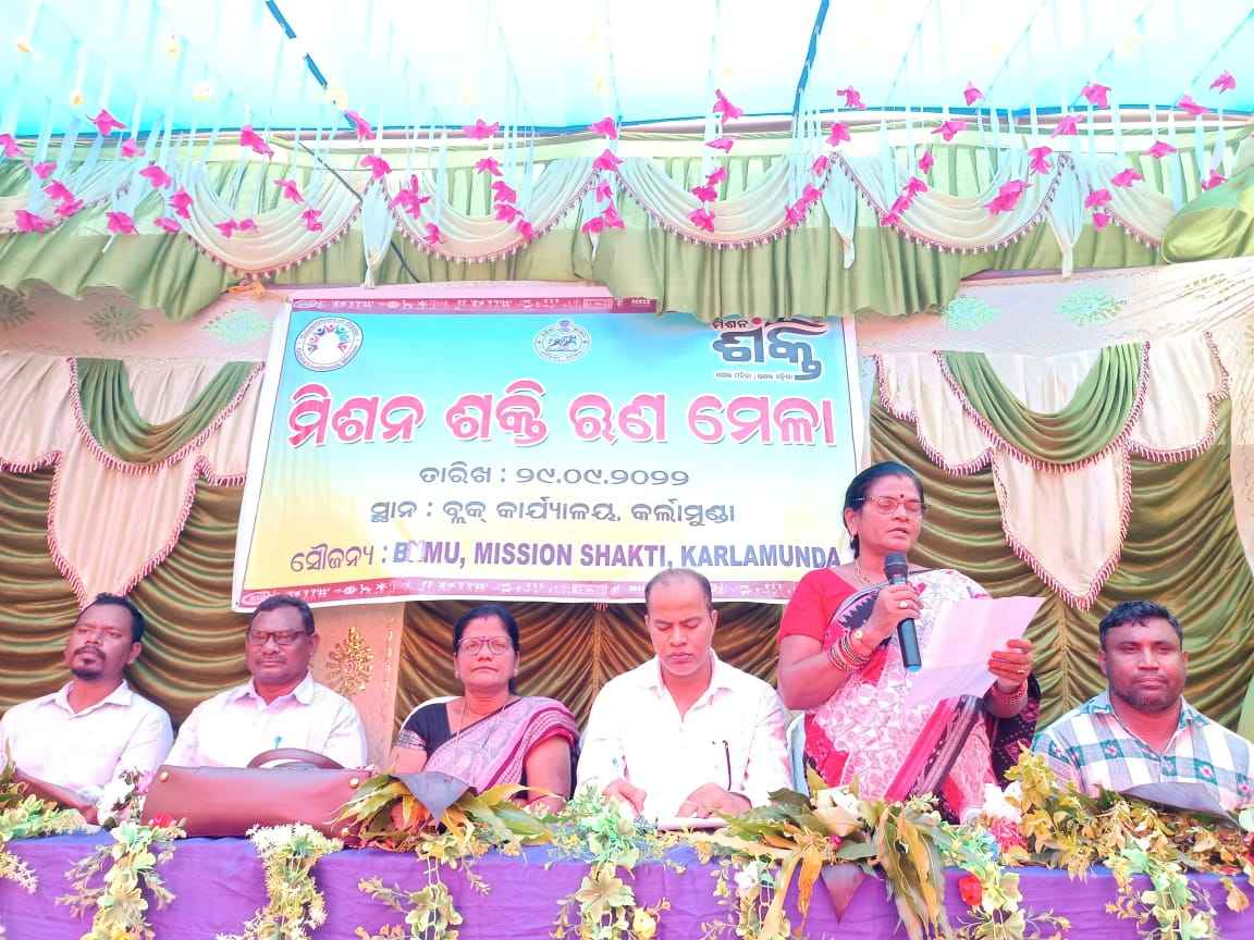 କଳାହାଣ୍ଡି ଜିଲ୍ଲା କର୍ଲାମୁଣ୍ଡା ବ୍ଲକ ପରିସରରେ ମିଶନ ଶକ୍ତି ପକ୍ଷରୁ ଋଣ ମେଳା ଗୁରୁବାର ଅନୁଷ୍ଠିତ ହୋଇଯାଇଛି।ଆୟୋଜିତ ସଭାରେ ମୁଖ୍ୟ ଅତିଥି ଭାବେ ବ୍ଲକ ଅଧକ୍ଷ୍ୟା ଶ୍ରୀମତୀ କୁନି ସାହୁ,ସମ୍ମାନିତ ଅତିଥି ଭାବେ ବିଡ଼ିଓ ଶିଧେଶ୍ୱର ମେହେର, ବ୍ଲକ ଉପାଧ୍ୟକ୍ଷ ସୁରେନ୍ଦ୍ର ଭୋଇ, ଜିଲ୍ଲା ପରିଷଦ ସଭ୍ୟ ସୁରେଶ ଚୌଧୁରୀ ଓ ମହେନ୍ଦ୍ର ରଣା, ସିଡିପିଓ ଗିରିଜା ଗୂଡ଼ଲା ,ମିଶନ ଶକ୍ତି ବ୍ଲକ ସଭାପତି ଜୟନ୍ତୀ ସାହୁ,କର୍ଲାମୁଣ୍ଡା ଏସବିଆଇ ଫିଲଡ଼ ଅଫିସର ଚିଦାନନ୍ଦ ପ୍ରଧାନ, ରିଷିଡା ୟୁକେ ବ୍ୟାଙ୍କ ଶାଖା ପରିଚାଳକ କପିଳ ଚନ୍ଦ୍ର ପ୍ରଧାନ, ତେରେସିଙ୍ଗା ଉତ୍କଳ ଗ୍ରାମ୍ୟ ବ୍ୟାଙ୍କ ଶାଖା ପରିଚାଳକ ଦେବ ପ୍ରକାଶ ନାଏକ,ରେଗଡା ଉତ୍କଳ ଗ୍ରାମ୍ୟ ବ୍ୟାଙ୍କ ଶାଖା ପରିଚାଳକ ଅଶ୍ୱିନୀ କୁମାର ଭାତ୍ରା ପ୍ରମୁଖ ଯୋଗ ଦେଇ ସ୍ୱୟଂ ସହାୟକ ଗୋଷ୍ଠୀ ପାଇଁ ମିଶନ ଶକ୍ତି ଜରିଆରେ ସରକାର ନେଉଥିବା ବିଭିନ୍ନ ପଦକ୍ଷେପ ଉପରେ ଆଲୋଚନା କରିଥିଲେ।