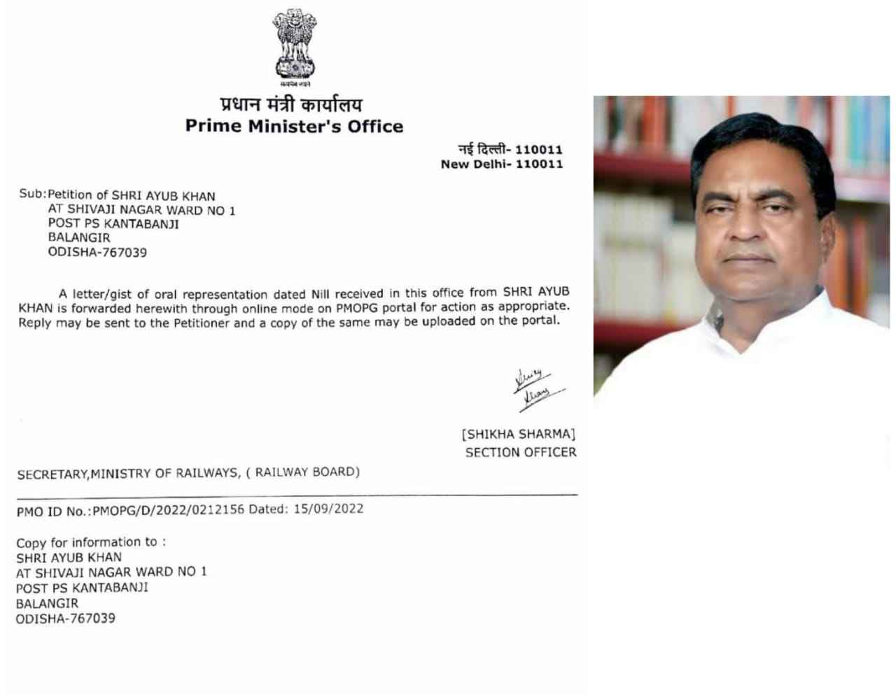 କଣ୍ଟାବାଞ୍ଜି(ଆନନ୍ଦ ମୋଟେ) ଗତ ତା ୪ ଅଗଷ୍ଟ ରେ କଣ୍ଟାବାଞ୍ଜି ସହର ପୂର୍ବତନ ବିଧାୟକ ତଥା ବିଜେଡି ଦଳର ଅଳ୍ପସଂଖ୍ୟକ ସେଲ ସମ୍ପାଦକ ଶ୍ରୀଯୁକ୍ତ ହାଜି ମହମ୍ମଦ ଆୟୁବ ଖାଁ କଣ୍ଟାବାଞ୍ଜି ରେଲବିଭାଗ ମନ୍ତ୍ରୀ ଶ୍ରୀ ଅଶ୍ଵିନୀ ବୈଷ୍ଣବଏବଂ ପ୍ରଧାମନ୍ତ୍ରୀ କାର୍ଯ୍ୟାଳୟକୁ ଏକ ଚିଠି ଲେଖିଥିଲେ ଯେଉଁଥିରେ କଣ୍ଟାବାଞ୍ଜି ସହର ପର୍ଯ୍ୟନ୍ତ ଇସ୍ପାତ ଟ୍ରେନର ସମ୍ପ୍ରସାରଣ କରିଥିବା ପାଇଁ ତାଙ୍କୁ ଧନ୍ୟବାଦ ଅର୍ପଣ କରିବା ସହ କଣ୍ଟାବାଞ୍ଜି ଦେଇ ଯାଉଥିବା କେତେକ ଟ୍ରେନର ସମ୍ପ୍ରସାରଣ , ବନ୍ଦ ହୋଇଥିବା କେତୋଟି ଟ୍ରେନ ପୁନଃ ଚଳାଚଳ ଏବଂ କଣ୍ଟାବାଞ୍ଜି ଦେଇ କେତୋଟି ନୂତନ ଟ୍ରେନ ଚଳେଇବା ପାଇଁ ଉଲ୍ଲେଖ କରାଯାଇଥିଲା । ଶ୍ରୀଯୁକ୍ତ ଆୟୁବ ଖାଁ ଚିଠି ରେ ଉଲ୍ଲେଖ କରିଥିଲେ ଯେ ଏହି ଅଞ୍ଚଳ କେବିକେ ଜିଲ୍ଲା ଏବଂ ପଶ୍ଚିମ ଓଡିଶା ଅଧୀନରେ ଅଛି | ଏହି ବିଧାନସଭା କ୍ଷେତ୍ର ଅତ୍ୟନ୍ତ ପଛୁଆ ଏବଂ ଲୋକମାନେ ସେମାନଙ୍କର ଜୀବିକା ପାଇଁ ଦେଶର ବିଭିନ୍ନ ସ୍ଥାନକୁ ଯିବାକୁ ଏହି ରେଳ ଷ୍ଟେସନ ବ୍ୟବହାର କରନ୍ତି | ବ୍ୟବସାୟୀ, ସେବାଧାରକ, ଛାତ୍ର, ତୀର୍ଥଯାତ୍ରୀ ଇତ୍ୟାଦି ଅନ୍ୟ ଶ୍ରେଣୀର ଲୋକମାନେ ମଧ୍ୟ ବାରମ୍ବାର ସେମାନଙ୍କ ଗନ୍ତବ୍ୟ ସ୍ଥଳକୁ ଯାଆନ୍ତି, କିନ୍ତୁ ଦେଶର କେତେକ ଗୁରୁତ୍ୱପୂର୍ଣ୍ଣ ସହର ଏବଂ ଟାଉନ ଗୁଡ଼ିକୁ ସଂଯୋଗ କରିବା ପାଇଁ ଏଠି ପର୍ଯ୍ୟାପ୍ତ ଟ୍ରେନ୍ ଉପଲବ୍ଧ ନ ଥିବାରୁ ସେମାନେ ବହୁ କଷ୍ଟ ଭୋଗୁଛନ୍ତି | ରେଳ ଟ୍ରାକର ଡବଲ୍ ଲାଇନ ଏବଂ ବିଦ୍ୟୁତିକରଣ ମଧ୍ୟ ସମାପ୍ତ ହୋଇଛି ଏବଂ ଏହି ମାର୍ଗଗୁଡ଼ିକରେ ଟ୍ରେନ୍ ବିଳମ୍ବ ପାଇଁ କୌଣସି କାରଣ ନାହିଁ | ଏହି ଅଞ୍ଚଳ ରେ ଆହୁରି କେତେକ ଟ୍ରେନ ସମ୍ପ୍ରସାରଣ ଏବଂ ପୁନ - ଆରମ୍ଭ କଲେ ପଶ୍ଚିମ ଓଡ଼ିଶା ଏବଂ କେବିକେ ଜିଲ୍ଲାର ଲୋକମାନେ ଅଧିକ ଲାଭବାନ ହେବେ। ସେ ଦାବି କରିଥିବା ଟ୍ରେନ ମଧ୍ୟରେ ବିଶାଖାପାଟଣା - ବନାରସ କିମ୍ବା ଗୋରଖପୁର ଟ୍ରେନ ପୁନଃ ଚଳାଚଳ, ତିରୁପତି - ବିଲାସପୁର ଟ୍ରେନକୁ ବନାରସ କିମ୍ବା ଗୋରଖପୁର ପର୍ଯ୍ୟନ୍ତ ସମ୍ପ୍ରସାରଣ , ବିଶାଖାପାଟଣା - ରାୟପୁର - କଟନି ଦେଇ ବୈଶ୍ଣଦେବୀ ପର୍ଯ୍ୟନ୍ତ ନୂତନ ଟ୍ରେନ ଚଳାଚଳ, ସମତା ଏକ୍ସପ୍ରେସକୁ ଅମୃତସର ଯାଏ ସମ୍ପ୍ରସାରଣ, ଭୁବନେଶ୍ୱର ରୁ ଦିଲ୍ଲୀ ଯିବା ପାଇଁ ଭୁବନେଶ୍ୱର- ବଲାଙ୍ଗୀର - ଟିଟଲାଗଡ - କଣ୍ଟାବାଞ୍ଜି - ରାୟପୁର ଦେଇ ଏକ ଟ୍ରେନ ଦିଲ୍ଲୀ ଯିବା ପାଇଁ, ରାୟପୁର ରୁ କଣ୍ଟାବାଞ୍ଜି ଦେଇ ବାଲେଶ୍ଵର ଯିବା ପାଇଁ, ସମ୍ବଲପୁର ରୁ ଟିଟଲାଗଡ - କଣ୍ଟାବାଞ୍ଜି - ବେଙ୍ଗାଳୁରୁ ଏକ୍ସପ୍ରେସ ପୁନଃ ଆରମ୍ଭ , ପୁରୀ - ସିର୍ଡି ଟ୍ରେନ ଚଳାଚଳ ପୁନଃ ଆରମ୍ଭ,ଦୁର୍ଗ ଜଗଦଲପୂର ଟ୍ରେନ ପୁନଃ ଆରମ୍ଭ ଏଭଳି ଅନେକ ନୂତନ ଟ୍ରେନ କଣ୍ଟାବାଞ୍ଜି ଦେଇ ଏବଂ ଏଠୁ ଚାଲି ବନ୍ଦ ହୋଇଥିବା ଟ୍ରେନ ସବୁକୁ ପୁନଃ ଆରମ୍ଭ କରିବାକୁ ଚିଠି ଲେଖିଥିଲେ। ଯାହାକି ଏହା ଉପରେ ଶୀଘ୍ର ବିଚାର କରି ଉଚିତ୍ ପଦକ୍ଷ୍ୟେପ ନେବା ପାଈ ପ୍ରଧାନ ମନ୍ତ୍ରୀ କାର୍ଯ୍ୟାଳୟ ତରଫରୁ ରେଳ ବିଭାଗ ମନ୍ତ୍ରୀଙ୍କ ଚିଠି ହୋଇଛି