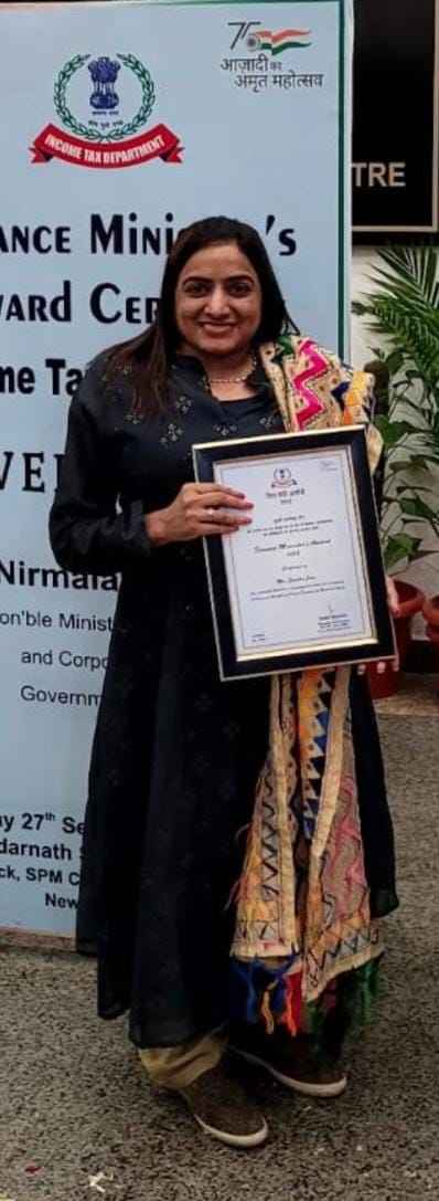 ପ୍ରଦାନକାରୀଙ୍କୁ ଅର୍ଥମନ୍ତ୍ରୀ ପୁରସ୍କାର ପ୍ରଦାନ କରିଥିଲେ। ଦକ୍ଷ ପ୍ରାଧିକରଣର ନିଷ୍ପତ୍ତି ଅନୁଯାୟୀ, ଶ୍ରୀମତୀ ସାରିକା ଜେନ, ଡିସିଟି, ସେଣ୍ଟ୍ରାଲ ସର୍କଲ, ମୁମ୍ବାଇ୨୦୨୨ ବର୍ଷ ପାଇଁ ଅର୍ଥ ମନ୍ତ୍ରୀ ପୁରସ୍କାର ପାଇଁ ଅନ୍ୟ (କୋଭିଡ ୱାରିଅର୍) ଶ୍ରେଣୀରେ ପୁରସ୍କୃତ ହୋଇଛନ୍ତି। ନୂଆଦିଲ୍ଲୀ, ସିଭିକ୍ ସେଣ୍ଟର୍, କେଦାରନାଥ ସାହନି ଅଡିଟୋରିୟମ୍ ଠାରେ ପୁରସ୍କାର ବିତରଣ ସମାରୋହ ଅନୁଷ୍ଠିତ ହୋଇଥିଲା | ସାରିକା ଜେନ ଆଇଆରଏସ କଣ୍ଟାବାଞ୍ଜି (ଓଡିଶା) । ମୁମ୍ବାଇରେ ଆୟକର ଡେପୁଟି କମିଶନର ଭାବରେ ପୋଷ୍ଟ କରାଯାଇଛି, ବ୍ୟାଚ୍ ୨୦୧୪,ସେ ନିରନ୍ତର ଭକ୍ତି, ଯୁଗଳ ପ୍ରତିବଦ୍ଧତା ଏବଂ ଜାତୀୟ ସ୍ତରରେ ପ୍ରତ୍ୟକ୍ଷ ଟିକସ କ୍ଷେତ୍ରରେ ଉତ୍କର୍ଷତା ପାଇଁ ଏହି ପୁରସ୍କାର ପାଇଛନ୍ତି | ସେ କୋଭିଡ୍ ଅବଧି ମଧ୍ୟରେ ଏକ ଆଦର୍ଶ କାର୍ଯ୍ୟ କରିଛନ୍ତି ଯେପରି ଷ୍ଟିଚିଂ ମାସ୍କ, ପ୍ରବାସୀ ମାନଙ୍କୁ ସାହାଯ୍ୟ କରିବା, ପ୍ରବାସୀ ମାନଙ୍କୁ ଓଡିଶା ପଠାଇବା, ପ୍ରେରଣା ନେବା ,ଅଧିବେଶନ, ଖାଦ୍ୟ ବଣ୍ଟନ।ତେଣୁ ତାଙ୍କୁ ଅର୍ଥମନ୍ତ୍ରୀ ପୁରସ୍କାର ୨୦୨୨ ପାଇଁ ପୁରସ୍କୃତ କରାଯାଇଛି। ଏହି ପୁରସ୍କାର ପାଇଁ ଅନେକ ସଂଗଠନ ସାରିକା ଜେନଙ୍କୁ ଅଭିନନ୍ଦନ