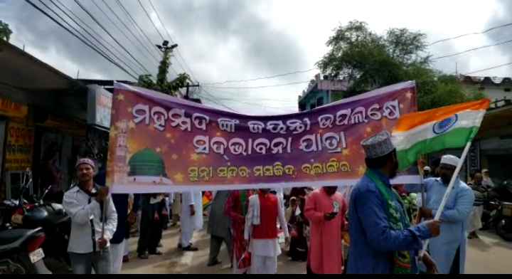ବଲାଙ୍ଗିର (ପ୍ରେରଣା ଖବର) : ସୁନି ମୁସଲିମ ପକ୍ଷରୁ ବଲାଙ୍ଗିର ଠାରେ ମହମ୍ମଦ ଜୟନ୍ତୀ ମହାସମାରୋହରେ ପାଳିତ ହୋଇଯାଇଛି l ଆଜି ମହମ୍ମଦ ଜୟନ୍ତୀ ପାଇଁ ଉତ୍ସବ ମୁଖର ହୋଇଛି ବଲାଙ୍ଗିର ସହର l ମୁସଲିମ୍ ମାନଙ୍କ ବଡ ପର୍ବ ମହମ୍ମଦ ଜୟନ୍ତୀରେ ବଲାଙ୍ଗିର ରେ ଏକ ଭାଇଚାରା ର ବାତାବରଣ ଦେଖିବାକୁ ମିଳିଥିଲା l ସକାଳୁ ମୁସଲିମ ଭାଇ ମାନେ ନମାଜ୍ ପାଠ କରିଥିଲେ l ଏଥିରେ ବଲାଙ୍ଗିର ସହରର ସମସ୍ତ ମୁସଲମାନ୍ ଭାଇ ଭଉଣୀ ମାନେ ଯୋଗ ଦେଇଥିଲେ l ସୁନି ସଦର୍ ମସଜିଦ୍ ଟିକ୍ରlପଡା ଠାରୁ ଏକ ଶୋଭାଯାତ୍ରା ବାହାରି ଥିଲା l