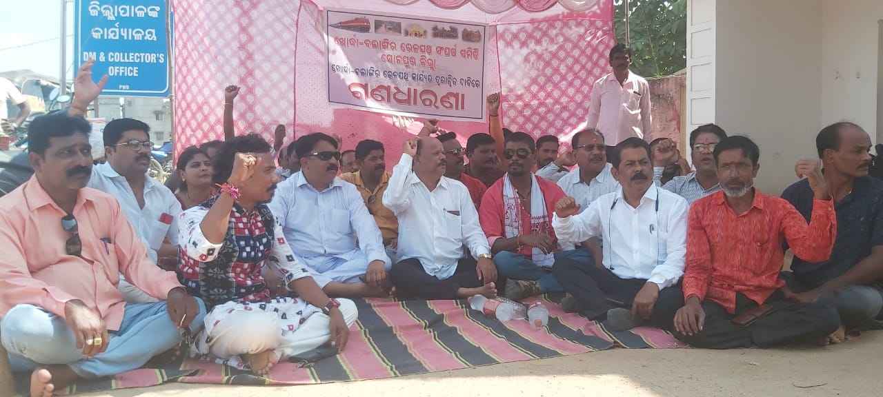 ସୁବର୍ଣ୍ଣପୁର(ମନୋରଞ୍ଜନ ତ୍ରିପାଠୀ) - ଖୋର୍ଦ୍ଧା -ବଲାଙ୍ଗୀର ରେଳପଥ ନିର୍ମାଣ କୁ ତ୍ୱରାନ୍ୱିତ କରିବା ଦାବିରେ ଆଜି ରେଳପଥ ସଂଘର୍ଷ ସମିତି ପକ୍ଷରୁ ସୁବର୍ଣ୍ଣପୁର ଜିଲ୍ଲାପାଳଙ୍କ କାର୍ଯ୍ୟାଳୟ ସମ୍ମୁଖରେ ଗଣ ଧାରଣା ଦେବାସହ ବିକ୍ଷୋଭ ପ୍ରଦର୍ଶନ କରାଯାଇଛି।ସୁବର୍ଣ୍ଣପୁର ଜିଲ୍ଲା ଆବାହକ ଶ୍ୟାମାଓଁ ପ୍ରସାଦ ମିଶ୍ର ଙ୍କ ଆବାହକତ୍ୱରେ ଅନୁଷ୍ଠିତ ଏହି ବିକ୍ଷୋଭ