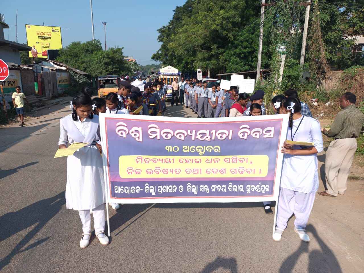 :ସୁବର୍ଣ୍ଣପୁର: ଆର୍ଥିକ ଓ ସାମାଜିକ ନିରାପତ୍ତାକୁ ସୁଦୃଢ କରିବା ସହ ସଂଚୟକୁ ସୁନିଶ୍ଚିତ କରିବା ବାର୍ତ୍ତାରେ ଆଜି ସୁବର୍ଣ୍ଣପୁର ଠାରେ ବିଶ୍ବ ମିତବ୍ୟୟିତା ଦିବସ ପାଳିତ ହୋଇଯାଇଛି । ଭବିଷ୍ୟତକୁ ନଜରରେ ରଖି କଷ୍ଟୋପାର୍ଜିତ ଅର୍ଥର ସଂଚୟ ଆତ୍ମନିର୍ଭର ହେବାକୁ ପ୍ରବର୍ତ୍ତେଇ ଥାଏ ବୋଲି ଜିଲ୍ଲାପାଳ ଅବୋଲି ସୁନିଲ ନରୱଣେ ଓ ଅତିରିକ୍ତ ଜିଲ୍ଲାପାଳ ସୂର୍ଯ୍ୟ ନାରାୟଣ ଦାଶ ଅତିଥିଭାବେ ଯୋଗଦେଇ ମତବ୍ୟକ୍ତ କରିଛନ୍ତି । ଆଜିର ବ୍ୟୟବହୁଳ ସମୟରେ ମିତବ୍ୟୟିତା ଅପରିହାର୍ୟ୍ଯ ହୋଇ ପଡିଥିବାବେଳେ ପ୍ରଚଳିତ ସ୍ବଳ୍ପ ସଂଚୟ ଯୋଜନାକୁ ନେଇ ଜନ ଜାଗରଣ ଉପରେ ଗୁରୁତ୍ବାରୋପ କରିଥିଲେ । ଭାରପ୍ରାପ୍ତ ଜିଲ୍ଲା ସ୍ୱଳ୍ପ ସଂଚୟ ଅଧିକାରୀ ଅଶ୍ବିନୀ କୁମାର ଭୋଇଙ୍କ ତତ୍ୱାବଧାନରେ ପରିଚାଳିତ ସଚେତନତା ଶୋଭାଯାତ୍ରା ତଥା ସଂଚୟ ରଥ ପରିକ୍ରମା କାର୍ଯ୍ୟକ୍ରମରେ ମହାରାଜ ହାଇସ୍କୁଲ, ସରକାରୀ ବାଳିକା ହାଇସ୍କୁଲ, ସାହାରା ଟ୍ରଷ୍ଟ ହାଇସ୍କୁଲ ର ଏନ ସି ସି, ସ୍କାଉଟ, ଗାଇଡ଼,ଛାତ୍ରଛାତ୍ରୀଙ୍କ