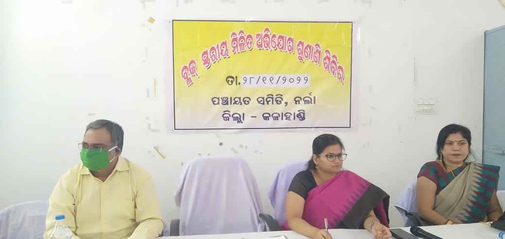 ନର୍ଲା ( ସଞ୍ଜିବ ଦାସ) ନର୍ଲା ସ୍ଥିତ ପଞ୍ଚାୟତ ସମିତି ସମ୍ମିଳନୀ ଗୃହରେ କଳାହାଣ୍ଡି ଜିଲ୍ଲାପାଳ ପି ଅନ୍ୱେଷା ରେଡ୍ଡୀ ତଥା ଆରକ୍ଷୀ ଅଧିକ୍ଷକ ଶ୍ରୀ ଅଭିଳାଷ ଜିଙ୍କ ଅଧକ୍ଷତାରେ ଏକ ଜନ ଶୁଣାଣି ଶିବିର ଅନୁଷ୍ଠିତ ହୋଇଯାଇଛି। ଏଥିରେ ଅତିରିକ୍ତ ଜିଲ୍ଲାପାଳ ଶ୍ରୀ ସୁଶାନ୍ତ ପଟେଲ, ବ୍ଲକ ଅଧ୍ୟକ୍ଷା ମନୋରମା ମହାନ୍ତି, ବ୍ଲକ ଉପାଧ୍ୟକ୍ଷ ଶ୍ରୀ ଦୁର୍ଗା ପ୍ରସାଦ ମହାନ୍ତି, ବି ଡି ଓ ବାସନ୍ତୀ ସେଠୀ ଙ୍କ ସମେତ ସମସ୍ତ ଜିଲ୍ଲା ସ୍ତରୀୟ ବିଭାଗୀୟ ଅଧିକାରୀ ଉପସ୍ଥିତ ଥିଲେ। ଏହି ଜନ ଶୁଣାଣି ଶିବିରରେ ମୋଟ 350ଜଣ ଆବେଦନକାରୀ ନିଜର ଅଭିଯୋଗ ପତ୍ର ଦାଖଲ କରିଥିଲେ। ସେଥିମଧ୍ୟରୁ 339ଟି ବ୍ୟକ୍ତିଗତ ସମସ୍ୟା ଅଭିଯୋଗ ଓ 11ଟି ଗ୍ରାମ୍ୟ ତଥା ସାମୁହିକ ସମସ୍ୟା ସମ୍ମିଳିତ ଥିଲା। 14ଟି ଅଭିଯୋଗର ସମାଧାନ ତତକ୍ଷଣାତ୍ କରାଯାଇଥିଲା।