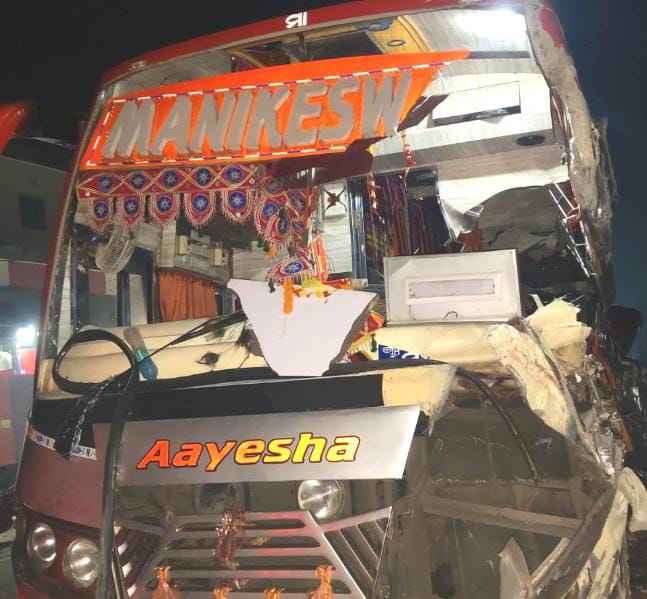 ଟ୍ରକ ପଛରେ ମାଡକଲା ଯାତ୍ରୀବାହୀ ବସ ଜଣେ ମୃତ ୬ ଗୁରୁତର l ଏଭଳି ଏକ ଦୁର୍ଘଟଣା ଦେଖିବାକୁ ମିଳିଛି ଇଟାମାଟି ଥାନା ଭାରତ ପ୍ରେଟୋଲ ଟାଙ୍କି ନିକଟରେ l ମାଣିକେଶ୍ବରୀ ନାମକ ଯାତ୍ରୀବାହୀ ବସ ସବୁଦିନ ପରି ଗନ୍ତବ୍ୟ ସ୍ଥଳରୁ ବାହାରି ଭୁବନେଶ୍ୱର ଅଭିମୁଖେ ଯାଉଥିଲା l ରାତ୍ରି ପ୍ରାୟ ୩ଘଟିକା ସମୟରେ ଇଟାମାଟି ପ୍ରେଟୋଲ ପମ୍ପ ନିକଟରେ ଏକ ମାଲ ବୋଝେଇ ଟ୍ରକ ଠିଆ ହୋଇଥିଲା l ଯାତ୍ରୀବାହି ବସ ଟି ଟ୍ରକ ପଛ ପାଖରେ ମାଡ଼ କରିଥିଲା l ବସ ଡ୍ରାଇଭର ର ଅନ୍ୟମନସ୍କତା ରେ ଏହି ଦୁର୍ଘଟଣା ଘଟିଥିବା ଅନୁମାନ କରାଯାଉଛି|ଇଟାମାଟି ପୋଲିସ ୧୦୮ ଆମ୍ବୁଲାନ୍ସ ଏବଂ ଅଗ୍ନିଶମ ବାହିନୀ ସହାୟତା ରେ ୭ ଜଣ ଯାତ୍ରୀ ଙ୍କୁ ନୟାଗଡ ମୁଖ୍ୟ ଚିକିତ୍ସାଳୟ କୁ ପଠା ଯାଇଥିଲା l ଡାକ୍ତର ଜଣେ ଯାତ୍ରୀ କୁ ମୃତ ଘୋଷଣା କରିଥିବା ବେଳେ ୪ ଜଣ ଯାତ୍ରୀ ଗୁରୁତର ଥିବାରୁ ଭୁବନେଶ୍ୱର ସ୍ଥାନାନ୍ତରିତ ହୋଇଛନ୍ତି l ମୃତ ବ୍ୟକ୍ତି ଜଣକ ଅମର ଚାନ୍ଦ ଘର ଜୁନାଗଡ଼ l ସେ ଜଣେ ଶିକ୍ଷକ ବୋଲି ସୂଚନା ମିଳିଛି l ଶିକ୍ଷକ ଆନ୍ଦୋଳନ ରେ ସାମିଲ ହେବାକୁ ରାଜଧାନୀ ଯାଉଥିଲେ l ଇଟାମାଟି ପୋଲିସ ୨ ଟି ଗାଡିକୁ ଜବତ କରିଛି l