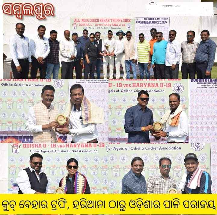 ସମ୍ବଲପୁର ଭିଏସ୍ଏସ୍ ଷ୍ଟାଡିୟମ୍ଠାରେ ଚାଲିଥିବା କୁଚ୍ ବେହାର ଟ୍ରଫି ମ୍ୟାଚ୍ରେ ଓଡ଼ିଶାର ପାଳି ପରାଜୟ ହୋଇଛି I ଟସ୍ ଜିତି ଓଡ଼ିଶା ଦଳ ପ୍ରଥମେ ବ୍ୟାଟିଂ କରି ୧୯୪ ରନ୍ରେ ଅଲ୍ଆଉଟ୍ ହୋଇଥିଲା I ଜବାବରେ ହରିଆଣା ପ୍ରଥମ ପାଳିରେ ୫୧୧ ରନ୍ କରିଥିଲା I ଓଡ଼ିଶା ତାର ଦ୍ବିତୀୟ ପାଳିରେ ୨୯୯ ରନ୍ କରିବାକୁ ସକ୍ଷମ ହୋଇଥିଲା। ଏଥି ସହ ହରିଆଣା ଗୋଟିଏ ପାଳି ଓ ୧୮ ରନ୍ରେ ବିଜୟ ହାସଲ କରିଛି। ଦ୍ବିତୀୟ ପାଳିରେ ହରିଆଣା ପକ୍ଷରୁ ସାମନ୍ତ ଜଖାର ସର୍ବାଧିକ ୪ ଵିକେଟ୍ ହାସଲ କରିଥିଲେ। ୧୨୯ ରନ୍ କରିବା ସହ ୪ ଵିକେଟ୍ ହାସଲ କରିଥିବା ହରିଆଣାର ମୟଙ୍କ ସାଣ୍ଡିଲ୍ୟ ମ୍ୟାଚ୍ର ଶ୍ରେଷ୍ଠ ଖେଳାଳି ବିବେଚିତ ହୋଇଥିଲେ। ସେହିପରି ୧୯ ବର୍ଷରୁ କମ୍ ଭାରତୀୟ ଦଳରେ ଅଲ୍ରାଉଣ୍ଡର୍ ଭୂମିକା ତୁଲାଉଥିବା ହରିଆଣା ଅଧିନାୟକ ନିଶାନ୍ତ ସିନ୍ଧୁ ବ୍ୟାଟିଂରେ ୬୩ ରନ୍ କରିଥିବା ବେଳେ ମୋଟ ଉପରେ ୫ଟି ଵିକେଟ୍ ନେଇଥିଲେ I ପ୍ରଥମ ପାଳିରେ ୩୧୭ ରନ୍ ପଛରେ ଥିବା ଓଡ଼ିଶା ଦଳ ତୃତୀୟ ଦିନ ଖେଳ ଶେଷ ସୁଦ୍ଧା ଦ୍ବିତୀୟ ପାଳିରେ ୪ ଵିକେଟ୍ ହରାଇ ୨୪୨ ରନ୍ ସଂଗ୍ରହ କରିଥିଲା। ଚତୁର୍ଥ ଦିନ ଆଉ ମାତ୍ର ୫୭ ରନ୍ରେ ଅବଶିଷ୍ଟ ୬ ଵିକେଟ୍ ହରାଇବାରୁ ପାଳି ପରାଜୟ ଏଡ଼ାଇ ପାରି ନଥିଲା। ଓଡ଼ିଶା ପାଇଁ ଅଧିନାୟକ ସାଇଦୀପ ମହାପାତ୍ର ଉଭୟ ପାଳିରେ ଅର୍ଦ୍ଧଶତକ ହାସଲ କରିବା ସହ ୩ଟି ଵିକେଟ୍ ନେଇଥିଲେ। ଦ୍ବିତୀୟ ପାଳିରେ ସାଇଦୀପ ୫୪ ରନ୍ (୧୦୭ ବଲ୍, ୪ ଚୌକା, ୨ ଛକା) କରିଥିଲେ I ଚଳିତ ବର୍ଷ କୁଚ୍ ବେହାର ଟ୍ରଫିରେ ଓଡ଼ିଶା ନିଜ ପ୍ରଥମ ମ୍ୟାଚ୍ ବିହାର ବିପକ୍ଷରେ ଡ୍ର’ ରଖି ପାଳି ଆଗୁଆ ହୋଇଥିଲା। ଦ୍ବିତୀୟ ମ୍ୟାଚ୍ରେ ମଣିପୁର ବିପକ୍ଷରେ ପାଳି ବିଜୟ ହାସଲ କରିଥିଲା। ହେଲେ ଘରୋଇ ମାଟିରେ ଖେଳିଥିବା ତୃତୀୟ ଓ ଚତୁର୍ଥ ମ୍ୟାଚ୍ରେ ଯଥାକ୍ରମେ ଆନ୍ଧ୍ର ଓ ହରିଆଣା ଠାରୁ ଶୋଚନୀୟ ପରାଜୟ ବରଣ କରିଛି। ଓଡ଼ିଶା ବଲାଙ୍ଗୀର ଗାନ୍ଧୀ ଷ୍ଟାଡିୟମ୍ରେ ଖେଳା ଯିବାକୁ ଥିବା ଏହାର ପରବର୍ତ୍ତୀ ମ୍ୟାଚ୍ରେ ବିଦର୍ଭକୁ ଭେଟିବ I