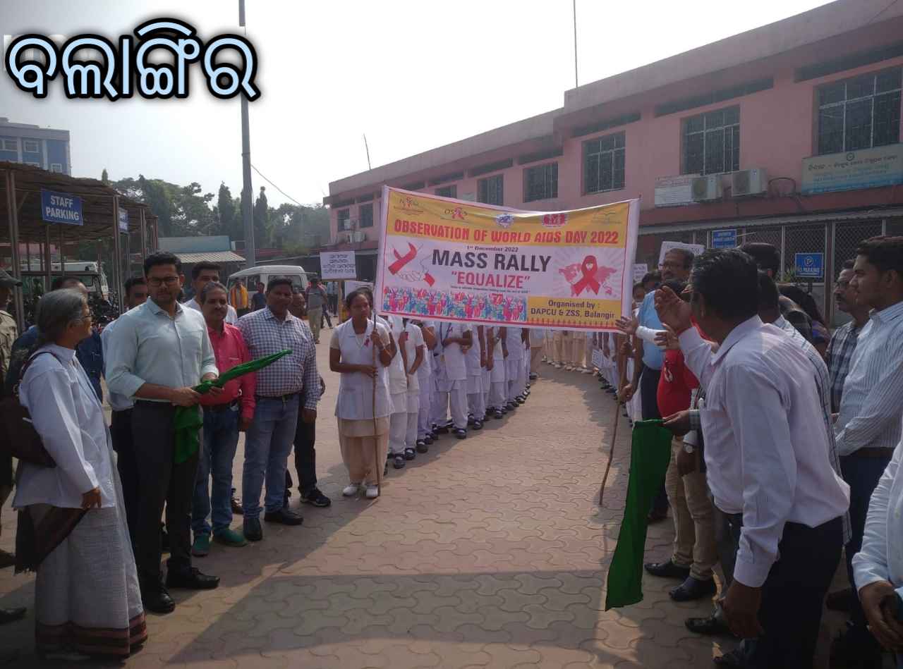 ବଲାଙ୍ଗିର(ପ୍ରେରଣା ଖବର) ଆଜି ବଲାଙ୍ଗିର ଠାରେ ଜିଲ୍ଲା ସ୍ୱାସ୍ଥ୍ୟ ସମିତି ଓ ଜିଲ୍ଲା ଏଡସ ନିରାକରଣ ୟୁନିଟ,ଜିଲ୍ଲା ଆଇନ ସେବା ପ୍ରାଧିକରଣ ତଥା ଏଡସ ନିରାକରଣ କାର୍ଯକ୍ରମର ସହଯୋଗୀ ବେସରକାରୀ ସଂସ୍ଥା ସହଯୋଗରେ ଜିଲ୍ଲା ସ୍ତରୀୟ ବିଶ୍ଵ ଏଡସ ଦିବସ ପାଳିତ ହୋଇଯାଇଛି । ବିଶ୍ଵ ଏଡସ ଦିବସ ପାଳନ ଉପଲକ୍ଷେ ଭୀମ ଭୋଇ ମେଡିକାଲ କଲେଜ ଓ ହସ୍ପିଟାଲ ପରିସରରୁ ବାହାରିଥିବା ଏକ ସଚେତନତା ରାଲିକୁ ଜିଲ୍ଲାପାଳ ଚଞ୍ଚଳ ରାଣା ସବୁଜ ପତାକା ଦେଖାଇ ଶୁଭାରମ୍ଭ କରିଥିଲେ । ଏଏନଏମ ତାଲିମ କେନ୍ଦ୍ର ର