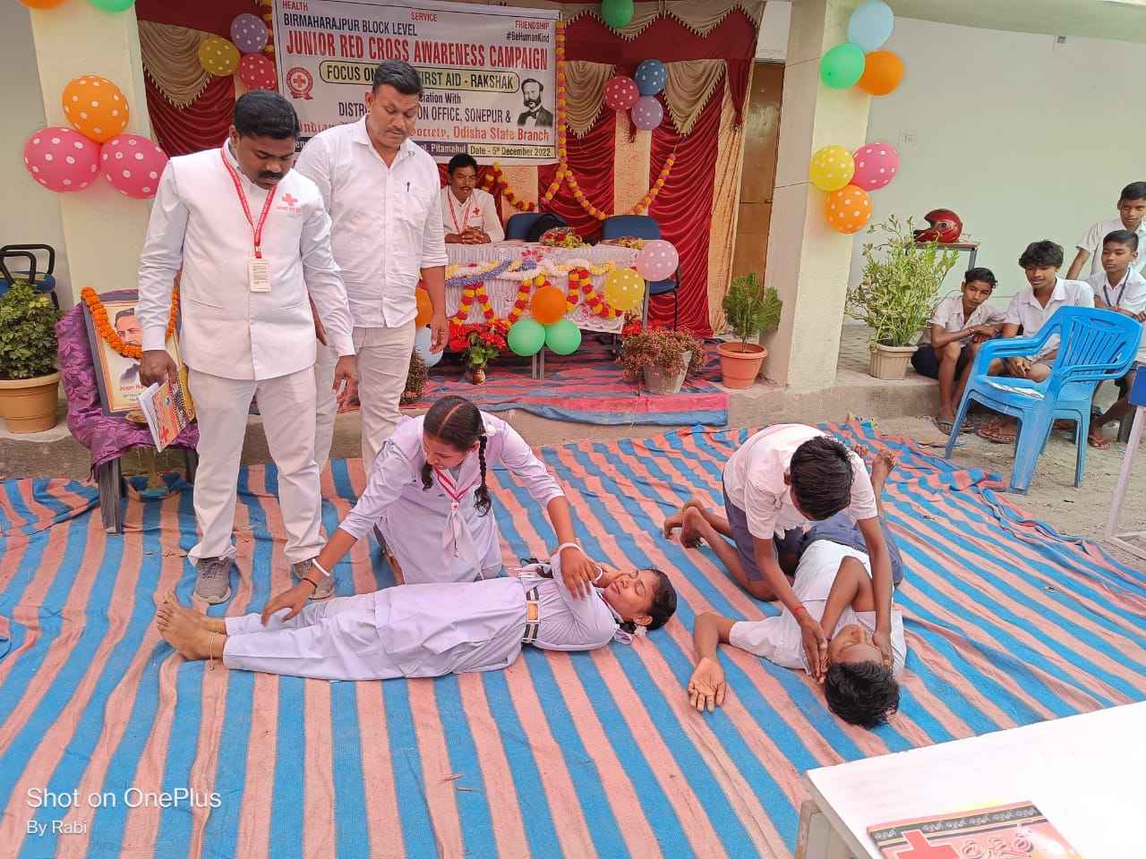 ସାଧନକର୍ମି ଚନ୍ଦ୍ରମଣି ବାଘ, ବଳରାମ ପୁରୋହିତ, ଆଶିଷ ନାଏକ ପ୍ରମୁଖ ରେଡକ୍ରସର ଆନ୍ଦୋଳନ, ଜୁନିଅର ରେଡକ୍ରସର ସେବା ମୂଳକ କାର୍ଯ୍ୟକ୍ରମ, ପ୍ରାଥମିକ ଚିକିତ୍ସା, ସଡକ ସୁରକ୍ଷା ସଂପର୍କିତ ରକ୍ଷକ ଯୋଜନାର ଉପଯୋଗିତା ବିଷୟରେ ଶିବିରାର୍ôଥ ମାନଙ୍କୁ ତାଲିମ ପ୍ରଦାନ କରିଥିଲେ । ବିଚିତ୍ରା ନନ୍ଦ ମଲ୍ଲିକ, କ୍ଷିରେଶ୍ୱର ବାରିକ, ମଧୁସୁଦନ ନାଏକ, କାର୍ତିକ ମଲ୍ଲିକ, ଆଲୋକ ପଧାନ, ସୌମ୍ୟ ରଂଜନ ପଧାନ ପ୍ରମୁଖ କାର୍ଯ୍ୟକ୍ରମରେ ସହଯୋଗ କରିଥିଲେ । ଶେଷରେ ସହକାରୀ ଶିକ୍ଷକ ହେମନ୍ତ ସେଠି ଧନ୍ୟର୍ପଣ କରିଥିଲେ ।