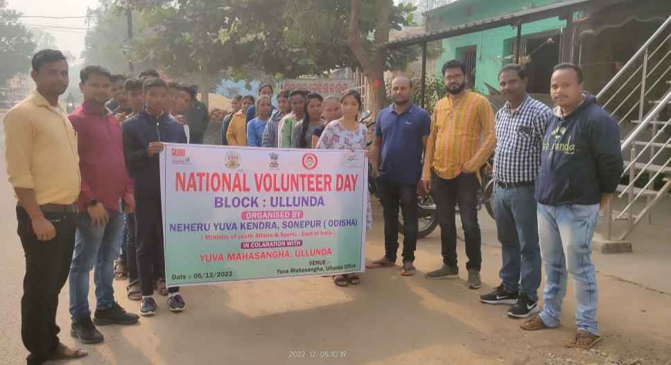 ଉଲୁଣ୍ଡା (ଗୌରଚନ୍ଦ୍ର ପରିଛା) ସୁବର୍ଣ୍ଣପୁର ଜିଲ୍ଲା ଉଲୁଣ୍ଡା ସଦର ସ୍ଥିତ ଲକ୍ଷ୍ମିନଗର ଠାରେ ନେହେରୁୁ ଯୁବକେନ୍ଦ୍ର ଓ ଯୁବମହାସଂଘର ମିଳିତ ଆନୁକୁଲ୍ୟରେ ଜାତୀୟ ସ୍ୱେଚ୍ଛାସେବୀ ଦିବସ ପାଳିତ ହୋଇଯାଇଛି । ଯୁବ ମହାସଂଘର ସଭାପତି ମହେଶ ରଂଜନ ପୁରୋହିତଙ୍କ ସଭାପତିତ୍ୱରେ ଆୟୋଜିତ ସଭାରେ ବ୍ଲକ ସାମାଜିକ ସୁରକ୍ଷା ଅଧିକାରୀ କ୍ଷିରୋଧ ଭୂଷଣ ରାଏ ମୁଖ୍ୟ ଅତିଥି ଭାବରେ ଯୋଗଦେଇ ସ୍ୱେଚ୍ଛାସେବୀ ଦିବସ ପାଳନର ଉଦ୍ୟେଶ୍ୟ ଓ ଲକ୍ଷ ଉପରେ ଆଲୋକପାତ କରିଥିଲେ । ସମ୍ମାନିତ ଅତିଥି ଭାବରେ ଗୋଷ୍ଠି ସ୍ୱାସ୍ଥ୍ୟକେନ୍ଦ୍ର ବିଡିଏମ ନରେନ୍ଦ୍ର ଦେହେରୀ, ଅଚ୍ୟୁତାନନ୍ଦ ବେହେରା ଏବଂ ବିଶ୍ୱ ମୋହନ ପୁରୋହିତ ଯୋଗଦେଇ ମଂଚାସୀନ ହୋଇଥିଲେ । କାର୍ଯ୍ୟକ୍ରମକୁ ସମ୍ଭୁରାଜ କର୍ଣ୍ଣ ପରିଚାଲନା କରିଥିଲେ । ଏହି କାର୍ଯ୍ୟକ୍ରମରେ ବ୍ଲକର ବିଭିନ୍ନ ସ୍ଥାନରୁ ୫୮ ଜଣ ସଦସ୍ୟ ଯୋଗଦେଇଥିଲେ । ସୁଶିଲ ଥାଟୀ ଧନ୍ୟବାଦ ଦେଇଥିଲେ