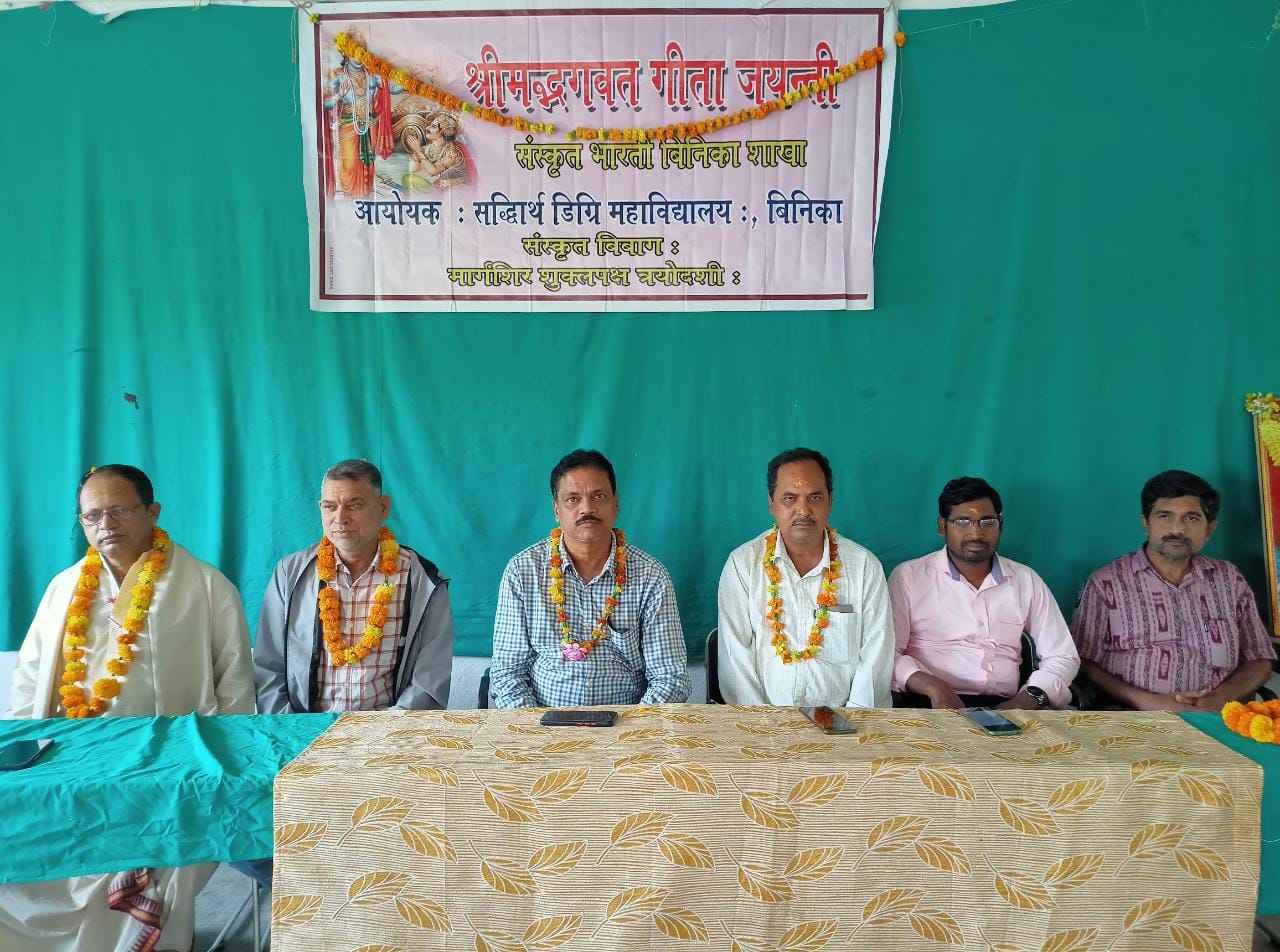 ବିନିକା(ହିମାଂଶୁ ଶେଖର ପୁଟେଲ) ବିନିକା ସିଦ୍ଧାର୍ଥ ଡିଗ୍ରୀ କଲେଜ ସଂସ୍କୃତ ବିଭାଗ ପକ୍ଷରୁ ଶ୍ରୀମଦ୍ଭାଗବତ ଗୀତା ଜୟନ୍ତୀ ଅଧ୍ୟକ୍ଷ ଡ଼ଃ ଧୀରେନ୍ଦ୍ର କୁମାର ନାୟକଙ୍କ ସଭାପତିତ୍ବରେ ଅନୁଷ୍ଠିତ ହୋଇଯାଇଛି । ଏଥିରେ ମୁଖ୍ୟବକ୍ତା ଭାବେ ସିଦ୍ଧାର୍ଥ କନିଷ୍ଠ କଲେଜର ଓଡ଼ିଆ ବିଭାଗ ଅଧ୍ୟାପକ ନିରଞ୍ଜନ ପାଣ୍ଡିଆ