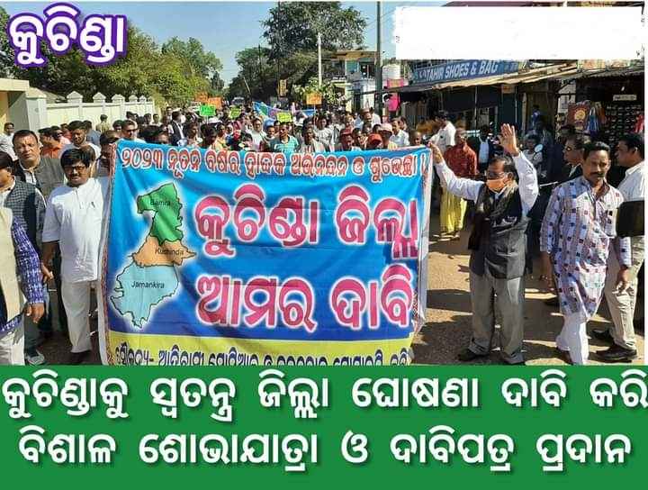 ଆଦିବାସୀ ଅଧ୍ୟୁଷିତ ତଥା ବିଭିନ୍ନ କମିଟି ଦ୍ଵାରା ଅନୁନ୍ନତ ଅଞ୍ଚଳ ଘୋଷିତ କୁଚିଣ୍ଡା ଉପଖଣ୍ଡକୁ ଏକ ସ୍ବତନ୍ତ୍ର ଜିଲ୍ଲା ଘୋଷଣା ଦାବି କରି ଆଜି ସ୍ଥାନୀୟ ମୁକୁନ୍ଦୀ ଖେଳ ପଡିଆ ସମ୍ମୁଖରୁ ବିଭିନ୍ନ ରାଜନୈତିକ ଦଳ, ସଂଗଠନ ଓ ଲୋକ ପ୍ରତିନିଧିଙ୍କ ଏକ ମିଳିତ ବିଶାଳ ଶୋଭାଯାତ୍ରା ସହର ପରିକ୍ରମା କରି ମହାମହିମ ରାଷ୍ଟ୍ରପତି ,ରାଜ୍ୟପାଳ ଓ ମୁଖ୍ୟମନ୍ତ୍ରୀ ନବୀନ ପଟ୍ଟନାୟକଙ୍କ ଉଦ୍ଦେଶ୍ୟରେ ସ୍ଥାନୀୟ ଉପ ଜିଲ୍ଲାପାଳଙ୍କ ଜରିଆ ରେ ଏକ ଦାବି ପତ୍ର ପ୍ରଦାନ କରାଯାଇଥିଲା I କୁଚିଣ୍ଡା ଓକିଲ ସଂଘର ଆବାହକତ୍ୱ ତଥା ସାମାଜିକ କର୍ମୀଙ୍କ ସକ୍ରିୟ ସହାୟତାରେ ଏହି ଦାବି ପତ୍ର ପ୍ରଦାନ କାର୍ଯ୍ୟକ୍ରମ ଅନୁଷ୍ଠିତ ହୋଇଥିଲା I ଶୋଭାଯାତ୍ରା ପୂର୍ବରୁ ଖେଳ ପଡିଆ ସମ୍ମୁଖରେ ଓକିଲ ସଂଘ ସଭାପତି ପ୍ରମୋଦ କୁମାର ଛୁରିଆଙ୍କ ସଂଯୋଜନାରେ ଆୟୋଜିତ ସଚେତନତା ସଭାରେ ବରିଷ୍ଟ ଓକିଲ ତଥା ସହ ଆବାହକ ହୃଦାନନ୍ଦ ଶର୍ମା ,କୋଶଳ ରାଜ୍ୟ ମୁକ୍ତି ମୋର୍ଚ୍ଚାର କାର୍ଯ୍ୟକାରୀ ସଭାପତି ତଥା ଅବସରପ୍ରାପ୍ତ ଅଧ୍ୟକ୍ଷ ସୁବାସ ଚନ୍ଦ୍ର ନାୟକ,ପୂର୍ବତନ ବିଧାୟକ ରାଜେନ୍ଦ୍ର କୁମାର ଛତ୍ରିଆ ,ରବି ନାରାୟଣ ନାଏକ, ବୃନ୍ଦାବନ ମାଝୀ , ବିଶିଷ୍ଟ ବିଜେଡି ନେତା ବିଜୟ କୁମାର ମହାନ୍ତି ,ଏନଏ ସି ଅଧ୍ୟକ୍ଷ ପ୍ରଦ୍ୟୁତ ମହାନ୍ତି , ଜମନକିରା ବରିଷ୍ଟ ନାଗରିକ ସଂଘ ସଭାପତି ରବୀନ୍ଦ୍ର ଦାନୀ , ପୂର୍ବତନ ଅଧ୍ୟକ୍ଷ ସରୋଜ ପଟ୍ଟ ନାୟକ , ସାମ୍ବାଦିକ ରବୀନ୍ଦ୍ର ଦାନୀ ,ପ୍ରଭାତ ବେହେରା , ବାମରା ବ୍ଲକ ଅଧ୍ୟକ୍ଷା ପିଙ୍କି ଧୂରୁଆ,ପୂର୍ବତନ ଅଧ୍ୟକ୍ଷ ପ୍ରଦୀପ ମିଶ୍ର, ସାମାଜିକ କର୍ମୀ ଅଲେଖ ପତି ,ନାରୀନେତ୍ରୀ ବିଣା ନାଏକ ପ୍ରମୁଖ ଉଦବୋଧନ ଦେଇ ଜିଲ୍ଲା ଦାବି ପୂରଣ ପର୍ଯ୍ୟନ୍ତ ଆନ୍ଦୋଳନ ଅବ୍ୟାହତ ରହିବ ବୋଲି ଘୋଷଣା କରିଥିଲେ । ଏହା ପରେ ଆଦିବାସୀ ନୃତ୍ୟର ତାଳେ ତାଳେ ବିଶାଳ ଶୋଭାଯାତ୍ରାରେ ବିଭିନ୍ନ ସ୍ଲୋଗାନ ଦେଇ ସହର ପରିକ୍ରମା କରିଥିଲା । ଦାବିପତ୍ର ପ୍ରଦାନ ବେଳେ କୁଚିଣ୍ଡା ବିଧାୟକ କିଶୋର ଚନ୍ଦ୍ର ନାଏକ ମଧ୍ୟ ସାମିଲ ଥିଲେ I ଓକିଲ ସଂଘ ନେତୃତ୍ବରେ ଏହି ସର୍ବଦଳୀୟ ଆନ୍ଦୋଳନ ପରେ ଖୁବ ଶୀଘ୍ର ଏକ କ୍ରିୟାନୁଷ୍ଠାନ ଗଠନ ହୋଇ ଆନ୍ଦୋଳନକୁ ଆଗେଇ ନିଆ ଯିବା ବୋଲି ଉଦ୍ୟୋକ୍ତା ଗଣଙ୍କ ପକ୍ଷରୁ ଘୋଷଣା କରାଯାଇଛି ।