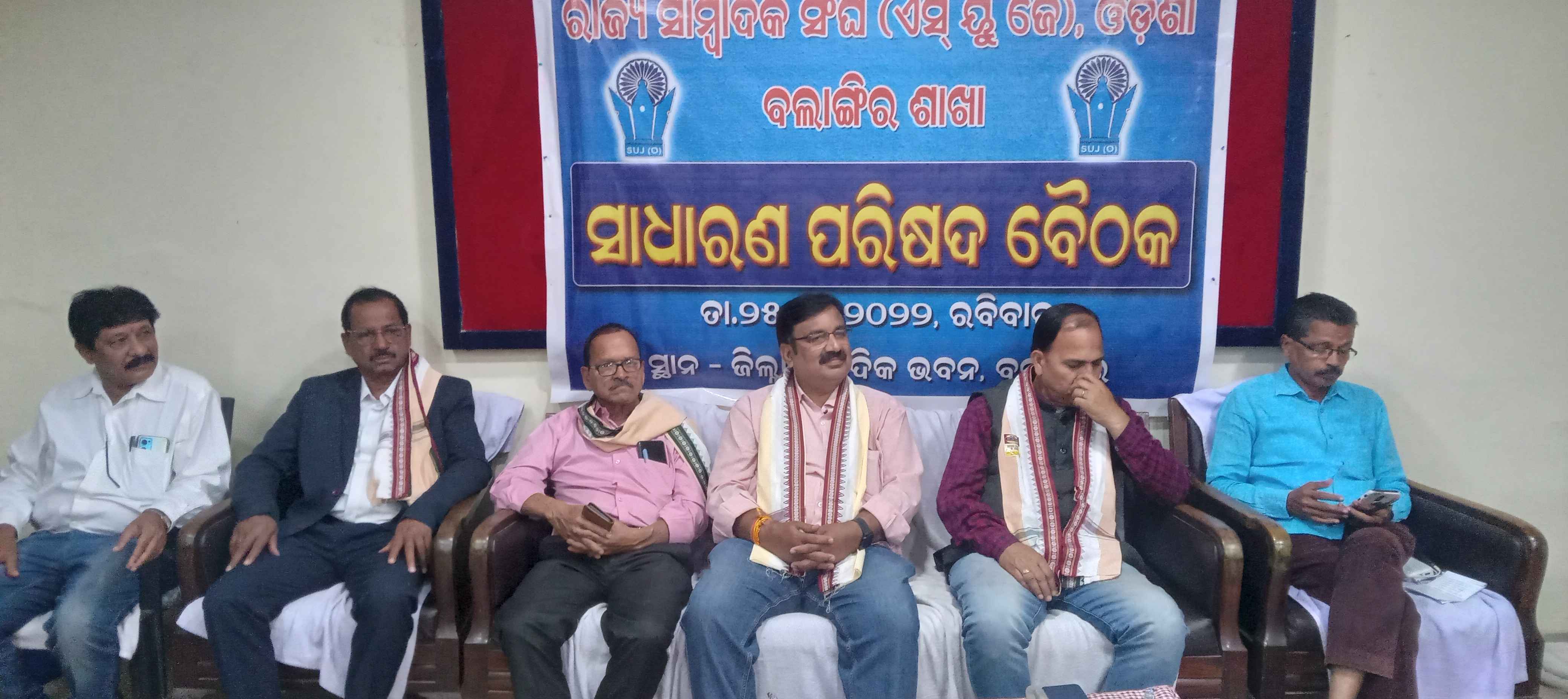 ଦର୍ଜି, ଓ ରାଜ୍ୟ କାର୍ଯ୍ୟକାରୀ ସଭାପତି କୀର୍ତ୍ତି ଚନ୍ଦ୍ର ସାହୁ ମଂଚାସୀନ ରହି ନିଜର ଅଭିଭାଷଣ ପ୍ରଦାନ କରିଥିଲେ । ସାମ୍ବାଦିକ ଏକତା ଓ ଅଖଣ୍ଡତାକୁ ବଜାୟ ରଖିବା ପାଇଁ ବକ୍ତା ମାନେ ଆହ୍ୱାନ ଦେଇଥିଲେ । ସାମ୍ବାଦିକ ମାନଙ୍କ ପାଇଁ ପେନ୍ସନ ଓ ସ୍ୱାସ୍ଥ୍ୟ ବୀମା ପ୍ରଦାନ କ୍ଷେତ୍ରରେ ରାଜ୍ୟ ସରକାରଙ୍କ ଉଦାସୀନତା ମନୋଭାବ କୁ ନିନ୍ଦା କରାଯାଇଥିଲା । ପରେ ଏସ୍ୟୁଜେ ବଲାଙ୍ଗୀର ଶାଖାର ର ନୂତନ କର୍ମକର୍ତ୍ତା ଙ୍କ ନାମ ଘୋଷଣା କରାଯାଇଥିଲା । ଏସ୍ୟୁଜେର ସଭାପତି ଭାବରେ ସାମ୍ବାଦିକ ଗୋପବନ୍ଧୁ ଶତପଥୀ, କାର୍ଯ୍ୟକାରୀ ସଭାପତି ଭାବରେ ରାଜକୁମାର ଦାଶ, ଉପସଭାପତି ଭାବରେ ସରୋଜ ବିଶ୍ୱାଲ, ସଂପାଦକ ଭାବେ ରଘୁ ନନ୍ଦନ ସିଂହ, ସାଧାରଣ ସଂପାଦକ ଭାବରେ ଶରତ ମହାକୁଡ, କାର୍ଯ୍ୟକାରୀ ସଂପାଦକ ଭାବରେ ନିରୋଜ ମିଶ୍ର, ରାଜ୍ୟ ସଭ୍ୟ ଭାବେ ଲୋଇସିଂହାର ବିମଳ ହୋତା କୋଷାଧ୍ୟକ୍ଷ ଭୋବେ ସନ୍ତୋଷ ଠାକୁର ମନୋନୀତ ହୋଇଥିଲେ । ସଂଘର କାର୍ଯକାରୀ କମିଟିକୁ ସତ୍ୟ ନାରାୟଣ ପଟେଲ, ବାଳକୃଷ୍ଣ ଷଡଙ୍ଗୀ, ଜୟପ୍ରକାଶ ମଟାରୀ ପ୍ରମୁଖ ମନନୀତ ହୋଇଥିଲେ । ଅନ୍ୟ ମାନଙ୍କ ମଧ୍ୟରେ ସାମ୍ବାଦିକ ମହେନ୍ଦ୍ର ପ୍ରଧାନ, ବିନୋଦ ଦୀପ, ମୋତିଲାଲ ମିଶ୍ର, ରାଧାକୃଷ୍ଣ ମିଶ୍ର ପ୍ରମୁଖ ଉପସ୍ଥିତ ଥିଲେ । ଶେଷରେ ସାମ୍ବାଦିକ ଶରତ ମହାକୁଡ ଧନ୍ୟବାଦ ଅର୍ପଣ କରିଥିଲେ ।