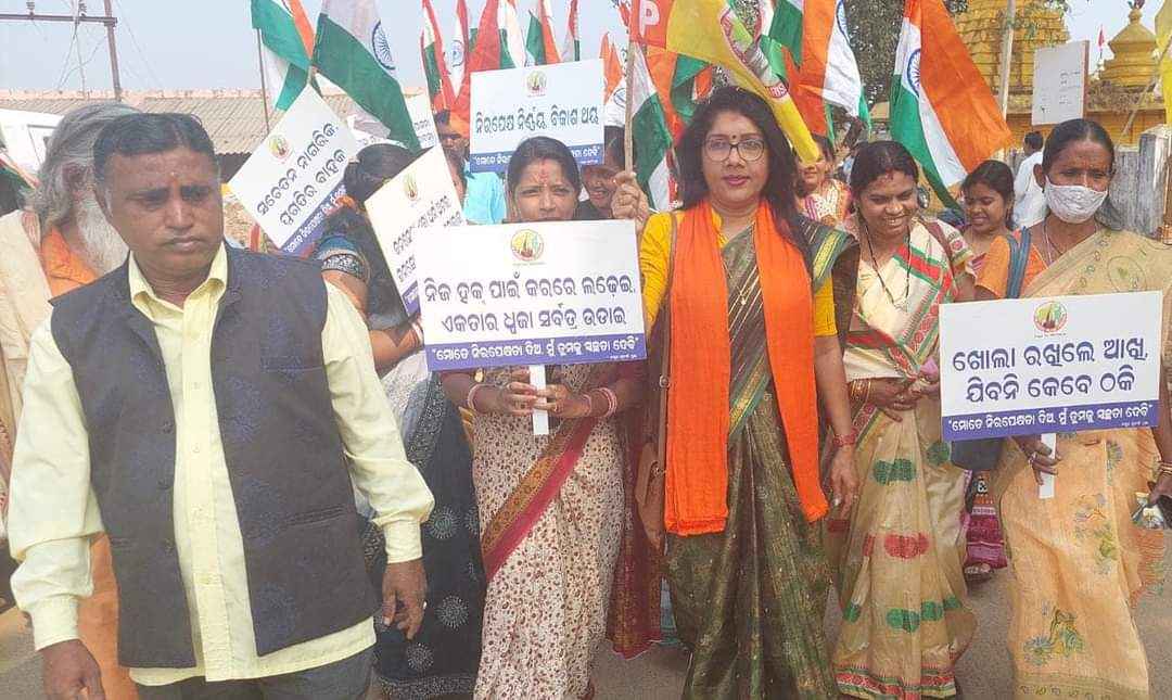 କଳାହାଣ୍ଡି ଜିଲ୍ଲା କର୍ଲାମୁଣ୍ଡା ବ୍ଲକ ସଦର ମହକୁମା ଠାରେ କଳାହାଣ୍ଡି ବିକାଶ ପରିଷଦ ପକ୍ଷରୁ ସୋମବାର ନିଜ ଅଧିକାର ସୁରକ୍ଷା ପାଇଁ କ୍ରାନ୍ତି ଯାତ୍ରା ମାଧ୍ୟମରେ କ୍ରାନ୍ତି କାରୀ ଚେତନା ଜାଗ୍ରତ ନିମନ୍ତେ ଶୋଭାଯାତ୍ରା ଅନୁଷ୍ଠିତ ହୋଇଯାଇଛି।ଏଥିରେ କଳାହାଣ୍ଡି ବିକାଶ ପରିଷଦ ଅଧ୍ୟକ୍ଷା ଡ଼. ସୁନୀତି ମୁଣ୍ଡ ଙ୍କ ନେତୃତ୍ୱରେ କର୍ଲାମୁଣ୍ଡା ବ୍ଲକ ଅଧକ୍ଷ୍ୟା କୁନି ସାହୁ,ରିଷିଡା ପଞ୍ଚାୟତ ସରପଞ୍ଚ ସେବତୀ ରଣା, ଜୋରାଡ଼ବରା ପଞ୍ଚାୟତ ସରପଞ୍ଚ ଖିତିସୁତା ସାହୁ,ସ. ମାଲପଡା ପଞ୍ଚାୟତ ସରପଞ୍ଚ ବରୁଣ ଛତ୍ରିଆ,ସମାଜ ସଂସ୍କାରକ ବାବା ଭଗବାନ ସାହୁ, ଅବସର ପ୍ରାପ୍ତ ଶିକ୍ଷକ ପଣ୍ଡିତ ପଧାନ,ମୁରଲୀଧର ରଣା, ବଳଦେବ ସାହୁ,ନାରୀନେତ୍ରୀ ଜୟନ୍ତୀ ସାହୁ,ରୀନା ସାହୁ,ପୁଷ୍ପାଞ୍ଜଳି ସାହୁ,ପ୍ରଭାତୀ ଭୋଇ ଓ ଶାନ୍ତନୁ ମିଶ୍ର, ଅରୁଣ ଦାଶ୍ ପ୍ରମୁଖ ଙ୍କ ସମେତ ବହୁ ଭଦ୍ରବ୍ୟକ୍ତି ସାମିଲ ହୋଇ ସରସ୍ୱତୀ ଶିଶୁ ମନ୍ଦିର ଠାରୁ ଶୋଭାଯାତ୍ରାରେ ବାହାରି ତହସିଲ କାର୍ଯ୍ୟାଳୟ ପର୍ଯ୍ୟନ୍ତ ପହଞ୍ଚି ଥିଲେ।ତେବେ ଏହି କ୍ରାନ୍ତି ଯାତ୍ରା ଜରିଆରେ ଜିଲ୍ଲା ର ସମସ୍ତ ବ୍ଲକ ରେ ଜନ ସାଧାରଣ ଙ୍କୁ ସେମାନଙ୍କ ସାମ୍ବଧନିକ ଅଧିକାର ଓ କର୍ତ୍ତବ୍ୟ ପ୍ରତି ସଚେତନ କରାଯିବ ବୋଲି କଳାହାଣ୍ଡି ବିକାଶ ପରିଷଦ ଅଧ୍ୟକ୍ଷା ଡ଼. ସୁନୀତିମୁଣ୍ଡ ସୂଚନା ଦେଇଛନ୍ତି।