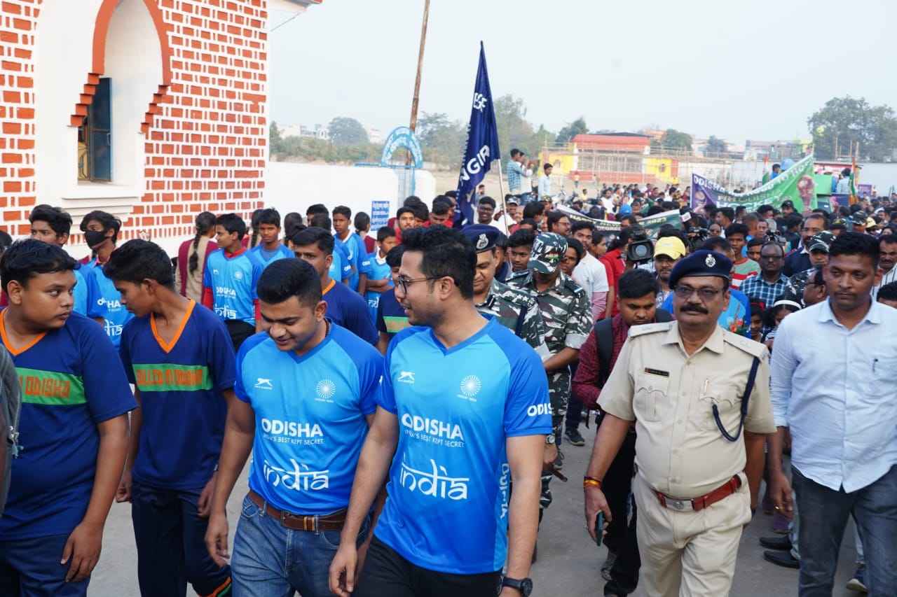 ଆରମ୍ଭ ହୋଇଥିଲା । ପରେ ଟ୍ରଫି ବଙ୍ଗୋମୁଣ୍ଡା ,ଟିଟିଲାଗଡ ,ସଇଁତଳା ,ଦେଓଗାଁ ବାଟ ଦେଇ ବଲାଙ୍ଗିର ସହର ସ୍ଥିତ କୋଶଳ କଳା ମଣ୍ଡଳ ପଡିଆରେ ପହଞ୍ଚିଥିଲା । ଟ୍ରଫି କୁ ବଙ୍ଗୋମୁଣ୍ଡା ,ଟିଟିଲାଗଡ ,ସଇଁତଳା ,ଦେଓଗାଁ ଠାରେ ସ୍ଥାନୀୟ ପ୍ରଶାସନ ,ଜନ ପ୍ରତିନିଧି ,ବିଭିନ୍ନ ଅନୁଷ୍ଠାନ ତଥା ଜନସାଧାରଣ ଙ୍କ ପକ୍ଷରୁ ବିପୁଳ ସ୍ଵାଗତ ସମ୍ବର୍ଦ୍ଧନା ଜ୍ଞାପନ କରାଯାଇଥିଲା । ଟ୍ରଫି କୁ ଏକ ବାଇକ ରାଲି ଦ୍ଵାରା ଆରଟିଓ ଛକ ରୁ କୋଶଳ କଳା ମଣ୍ଡଳ ପଡିଆ ପର୍ଯ୍ୟନ୍ତ ଅଣାଯାଇଥିଲା । କୋଶଳ କଳା ମଣ୍ଡଳ ପଡିଆରେ ଜିଲ୍ଲା ପରିଷଦ ଅଧ୍ୟକ୍ଷ୍ୟା ଦେବକୀ ସାହୁ ,ପୌର ପରିଷଦ ଅଧ୍ୟକ୍ଷ୍ୟା ଲିକା ସାହୁ ,ଜିଲ୍ଲାପାଳ ଚଞ୍ଚଳ ରାଣା ,ଆରକ୍ଷୀ ଅଧିକ୍ଷକ ନିତିନ କୁଶଳକର ଙ୍କ ସମେତ ବହୁ ବିଶିଷ୍ଠ ବ୍ୟକ୍ତି ପ୍ରମୁଖ ସ୍ଵାଗତ କରିଥିଲେ । ପରେ କୋଶଳ କଳା ମଣ୍ଡଳ ପଡିଆ ଠାରୁ ଘଣ୍ଟବାଦ୍ୟ ,ଦୁଲଦୁଳି ଆଦି ବାଦ୍ୟଦଳ ସହ ବିରାଟ ପଟୁଆରରେ ଗାନ୍ଧୀ ଷ୍ଟାଡିୟମ ପର୍ଯ୍ୟନ୍ତ ନିଆଯାଇଥିଲା । ଗାନ୍ଧୀ ଷ୍ଟାଡିୟମ ଠାରେ ବଲାଙ୍ଗିର ବିଧାୟକ ନରସିଂହ ମିଶ୍ର ,ଲୋଇସିଂହ। ବିଧାୟକ ଡ଼ ମୁକେଶ ମହାଲିଙ୍ଗ , ଜିଲ୍ଲା ପରିଷଦ ଅଧ୍ୟକ୍ଷ୍ୟା ଦେବକୀ ସାହୁ ,ପୌର ପରିଷଦ ଅଧ୍ୟକ୍ଷ୍ୟା ଲିକା ସାହୁ ,ଜିଲ୍ଲାପାଳ ଚଞ୍ଚଳ ରାଣା ,ଆରକ୍ଷୀ ଅଧିକ୍ଷକ ନିତିନ କୁଶଳକର, ୧୮୯ ବାଟାଲିଆନ ସିଆରପିଏଫ ର କମାଣ୍ଡେଣ୍ଟ ପବନ କୁମାର ତିୱାରି ,ବଲାଙ୍ଗୀର ବ୍ଲକ ଅଧ୍ୟକ୍ଷା ସରିତା ବାଗ ,ଡିଏଫଓ ନିତୀଶ କୁମାର, ଅତିରିକ୍ତ ଜିଲ୍ଲାପାଳ ଲମ୍ବୋଦର ଧରୁଆ ଙ୍କ ସମେତ ବହୁ ବିଶିଷ୍ଠ ବ୍ୟକ୍ତି ଓ ଅନୁଷ୍ଠାନ ତରଫରୁ ସ୍ଵାଗତ ସମ୍ବର୍ଦ୍ଧନା ଜ୍ଞାପନ କରାଯାଇଥିଲା । ଗାନ୍ଧୀ ଷ୍ଟାଡିୟମ ଠାରେ ଆୟୋଜିତ ମୁଖ୍ୟ ଉତ୍ସବରେ ପୂର୍ବତନ ଆନ୍ତର୍ଜାତିକ ଆଥଲେଟ ଆନନ୍ଦିନୀ ଦର୍ଜି ,ପୂର୍ବତନ ଜାତୀୟ ଭଲିବଲ ଖେଳାଳି ଅନୁପ କୁମାର ସାହୁ , ଜୁନିଅର ଜାତୀୟ ଭଲିବଲ ଖେଳାଳି କୁମାରୀ ରଶ୍ମିତା ଦୀପ ,ଖେଲୋ ଇଣ୍ଡିଆ ସିଲଭର ମେଡାଲିଷ୍ଟ ସୁହାନି ଗୁରହାଣ୍ଡି ,ଜାତୀୟ ଫୁଟବଲ ଖେଳାଳି ସୁଧାଂଶୁ ସେଠ , ଜାତୀୟ ଫୁଟବଲ ଖେଳାଳି ଅଭିମନ୍ୟୁ ପାଣ୍ଡେ ଙ୍କୁ ସମ୍ବର୍ଦ୍ଧିତ କରାଯାଇଥିଲା । ବଲାଙ୍ଗିର ଜିଲ୍ଲାରେ ପୁରୁଷ ବିଶ୍ଵ କପ ହକି ଟ୍ରଫି ଟୁର କାର୍ଯକ୍ରମ ଉପଲକ୍ଷେ ଆଜି ସକାଳେ ଏକ ମିନି ମାରାଥନ ର ଆୟୋଜନ କରାଯାଇଥିଲା । ମାରାଥନ ଗାନ୍ଧୀ ଷ୍ଟାଡିୟମ ରୁ ବାହାରି ଲିଟିଲ ଫ୍ଲାୱାର ସ୍କୁଲ ପର୍ଯ୍ୟନ୍ତ ଯାଇ ପୁଣି ଗାନ୍ଧୀ ଷ୍ଟାଡିୟମ କୁ ଫେରିଥିଲା । ତିନୋଟି ବର୍ଗରେ ଅନୁଷ୍ଠିତ ଏହି ମିନି ମାରାଥନ ରେ କୃତିତ୍ଵ ହାସଲ କରିଥିବା ପ୍ରତିଯୋଗୀ ଙ୍କୁ ଗାନ୍ଧୀ ଷ୍ଟାଡିୟମ ଠାରେ ଆୟୋଜିତ ମୁଖ୍ୟ ଉତ୍ସବରେ ସମ୍ମାନିତ କରାଯାଇଥିଲା । ବଲାଙ୍ଗିର ଜିଲ୍ଲାରେ ପୁରୁଷ ବିଶ୍ଵ କପ ହକି ଟ୍ରଫି ଟୁର କାର୍ଯକ୍ରମ ଉପଲକ୍ଷେ ଗାନ୍ଧୀ ଷ୍ଟାଡିୟମ ଠାରେ ଆୟୋଜିତ ମୁଖ୍ୟ ଉତ୍ସବରେ ହକି ଖେଳ ବିଷୟ ବସ୍ତୁ ଉପରେ ଆଧାରିତ ଏକ କୁଇଜ କାର୍ଯକ୍ରମ ର ଆୟୋଜନ କରାଯାଇଥିଲା ।ପରେ ସେଠାରେ ବଚପନ ଓ ଏକାଡେମିକ ହାଇଟ ପବ୍ଲିକ ସ୍କୁଲ ର ଛାତ୍ରଛାତ୍ରୀ ଓ ପଞ୍ଚମ ଅନୁଷ୍ଠାନ ବଲାଙ୍ଗିର ର କଳାକାର ମାନଙ୍କ ଦ୍ଵାରା ମନୋଜ୍ଞ ସାଂସ୍କୃତିକ କାର୍ଯକ୍ରମ ଅନୁଷ୍ଠିତ ହୋଇଥିଲା । ପୁରୁଷ ବିଶ୍ଵ କପ ହକି ଟ୍ରଫି ଟୁର କାର୍ଯକ୍ରମ ଉପଲକ୍ଷେ ଆଜି ଆପରାହ୍ନ ରେ ଅମାମୁଣ୍ଡା ବନାମ କାଲସଇପାଳି ମଧ୍ୟରେ ଏକ ଫୁଟବଲ ମ୍ୟାଚ ଅନୁଷ୍ଠିତ ହୋଇଥିଲ