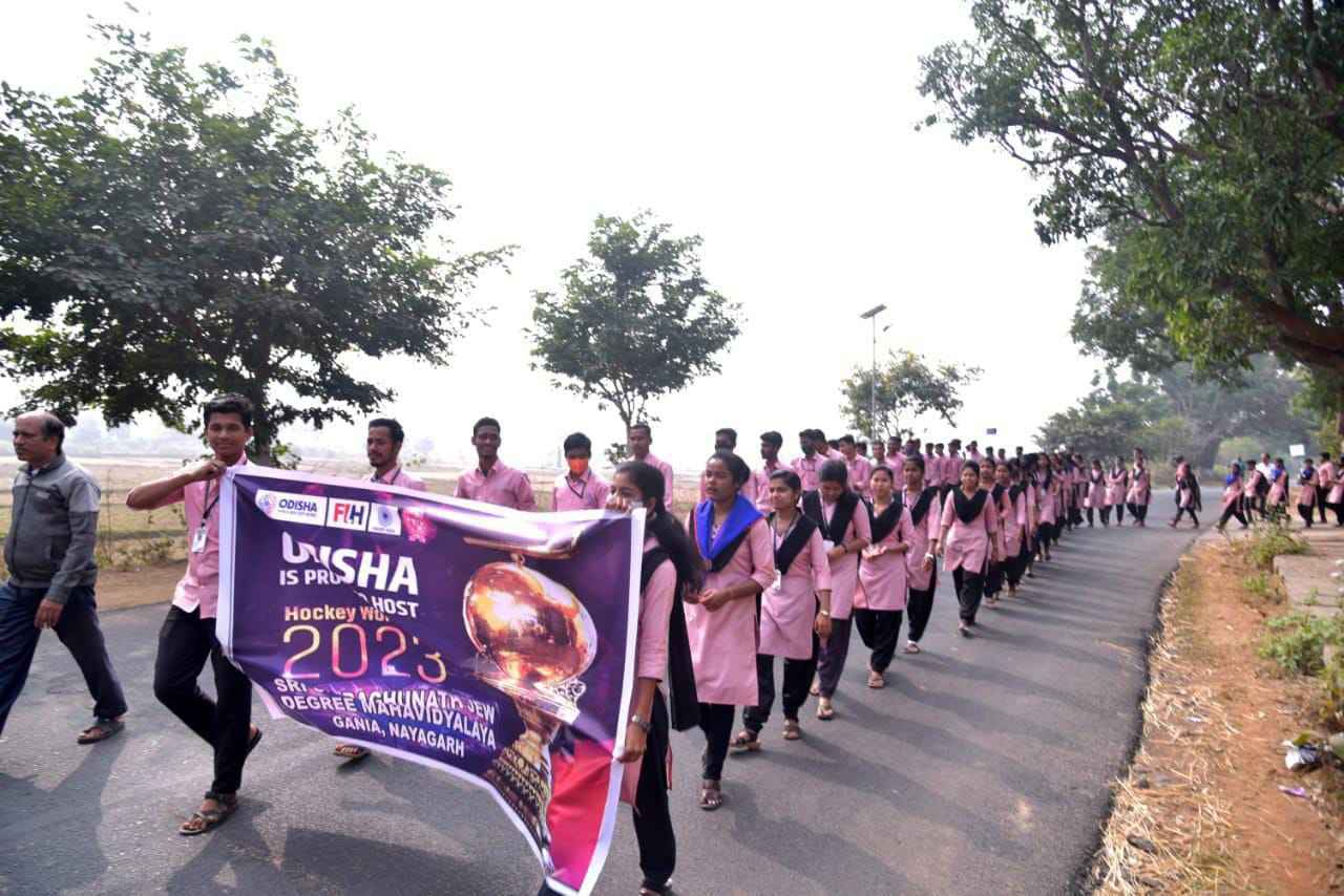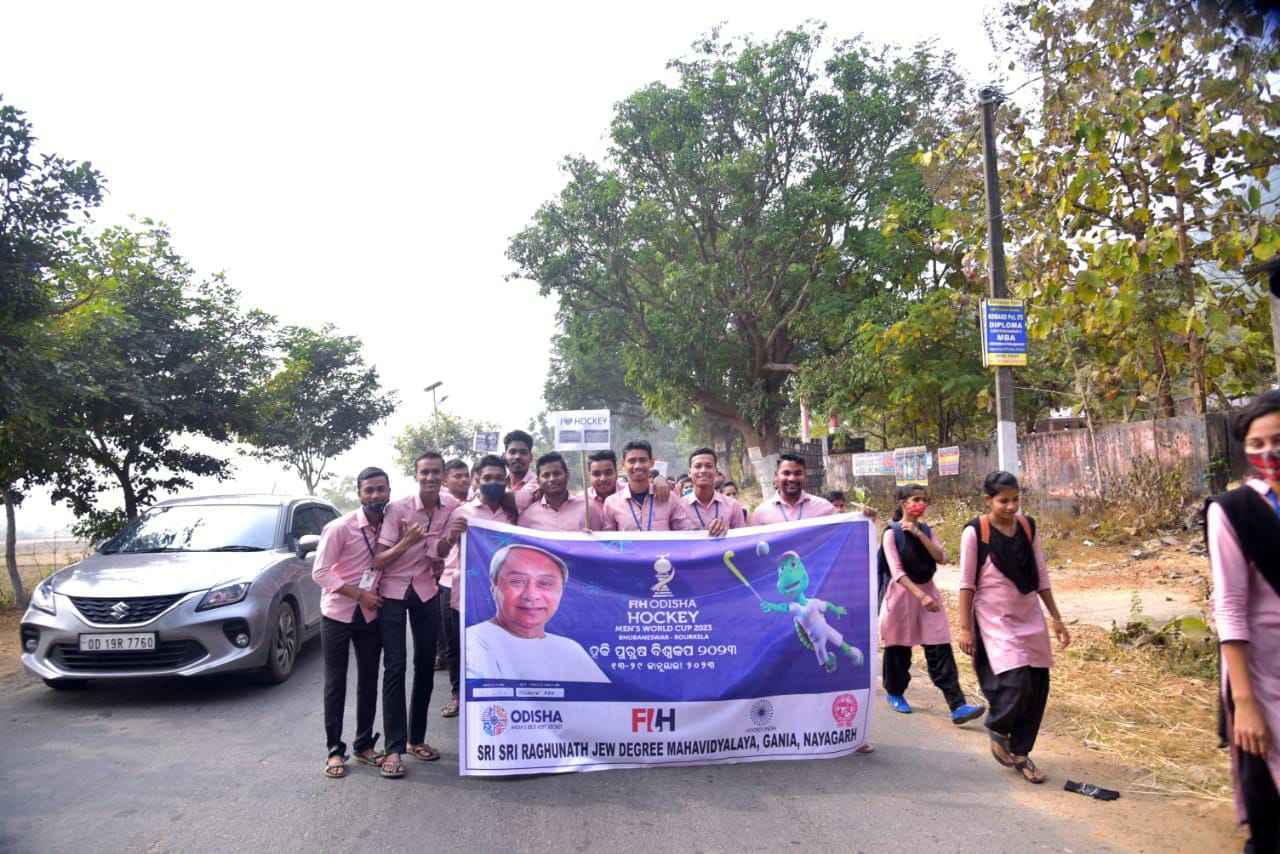 ନୟାଗଡ଼(ପ୍ରଦୀପ କୁମାର ପଣ୍ଡା)ଓଡ଼ିଶା ରେ ବିଶ୍ୱକପ ହକିର ଶୁଭାରମ୍ଭ ପରିପ୍ରେକ୍ଷୀରେ ଗଣିଆ ଶ୍ରୀ ଶ୍ରୀ ରଘୁନାଥ ଜୀଉ ଡ଼ିଗ୍ରୀ ମହାବିଦ୍ୟାଳୟ ତରଫରୁ ଏକ ସଚେତନତା ଶୋଭାଯାତ୍ରା କାର୍ଯ୍ୟକ୍ରମ ଅନୁଷ୍ଠିତ ହୋଇଛି | ମହାବିଦ୍ୟାଳୟ ର ୱାଈଆରସି ଏବଂ ଏନଏସଏସ ୟୁନିଟ ତରଫରୁ ଆୟୋଜିତ ଉକ୍ତ କାର୍ଯ୍ୟକ୍ରମ କୁ ମହାବିଦ୍ୟାଳୟ ର ଅଧ୍ୟକ୍ଷ ଶ୍ରୀ ଲଷ୍ମୀକାନ୍ତ ପଣ୍ଡା ଆନୁଷ୍ଠାନିକ ଭାବେ ଉଦଘାଟନ କରିଥିଲେ l ମହାବିଦ୍ୟାଳୟ