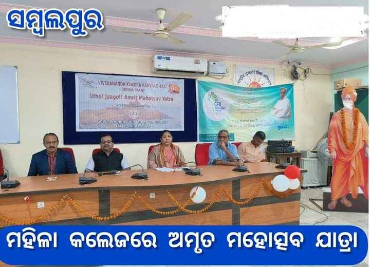 ସ୍ଥାନୀୟ ସରକାରୀ ମହିଳା କଲେଜରେ ବିବେକାନନ୍ଦ କେନ୍ଦ୍ର କନ୍ୟାକୁମାରୀର ଓଡ଼ିଶା ପ୍ରାନ୍ତ ଆନୁକୂଲ୍ୟରେ ସ୍ଵାଧୀନତାର ୭୫ ବର୍ଷ ପୂର୍ତ୍ତି ପାଳନ ଅବସରରେ ଅମୃତ ମହୋତ୍ସବ ମହାସମାରୋହରେ ପାଳିତ ହୋଇଯାଇଛି I କଲେଜ ଅଧ୍ୟକ୍ଷା ପ୍ରଫେସର ରାଜଶ୍ରୀ ବରାଳଙ୍କ ଅଧ୍ୟକ୍ଷତାରେ ଅନୁଷ୍ଠିତ ଏହି ଉତ୍ସବରେ କେନ୍ଦ୍ରର ଉପସଭାପତି ହନୁମନ୍ତ ରାଓ ମୁଖ୍ୟ ଅତିଥି ଭାବେ ଯୋଗଦେଇ ଛାତ୍ରୀମାନଙ୍କୁ ଉଦବୋଧନ ଦେଇଥିଲେ I ମୁଖ୍ୟଅତିଥି ଶ୍ରୀ ରାଓ ସଫଳ ତଥା ସାର୍ଥକ ଜୀବନ ଉପରେ ମତାମତ ରଖିଥିଲେ I କେନ୍ଦ୍ରର ପ୍ରାନ୍ତ ସଙ୍ଗଠକ ରବି ନାଇଡୁ ଅମୃତ ମହୋତ୍ସବର ଉଦ୍ଦେଶ୍ୟ ସମ୍ପର୍କରେ ମତ ରଖି ଦେଶ ଗଠନ ପାଇଁ ଅତି କମରେ ସପ୍ତାହରେ ୨ଘଣ୍ଟା ଦେବା ପାଇଁ ଛାତ୍ରୀ ମାନଙ୍କୁ ପରାମର୍ଶ ଦେଇଥିଲେ। ପ୍ରଫେସର ଯୋଗେଶ ଚନ୍ଦ୍ର ଭୋଇଙ୍କ ସଂଯୋଜନାରେ ଅନୁଷ୍ଠିତ ଏହି ଉତ୍ସବରେ ପ୍ରଫେସର ଉମାଶଙ୍କର ଦାଶ ଧନ୍ୟବାଦ ଅର୍ପଣ କରିଥିଲେ। ଏହି ଅବସରରେ ପୂର୍ବରୁ ଆୟୋଜିତ ହୋଇଥିବା କ୍ଵିଜ ପ୍ରତିଯୋଗିତାର ସଫଳ ଛାତ୍ରୀଙ୍କୁ ମୁଖ୍ୟ ଅତିଥି ପୁରସ୍କାର ପ୍ରଦାନ କରିଥିଲେ। ଉତ୍ସବରେ ଶତାଧିକ ଛାତ୍ରୀ ତଥା ଅଧ୍ୟାପକ, ଅଧ୍ୟାପିକା ଉପସ୍ଥିତ ଥିଲେ।