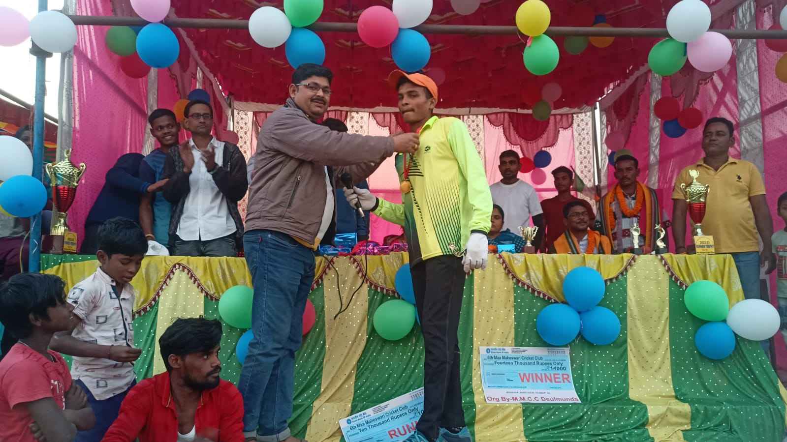 ବୀରମହାରାଜପୁର , (ବିନୋଦ ପାଣ୍ଡେ): ବୀରମହାରାଜପୁର ବ୍ଲକ ଅନ୍ତର୍ଗତ ଦେଉଳମୁଣ୍ଡା ଖେଳ ପଡ଼ିଆରେ ଗତ ୬ ତାରିଖରୁ ଆରମ୍ଭ ହୋଇଥିବା ମାଁ ମାହେଶ୍ୱରୀ କ୍ରିକେଟ୍ ଟୁର୍ଣ୍ଣାମେଣ୍ଟ ଉଦଯାପିତ ହୋଇଯାଇଛି । ଉକ୍ତ ଟୁର୍ଣ୍ଣାମେଣ୍ଟରେ ମୋଟ୍ ୧୬ଟି ଦଳ ଅଂଶ ଗ୍ରହଣ କରିଥିବା ବେଳେ ଗତକାଲି ହୋଇଥିବା ଫାଇନାଲ ମ୍ୟାଚରେ ଦେଉଳ ମୁଣ୍ଡା ଦଳ ଟାଙ୍ଗରସହି ଦଳକୁ ପରାସ୍ତ କରି ଚାମ୍ପିଅନ ହୋଇଛି । ତିନି ଫର୍ମାଟ ବିଶିଷ୍ଟ ଉକ୍ତ ଫାଇନାଲ ମ୍ୟାଚ୍ ଟା ପ୍ରଥମ ଫର୍ମାଟରେ ଟାଙ୍ଗରସହି ଦଳ ବିଜୟୀ ହୋଇଥିବା ବେଳେ ପରବର୍ତ୍ତୀ ଦୁଇଟି ଫର୍ମାଟରେ ଦେଉଳମୁଣ୍ଡା ଦଳ ବିଜୟୀ ହୋଇଥିଲା । ଏହି ଅବସରରେ ଶୁଭ୍ରାଂଶୁ ଶେଖର ପାଢ଼ୀଙ୍କ ସଭାପତିତ୍ବରେ ହୋଇଥିବା ଉଦଯାପନୀ ଉତ୍ସବରେ ବୀରମହାରାଜପୁର ବ୍ଲକ୍ ଅଧ୍ୟକ୍ଷା ଶ୍ରୀମତୀ ଶାନ୍ତି ଲୁହା ମୁଖ୍ୟ ଅତିଥି, ବାଗବର ପଞ୍ଚାୟତ ସମିତି ସଭ୍ୟା ଶ୍ରୀମତୀ ବବିତା ବାଘ, ଡୁମୁରୀ ପ୍ରକଳ୍ପ ଉଚ୍ଚ ପ୍ରାଥମିକ ବିଦ୍ୟାଳୟର ପ୍ରଧାନ ଶିକ୍ଷକ ଶ୍ରୀଯୁକ୍ତ ଗୋପବନ୍ଧୁ ଭୋଇ, ଖିରାନ୍ନବ ମହାକୁର ଏବଂ ଧ୍ରୁବ ଚରଣ ବାଘ ପ୍ରମୁଖ ସମ୍ମାନିତ ଅତିଥି ଭାବରେ ଯୋଗ ଦେଇ ବିଜେତା ଦେଉଳମୁଣ୍ଡା ଦଳକୁ ଟ୍ରଫି ସହ ୧୪ହଜାର ଟଙ୍କା ପୁରସ୍କାର ରାଶି ଏବଂ ଉପ ବିଜେତା ଟାଙ୍ଗରସହି ଦଳକୁ ଟ୍ରଫି ସହ ୧୦ ହଜାର ଟଙ୍କା ପୁରସ୍କାର ରାଶି ପ୍ରଦାନ କରି ଉତ୍ସାହିତ କରିଥିଲେ । ଉକ୍ତ ଟୁର୍ଣ୍ଣାମେଣ୍ଟରେ ମେନ୍ ଅଫ୍ ଦି ସିରିଜ୍ ଭାବରେ ରାଜକୁମାର, ମେନ୍ ଅଫ୍ ଦି ମ୍ୟାଚ୍ ମିଳନ ଚାନ୍ଦ, ଶ୍ରେଷ୍ଠ ବୋଲର ରାହୁଲ ଚାନ୍ଦ, ଶ୍ରେଷ୍ଠ ଛକା ପାଇଁ ବୁଲବୁଲ ମହାକୁର, ଶ୍ରେଷ୍ଠ ଫିଲଡର୍ ଓ ଶ୍ରେଷ୍ଠ କ୍ୟାଚ୍ ପାଇଁ ଗୌରାଙ୍ଗ ମହକୁରଙ୍କୁ ପୁରସ୍କୃତ କରାଯାଇଥିବା ବେଳେ ଆମ୍ପାୟର ଭାବରେ ରଞ୍ଜିତ ଚାନ୍ଦ ଓ ପଦ୍ମଲୋଚନ ପାଢୀ, ଧାରା ବିବରଣୀ ପାଇଁ ସୁଜିତ୍ ଚାନ୍ଦ, ସ୍କୋର ପରିଚାଳନା ପାଇଁ ତିଳକ ଚାନ୍ଦଙ୍କୁ ସମ୍ବର୍ଦ୍ଧିତ କରାଯାଇଥିଲା । ଏହି ଟୁର୍ଣ୍ଣାମେଣ୍ଟରେ ଶୁଭ୍ରାଂଶୁ ଶେଖର ପାଢ଼ୀ ଏବଂ ସୁଜିତ୍ ଚାନ୍ଦ ଯଥାକ୍ରମେ ଓଡ଼ିଆ ଓ ହିନ୍ଦୀ ଭାଷାରେ ଧାରା ବିବରଣୀ ପ୍ରଦାନ କରିଥିଲେ ।