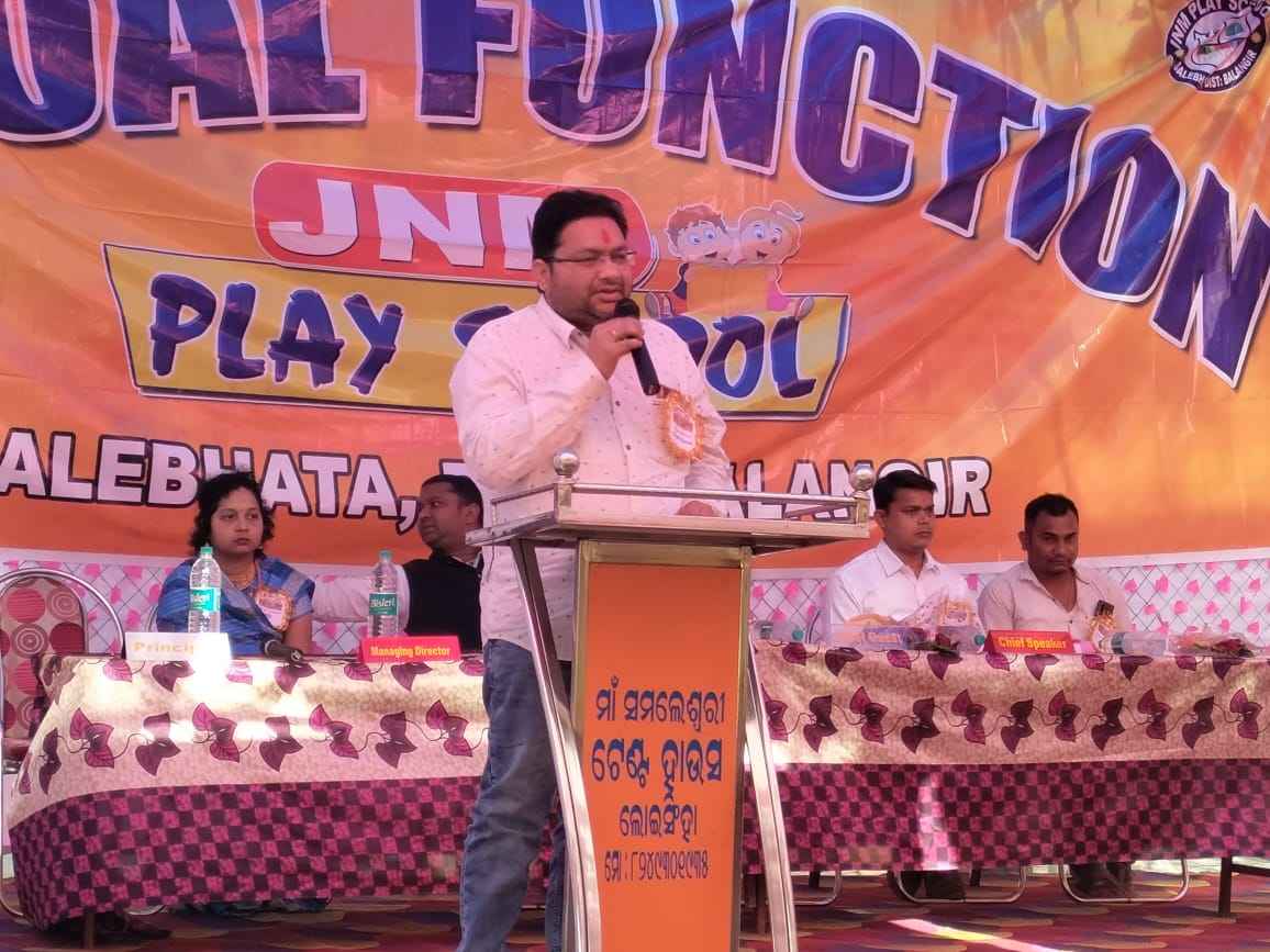 ଆଗଲପୁର, (ବିନୋଦ କୁମାର ଦୀପ) ଆଗଲପୁର ବ୍ଲକ ସାଲେଭଟା ଜେ. ଏନ. ଏମ ପବ୍ଲିକ ସ୍କୁଲରେ ବାର୍ଷିକ ଉତ୍ସବ ଅନୁଷ୍ଠିତ ହୋଇଯାଇଛି l ସ୍କୂଲର ଡାଇରେକ୍ଟର ଶ୍ରୀଯୁକ୍ତ ସନ୍ଦୀପ କୁମାର ମେହେର, ମେନେଜିଂ ଡାଇରେକ୍ଟର ଶ୍ରୀମତୀ ନିକିତାସା ମେହେର ଏବଂ ପ୍ରଧାନ ଶିକ୍ଷୟିତ୍ରୀ ଦେବକୀ ମହାନନ୍ଦଙ୍କ ତତ୍ୱାବଧାନରେ ଅନୁଷ୍ଠିତ କାର୍ଯ୍ୟକ୍ରମରେ ପାଟଣାଗଡ଼ ବିଧାୟକ ଶ୍ରୀଯୁକ୍ତ ସରୋଜ କୁମାର ମେହେର ମୁଖ୍ୟଅତିଥି ଭାବେ ଓ ବିଜେଡି ରାଜ୍ୟ ଯୁବ ପରିଷଦ ସଭ୍ୟ ନିହାରରଞ୍ଜନ ବେହେରା ମୁଖ୍ୟବକ୍ତା ଭାବେ ଯୋଗ ଦେଇଥିଲେ l