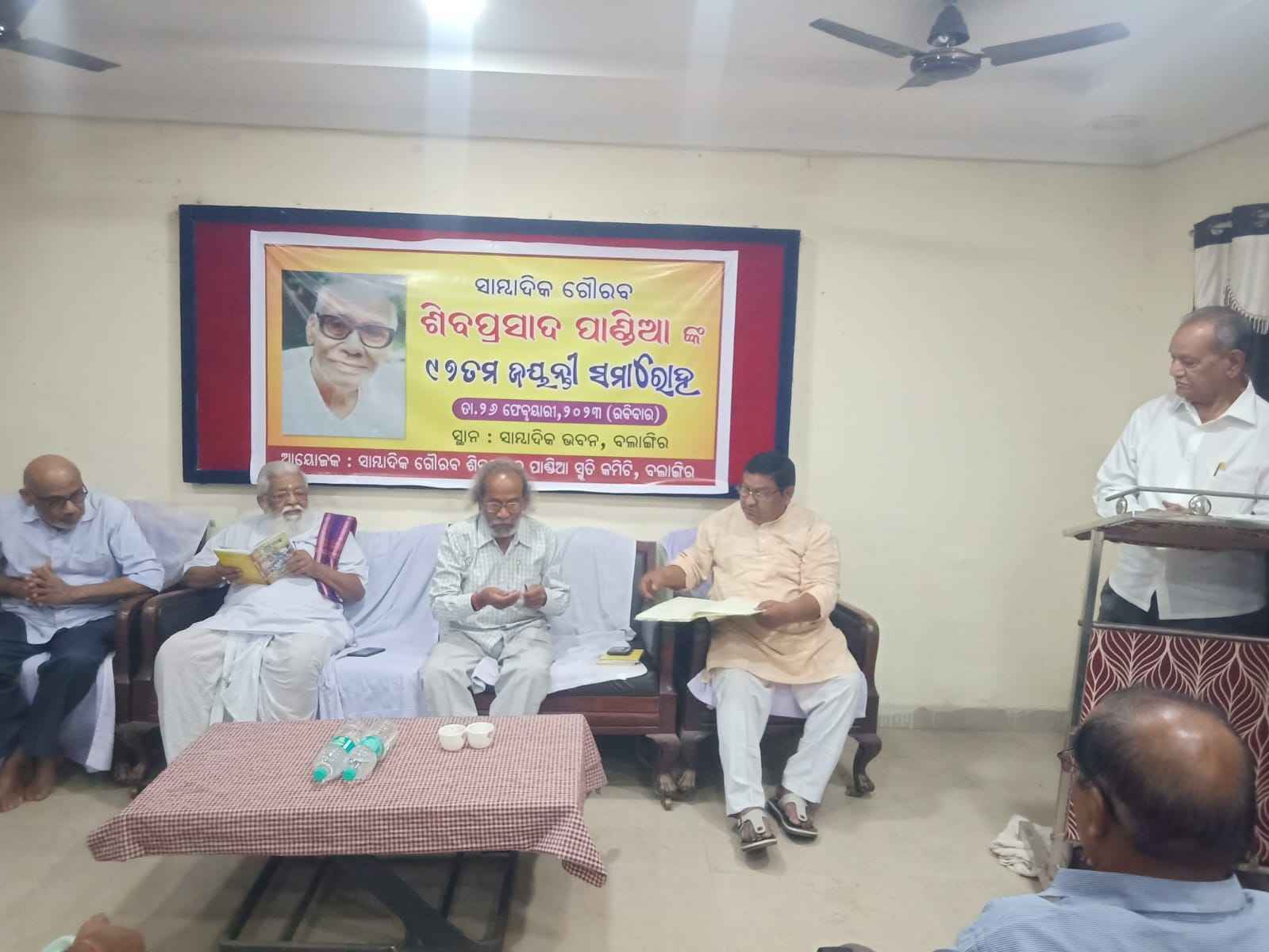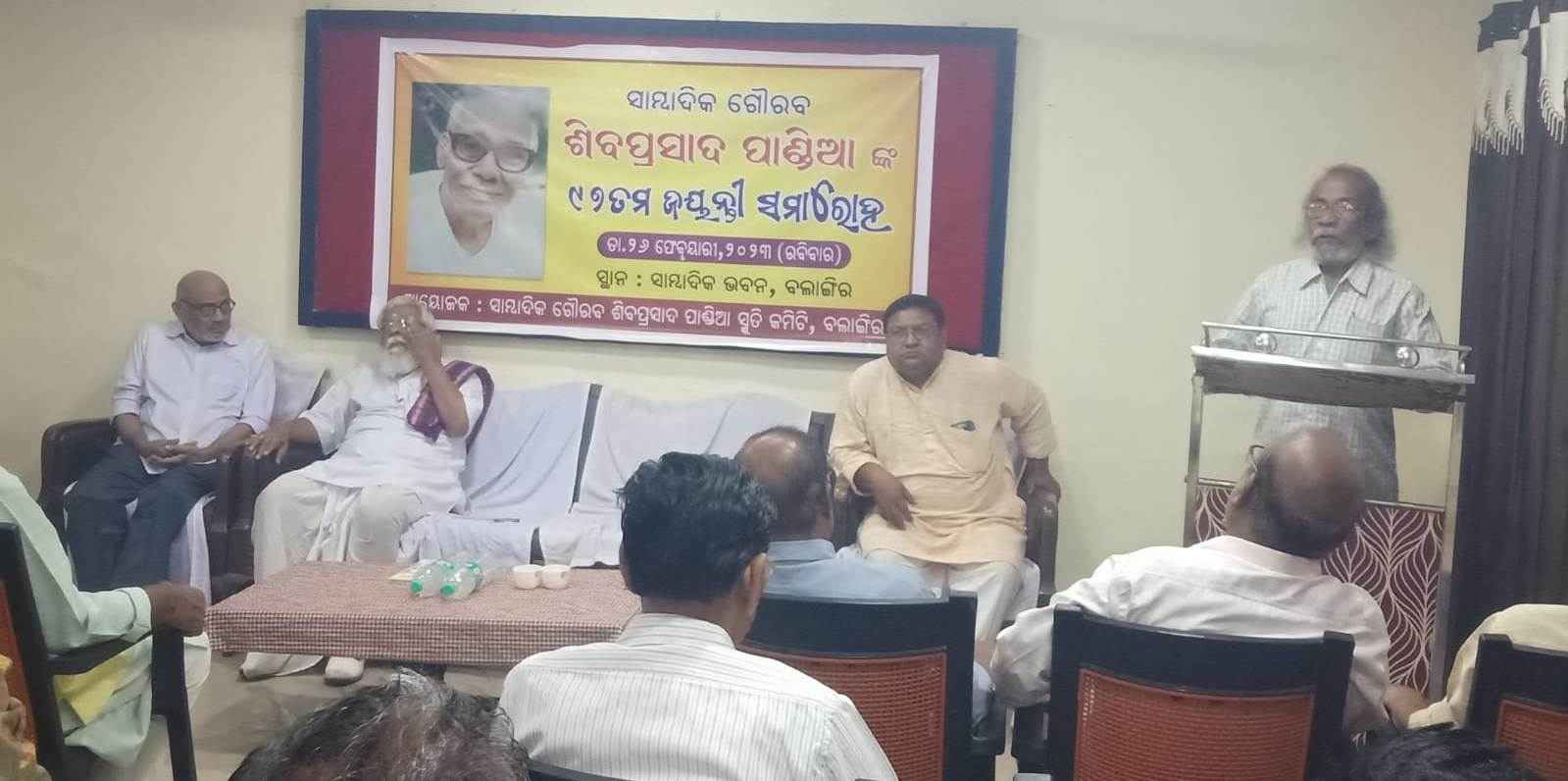 ବଲାଙ୍ଗୀର– ବିପ୍ଳବୀ କବି, ସୁଲେଖକ, ସର୍ବହରାର ସାଥୀ ସାମ୍ବାଦିକ ଗୌରବ ଶିବପ୍ରସାଦ ପାଣ୍ଡିଆଙ୍କ ୯୭ ତମ ଜୟନ୍ତୀ ସମାରୋହ ସ୍ଥାନୀୟ ସାମ୍ବାଦିକ ଭବନ ଠାରେ ରବିବାର ଅନୁଷ୍ଠିତ ହୋଇଥିଲା । ଅଧ୍ୟାପକ ସନ୍ଦୀପ କୁମାର କୁଅଁରଙ୍କ ଅଧ୍ୟକ୍ଷତାରେ ଅନୁଷ୍ଠିତ ସଭାରେ ସମ୍ମାନିତ ଅତିଥି ଭାବେ ଶିକ୍ଷାବିତ୍ ନାଟ୍ୟଭୂଷଣ ଜଗଦାନନ୍ଦ ଛୁରିଆ ଓ ସଂସ୍କୃତି ଗବେଷଣ ଡ. ଘାସିରାମ ମିଶ୍ର ସ୍ୱର୍ଗତ ପାଣ୍ଡିଆଙ୍କ ଫଟୋଚିତ୍ରରେ ପୁଷ୍ପମାଲ୍ୟ ଅର୍ପଣ କରି କାର୍ଯ୍ୟକ୍ରମ ଶୁଭାରମ୍ଭ କରିଥିଲେ । ଅତିଥି ନାଟ୍ୟଭୂଷଣ ଛୁରିଆ ସ୍ୱର୍ଗତ ପାଣ୍ଡିଆଙ୍କ ସଂଘର୍ଷମୟ ଜୀବନର ବିଭିନ୍ନ ଦିଗ ଉପରେ ଆଲୋଚନା କରିଥିଲେ । ଜଣେ ଆଦର୍ଶ ଶିକ୍ଷକ, ସଫଳ ଜୀବନବୀମା ଅଭିକର୍ତ୍ତା, ଜ୍ୟୋତିଷ ବିଶାରଦ, ପାଟଣାଗଡ ଗ୍ରାମପଞ୍ଚାୟତର ପ୍ରଥମ ସରପଞ୍ଚ, ଏନ୍ଏସିର ପ୍ରଥମ ଚେୟାରମେନ୍, ଜଣେ ନିର୍ଭୀକ ସାମ୍ବାଦିକ ଏବଂ ସମ୍ପାଦକ ଭାବେ ସ୍ୱର୍ଗତ ପାଣ୍ଡିଆ କିଭଳି ଜନମାନସରେ ଛାପ ଛାଡିଥିଲେ ବର୍ଣ୍ଣନା କରିଥିଲେ । ଜରିବେଟୁ, ସର୍ବହରା ଏବଂ ସମାଜର ସବାତଳ ବର୍ଗ ମଣିଷ ଶୁକୁରୁ ଡୁଗୁରୁଙ୍କ ନ୍ୟାୟ ଏବଂ ଅଧିକାରର ଲଢ଼େଇକୁ ନେଇ ତାଙ୍କ ସଂଘର୍ଷ ବିଷୟରେ କହିଥିଲେ ।