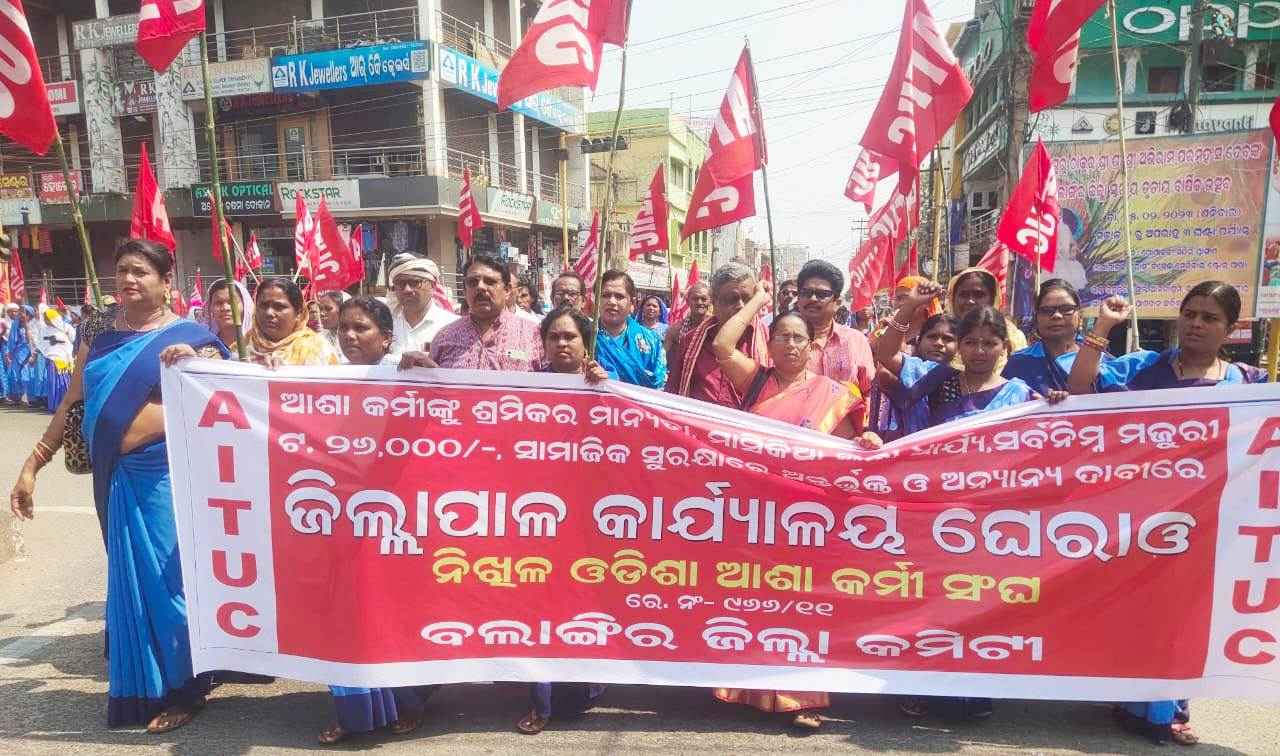ବଲାଙ୍ଗୀର-୨୭/୨- ନିଖିଳ ଓଡିଶା ଆଶା କର୍ମୀ ସଂଘ ବଲାଙ୍ଗିର ଜିଲ୍ଲା ତରଫରୁ ୧୨ ଦଫା ସମ୍ବଳିତ ଦାବି ନେଇ ଜିଲ୍ଲାର ବିଭିନ୍ନ ପ୍ରାନ୍ତରୁ ଆସିଥିବା ହଜାର ହଜାର ଆଶାକର୍ମୀ ଗାନ୍ଧିନଗରପଡା ଛକଠାରୁ ବିଶାଳ ଶୋଭାଯାତ୍ରାରେ ବାହାରି ସହର ପରିକ୍ରମା କଲା ପରେ ଜିଲ୍ଲାପାଳଙ୍କ କାର୍ୟ୍ୟାଳୟ ସମ୍ମୁଖରେ ବିକ୍ଷୋଭ ଅନୁଷ୍ଠିତ ହୋଇଥିଲା । ବିକ୍ଷୋଭ ସ୍ଥଳରେ ଜିଲ୍ଲା ସଭାପତି ତୀର୍ଥ ପଧାନଙ୍କ ସଭାପତିତ୍ୱ ସଭାରେ ଏଆଇଟିୟୁସି ରାଜ୍ୟ ସାଧାରଣ ସଂପାଦକ ତଥା ସଂଘର ରାଜ୍ୟ ସଭାପତି ବିଜୟ ଜେନା ସଂଘର ସାଧାରଣ ସଂପାଦିକା ନମିତା ସାହୁ, ଏଆଇଟିୟୁସି ଜିଲ୍ଲା ସଭାପତି ବିଭୁଦତ୍ତ ମିଶ୍ର ପ୍ରମୁଖ ବକ୍ତବ୍ୟ ଦେଇ ଆଶାକର୍ମୀଙ୍କ ୧୨ ଦଫା ଦାବି ପୁରଣ କରିବା ପାଇଁ ଆହ୍ୱାନ ଦେବା ସହ ଆଗାମୀ ମାର୍ଚ୍ଚ ୧୫ ତାରିଖରୁ ବିଧାନସଭା ସମ୍ମୁଖରେ ଅନିର୍ଦ୍ଦିଷ୍ଟକାଳ ଧାରଣା ଏବଂ ୨୮ ମାର୍ଚ୍ଚ ପାର୍ଲିଆମେଣ୍ଟ ଘେରାଓ ସଫଳ କରିବା ସହ ବହୁ ସଂଖ୍ୟାରେ ଆଶାକର୍ମୀ ଅଂଶଗ୍ରହଣ କରିବାକୁ ଆହ୍ୱାନ ଦେଇଥିଲେ । ଆଶାକର୍ମୀଙ୍କ ବିଭିନ୍ନ ଦାବି ଯଥା ମାସିକ ସୁନିଶ୍ଚିତ ଭତ୍ତା ପରିବର୍ତ୍ତେ ମାସିକ ଭତ୍ତା ଧାର୍ୟ୍ୟ, ସର୍ବ ନିମ୍ନ ମାସିକ ଭତ୍ତା ୨୬ହଜାର ଟଙ୍କା ପ୍ରଦାନ, ଜାତୀୟ ଶ୍ରମ ସମ୍ମିଳନୀ ନିଷ୍ପତ୍ତି ଅନୁସାରେ ୱାର୍କର ମାନ୍ୟତା, ଅବ୍ୟାହୁତି ସମୟସୀମା ୬୨ ବର୍ଷରୁ ୬୫ ବର୍ଷକୁ ବୃଦ୍ଧି, ଗ୍ରାମାଞ୍ଚଳର ଜନନୀ ସୁରକ୍ଷା ଓ ଅନ୍ୟାନ୍ୟ ଦେୟ ପ୍ରଦାନ ପରି ସହରାଞ୍ଚଳ ଆଶାକର୍ମୀଙ୍କୁ ପ୍ରଦାନ ସମେତ ୧୨ ଦଫା ସମ୍ମଳିତ ଦାବିପତ୍ର ଜିଲ୍ଲାପାଳଙ୍କ ଜରିଆରେ ମୁଖ୍ୟମନ୍ତ୍ରୀଙ୍କୁ ପ୍ରଦାନ କରାଯାଇଥିଲା । ଏହି ଧାରଣରେ ଜିଲ୍ଲା ସଂପାଦିକା ଓମୀ ଗୁପ୍ତା, ଜିଲ୍ଲା ନେତ୍ରୀ ସରସ୍ୱତୀ ଶର୍ମା, ଆନନ୍ଦିନୀ ବିଶ୍ୱାଲ, ମମତା କଚ୍ଛପ, ଯଶୋବନ୍ତୀ ବେହେରା, ବୃନ୍ଦାବତୀ ସରାଫ, ମାଧବି ବେହେରା, ମମତା ବାଗ, ପୁଷ୍ପା ଦୀପ, ସଂଜୁ ବାଗ, ପ୍ରଭାସିନୀ ରାୟ, ତୁଳସୀ ପ୍ରଧାନ, ପ୍ରେମଲତା ରଣା, ଅନୁପମା ସାଏ, ଯଶୋବନ୍ତୀ ମେହେର, ମନ୍ଦନା ନାଏକ, ପ୍ରେମ ମଞ୍ଜରୀ ମହାନନ୍ଦ, ଅହଲ୍ୟା ନାଗ, ତରୁଣି ନାଗ, ଉଜୁଲି ମେହେର, ସିରିପ୍ରିୟା କୁମ୍ଭାର, କଲ୍ୟାଣି ସାହୁ, ମଳୟ ବିଶ୍ୱାଲ, ସରସ୍ୱତୀ ସାହୁ, ସୁମତି ପଟେଲ, ସୁଶାନ୍ତି ବଗର୍ତ୍ତି, ଅଞ୍ଜଳି କୁମ୍ଭାର, ଚିନ୍ମୟୀ ଦାସ, ଜୁଲି କେନଡ, ପୂର୍ଣ୍ଣମାସୀ ବଗର୍ତ୍ତି, ସୌଦାମିନୀ ବଗତର୍ତି, ସରିତା ମାହାର, ମାଲତି ମଲ୍ଲିକ, ବାସମତୀ ବାଗ, ତପିସା ନାଗ, ଉର୍ବସୀ ମେହେର, ସନ୍ତୋଷିନି ନାଗ, ସନ୍ତୋଷିନୀ ଦୀପ, ଭୁମିସୁତା ବେହେରା, ନଳିନୀ ସାହୁ, ସତ୍ୟଭାମା ହଂସ, ଭାନୁମତି ଧରୁଆ, ସଂଯୁକ୍ତା ରାଏ, ମଥୁରା କାଲସାଏ, ସୁରଦିନୀ ପଧାନ, ମାଳତି ମଲ୍ଲିକ, ଉର୍ବସୀ ସାହୁ, ଧୁର୍ୟ୍ୟୋଧନ ବିଶ୍ୱାଲ, ସାଏବୁ ନନ୍ଦ, ଆଲୋକ ବିଶ୍ୱାଲ, ପଞ୍ଚାନନ ସାହୁ, ଦେବାଶିଷ ବାବୁ, ଜ୍ୟୋସ୍ନାମୟୀ ଷଡଙ୍ଗି ପ୍ରମୁଖ ବକ୍ତବ୍ୟ ଦେଇ ଆଗାମୀ ଆନ୍ଦୋଳନକୁ ସଫଳ କରିବା ପାଇଁ ଆହ୍ୱାନ ଦେଇଥିଲେ ।