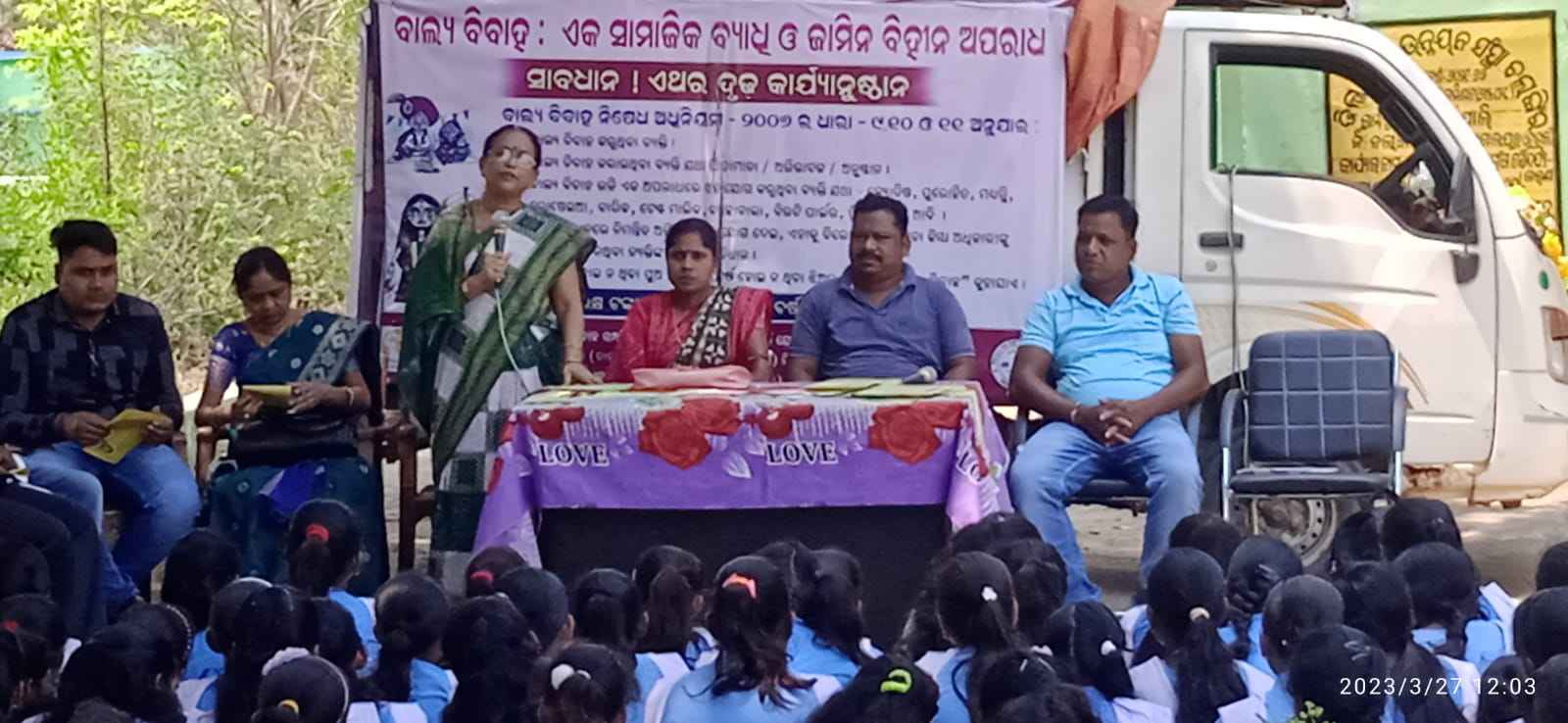 ଆଗଲପୁର, (ବିନୋଦ କୁମାର ଦୀପ) ଏଭଳି ଏକ ସୁନ୍ଦର ପ୍ରୟାସ ଦେଖିବାକୁ ମିଳିଛି ଆଗଲପୁର ବ୍ଲକ ଅନ୍ତର୍ଗତ ନୁନିଆପାଲି ପଞ୍ଚାୟତରେ l ପ୍ରଥମେ ସଚେତନତା ରଥ କୁ ଭବ୍ୟ ସ୍ବାଗତ ସମ୍ବର୍ଦ୍ଧନା ଦିଆ ଯାଇଥିଲା ଓ ପରେ ପରେ ଏକ ସଚେତନତା ସଭା କରା ଯାଇଥିଲା l ଏହି ସଭାରେ ମୁଖ୍ୟ ଅତିଥି ଭାବରେ ଗୋଷ୍ଠୀ ଶିଶୁ ବିକାଶ ପ୍ରକଳ୍ପ ଅଧିକାରୀ ଜ୍ୟୋତିର୍ମୟୀ ନାଏକ ଯୋଗ ଦେଇଥିବା ବେଳେ ସମ୍ମାନିତ ଅତିଥି ଭାବରେ ନୁନିଆପାଲି ସରପଞ୍ଚ ଶ୍ରୀମତୀ ପୁଷ୍ପାଞ୍ଜଳି ସାହୁ ଓ ନୁନିଆ ପାଲି ଉଚ୍ଚ ବିଦ୍ୟାଳୟ ର ପ୍ରଧାନ ଶିକ୍ଷକ ଶ୍ରୀ ଅମୂଲ୍ୟ କୁମାର୍ ବେହେରା l ଏହାସହ ପଲ୍ଲୀ ଆଲୋକ ପାଠାଗାର ନଅଗାଁ (ଖ) ର ଶ୍ରୀ ପ୍ରହଲ୍ଲାଦ ପାଧାନ୍ ଉପସ୍ଥିତ ଥିଲେ।ବାଲ୍ୟ ବିବାହ ଭଳି ଏକ କୁପ୍ରଥା କୁ କେମିତି ରୋକାଯାଇ ପାରିବ ସେ ଉପରେ ଆଲୋଚନା କରିଥିଲେ l ଏହାପରେ ଛାତ୍ରଛାତ୍ରୀଙ୍କ ଦ୍ୱାରା ସାଂସ୍କୃତିକ କାର୍ଯକ୍ରମ ମାଧ୍ୟମରେ ସଚେତନ କରା ଯାଇଥିଲା l ଏହି ସଚେତନତା ଅଭିଯାନ ରେ ଗ୍ରାମବାସୀ, ଅଙ୍ଗନୱାଡ଼ି କର୍ମୀ ଓ ସ୍କୁଲ୍ ଛାତ୍ରଛାତ୍ରୀ ଯୋଗ ଦେଇଥିଲେ l ପରେ ପରେ ଅଙ୍ଗନୱାଡି କର୍ମୀ ମାନେ ପ୍ଲା କାର୍ଡ ଧରି ସ୍ଲୋଗାନ ଦେଇ ଗ୍ରାମ ପରିଭ୍ରମଣ କରିଥିଲେ l ସମସ୍ତେ ମିଶି ଏହି ବାଲ୍ୟ ବିବାହ ପ୍ରଥା କୁ ସମାଜରୁ ଦୂରେଇ ପାରିବା ବୋଲି ଅତିଥି ମାନେ ପ୍ରକାଶ କରିଥିଲେ l ଉକ୍ତ କାର୍ଯ୍ୟକ୍ରମଟି ପଲ୍ଲୀ ଆଲୋକ ପାଠାଗାର ଙ୍କ ଆନୁକୁଲ୍ୟରେ ଆୟୋଜନ କରା ଯାଇଥଲା l