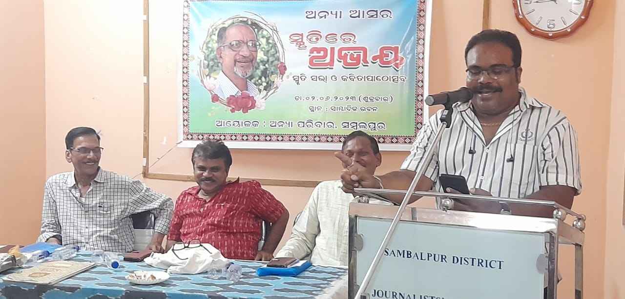ସ୍ଥାନୀୟ ସାମ୍ବାଦିକ ଭବନଠାରେ ଅନ୍ୟା ସାହିତ୍ୟାନୁଷ୍ଠାନ ପକ୍ଷରୁ ସାହିତ୍ୟିକ ଅଭୟ କୁମାର ପାଢୀଙ୍କ ସ୍ମୃତିରେ ‘ସ୍ମୃତିରେ ଅଭୟ’ କାର୍ଯ୍ୟକ୍ରମ ଆୟୋଜିତ ହୋଇଯାଇଛି। କବି ଡ. ପ୍ରଦୀପ କୁମାର ପଣ୍ଡାଙ୍କ ଅଧ୍ଯକ୍ଷତାରେ ଆୟୋଜିତ ହୋଇଥିବା ଏହି ସଭାରେ ଆଲୋଚକ ଭାବରେ ଯୋଗଦେଇ କବି ସରୋଜ ଅଭୟ କୁମାର ପାଢୀଙ୍କ କାବ୍ୟ ସୃଷ୍ଟି ଉପରେ ଆଲୋଚନା କରି କହିଥିଲେ ଯେ,ସ୍ୱର୍ଗୀୟ ଅଭୟ ପାଢୀଙ୍କ କବିତାରେ ଦର୍ଶନ ସହ ଜୀବନର ରହସ୍ୟ ଓ ମଣିଷ ହେଜୁଥିବା ଅନେକ ପ୍ରଶ୍ନର ଅନ୍ୱେଷା ରହିଛି। ରାଜକୀୟ ଠାଣି ସତ୍ତ୍ୱେ ଏକ କବିର କୋମଳ ମନ ନଈ ଭଳି ତାଙ୍କ ଭିତରେ ବହୁଥିଲା। ଆଭିଜାତ୍ୟ ଓ ମଧ୍ୟବିତ୍ତ ବର୍ଗର ଜୀବନରେ ଥିବା ଦ୍ୱନ୍ଦ୍ୱ,ସଂଘାତ ଓ ବିଡମ୍ବନାକୁ ସେ ତାଙ୍କ କବିତାରେ ରୂପ ଦେଇଥିବା ଦର୍ଶାଇ କବି ସରୋଜ ସ୍ୱର୍ଗତ ପାଢୀଙ୍କ ଏକ ବକ୍ତବ୍ୟ ଉଦ୍ଧାର କରି କହିଥିଲେ ଯେ,ସତ୍ୟକୁ ଶବ୍ଦରେ କହିହୁଏ ନାହିଁ ତାହା ଏକ ଅନୁଭବର ବିଷୟ। ଏହି ଅବସରରେ ଆୟୋଜିତ ଡ. ଗୌରିଦାସ ପ୍ରଧାନଙ୍କ ସଂଯୋଜନାରେ ଏକ କବିତା ଆସରରେ ରୀତାରାଣୀ ମିଶ୍ର,ପ୍ର. ମୀନକେତନ ପାଠୀ,ଡ. ଗିରିଜା ଶଙ୍କର ଶର୍ମା,ଡ. ସତ୍ୟନାରାୟଣ ଠାକୁର,ମମତା ନାଥ,ଲଲିତ ମୋହନ ବେବର୍ତ୍ତା,ବବଲୁ ବାଗ,ଦେବାର୍ଚ୍ଚନ ଠାକୁର,କମଳ ଲୋଚନ ପଣ୍ଡା ପ୍ରମୁଖ କବିତା ପାଠ କରିଥିଲେ।ଡ.ଶ୍ୟାମ ସୁନ୍ଦର ଧର,ଡ. ଦ୍ୱାରିକାନାଥ ନାୟକ ଗୀତ ଗାନ କରିଥିଲେ।ଦୀପକ ପଣ୍ଡା,କ୍ଷେତ୍ରମଣି ବିଭାର,ତଫିଜୁଲ୍ ହୋସେନ ପ୍ରମୁଖ ସାହିତ୍ଯ ପ୍ରେମିଗଣ ସଭାରେ ଉପସ୍ଥିତ ଥିଲେ। ବୃନ୍ଦାବନ ମିଶ୍ର,ଡ. ଗୋବିନ୍ଦ ମହାରଣା, ରମେଶ ଚନ୍ଦ୍ର ମିର୍ଦ୍ଧା କାର୍ଯ୍ୟକ୍ରମରେ ସହଯୋଗ କରିଥିଲେ। ପ୍ରକାଶ ଥାଉକି ସଭା ପୂର୍ବରୁ ନିକଟ ଅତୀତରେ ସ୍ୱର୍ଗ ଲାଭ କରିଥିବା ସାହିତ୍ୟିକ ଧରଣୀଧର ପ୍ରଧାନଙ୍କ ଆତ୍ମାର ସଦ୍ଗତି କାମନା କରି ନିରବ ପ୍ରାର୍ଥନା କରାଯାଇଥିଲା। ଶେଷରେ ଡ. ସିଦ୍ଧାର୍ଥ ପଣ୍ଡା ଧନ୍ୟବାଦ ଅର୍ପଣ କରିଥିଲେ।