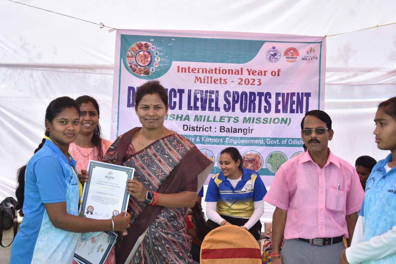 ଓଡ଼ିଶା ମିଲେଟ୍ ମିଶନ୍ ତଥା ଜିଲ୍ଲା କ୍ରୀଡ଼ା ବିଭାଗର ମିଳିତ ଆନୁକୁଲ୍ୟରେ ଆନ୍ତର୍ଜାତିକ ମିଲେଟ୍ ବର୍ଷ ୨୦୨୩ ଏଵଂ ବିଶ୍ଵ ପରିବେଶ ଦିବସ ପାଳନ ଅବସରରେ ସ୍ଥାନୀୟ ଆର୍. ଏନ. ସିଂହଦେଓ ସ୍ପୋର୍ଟସ କମ୍ପ୍ଲେକ୍ସ ଠାରେ ଏକ ଲନ୍ ବଲ୍ ପ୍ରତିଯୋଗିତା ଅନୁଷ୍ଠିତ ହୋଇଥିଲା । ଏଥିରେ ଉଭୟ ପୁରୁଷ ଓ ମହିଳା ବିଭାଗ ରୁ ସର୍ବମୋଟ୍ ୬୭ ଜଣ ପିଲା ଅଂଶଗ୍ରହଣ କରିଥିଲେ। ଏହି ଅବସରରେ ଜିଲ୍ଲା ପରିଷଦ ଅଧ୍ୟକ୍ଷା ଦେବକୀ ସାହୁ ,ମୁଖ୍ୟ ଅତିଥି ଏବଂ ଜିଲ୍ଲା ମୁଖ୍ୟ କୃଷି ଅଧିକାରୀ ସୁବାଷ ଚନ୍ଦ୍ର ବେହେରା ସମ୍ମାନିତ ଅତିଥି ଭାବରେ ଯୋଗ ଦେଇ କୃତୀ ଖେଳାଳି ମାନଙ୍କୁ ପୁରସ୍କୃତ କରିଥିଲେ। ଓଡ଼ିଶା ମିଲେଟ୍ ମିଶନ୍ ର ପ୍ରକଳ୍ପ ଅଧିକାରୀ ସୁନନ୍ଦା ସାହୁ ଯୋଗ ଦେଇ ମାଣ୍ଡିଆ ଜାତୀୟ ଖାଦ୍ୟ ସ୍ୱାସ୍ଥ୍ୟକର ଓ ପୁଷ୍ଟିକର ହୋଇ ଥିବାରୁ ଖେଳାଳିଙ୍କ ସମେତ ସମସ୍ତଙ୍କ ପାଇଁ ଏହା ବେଶ୍ ଉପଯୋଗୀ ହୋଇପାରିବ ବୋଲି ମତବ୍ୟକ୍ତ କରିଥିଲେ । ଜିଲ୍ଲା କ୍ରୀଡ଼ା ଅଧିକାରୀ ପରାଶର ବାଗ ଯୋଗ ଦେଇ ପ୍ରତିଯୋଗୀ ମାନଙ୍କୁ ଉତ୍ସାହିତ କରିଥିଲେ। ଲନ୍ ବଲ୍ ସଂଘ ସମ୍ପାଦକ ସୁମିତ ରଞ୍ଜନ ପୁରୋହିତ ଖେଳର ଉପାଦେୟତା ବିଷୟରେ ସୂଚନା ଦେବା ସହ ଭବିଷ୍ୟତ ରେ ବଲାଙ୍ଗିର ଜିଲ୍ଲା ଆହୁରି କେମିତି ସୁନାମ ଅର୍ଜନ କରିବ, ସେ ବିଷୟରେ ମତ ପ୍ରକାଶ କରିଥିଲେ । ଏଥିରେ ମିଲେଟ୍ ମିଶନ୍ ର ଜିଲ୍ଲା ସଂଯୋଜକ ଯଶୋବନ୍ତ ନାଏକ ଉପସ୍ଥିତ ରହି କାର୍ଯ୍ୟକ୍ରମ ର ସୁପରିଚାଳନା କରିଥିଲେ। ସ୍ଥାନୀୟ କଲେଜଛକ ସ୍ଥିତ ଆମର୍ ମିଲେଟ୍ ର ତ୍ରିରଙ୍ଗା ସ୍ଵୟଂ ସହାୟକ ଗୋଷ୍ଠୀ ର ସହାୟତାରେ ପ୍ରତିଯୋଗୀ ମାନଙ୍କୁ ମିଲେଟ୍ ଟିଫିନ୍ ବଣ୍ଟନ କରାଯାଇଥିଲା । ଅନ୍ୟ ମାନଙ୍କ ମଧ୍ୟରେ ବରିଷ୍ଠ କୋଚ୍ ବୁଦ୍ଧିରାଜ ବିଶ୍ଵାଳ, ପୁରନ୍ଦର ସେଠ୍, ସତ୍ୟନାରାୟଣ ପଟେଲ୍, ସୁଦର୍ଶନ ସେଠ୍, କ୍ଷିତେଶ୍ୱର ବିଶ୍ଵାଳ ଯୋଗଦେଇ ଖେଳ ପରିଚାଳନା ରେ ସହଯୋଗ କରିଥିଲେ । ଅତିରିକ୍ତ ଜିଲ୍ଲା ସଂଯୋଜକ ସମିଧା ଅଗ୍ରୱାଲ କାର୍ଯ୍ୟକ୍ରମ ପରିଚାଳନା କରିଥିଲେ। ଆଜିର ଏହି ପ୍ରତିଯୋଗିତାରେ ଲନ୍ ବଲ୍ ଖେଳ ପ୍ରତି ପ୍ରତିଯୋଗୀ ମାନଙ୍କ ମଧ୍ୟରେ ବେଶ ଉତ୍ସାହ ପରିଲକ୍ଷିତ ହୋଇଥିଲା ।