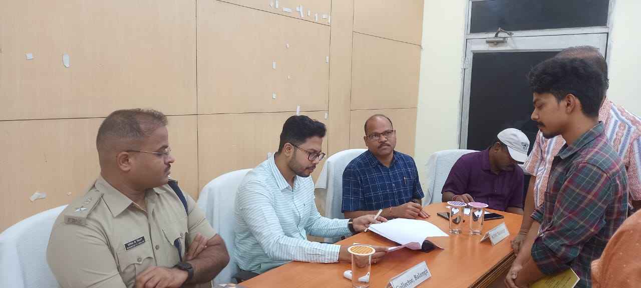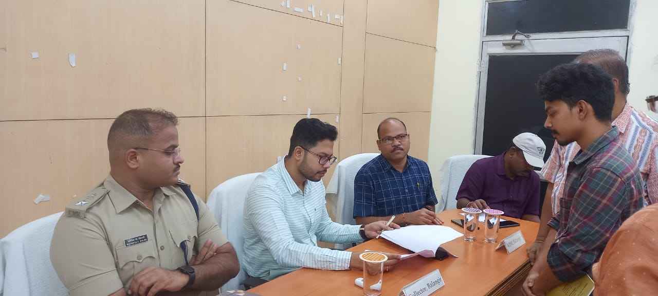 ବଲାଙ୍ଗିର(ପ୍ରେରଣା ଖବର ): ଜୁନ ମାସ ପାଇଁ ଜିଲ୍ଲାପାଳ ଓ ଆରକ୍ଷୀ ଅଧିକ୍ଷକଙ୍କ ଯୁଗ୍ମ ଜନ-ଅଭିଯୋଗ ଶୁଣାଣୀ କାର୍ଯକ୍ରମ ଅନୁସାରେ ଆଜି ବଲାଙ୍ଗିର ଜିଲ୍ଲା ମୁଖ୍ୟାଳୟ ସ୍ଥିତ ଜିଲ୍ଲାପାଳ ଙ୍କ କାର୍ଯ୍ୟ।ଳୟ ସମ୍ମିଳନୀ କକ୍ଷ ଠାରେ ଯୁଗ୍ମ ଜନ-ଅଭିଯୋଗ ଶୁଣାଣୀ କାର୍ଯକ୍ରମ ଅନୁଷ୍ଠିତ ହୋଇଯାଇଛି । ଏହି ଯୁଗ୍ମ ଜନ-ଅଭିଯୋଗ ଶୁଣାଣୀ କାର୍ଯକ୍ରମରେ ଜିଲ୍ଲାପାଳ ଚଞ୍ଚଳ ରାଣା , ଆରକ୍ଷୀ ଅଧିକ୍ଷକ ଖିଲାରୀ ରିଷିକେଶ ଦ୍ୟାନଦେଓ ,ଅତିରିକ୍ତ ଜିଲ୍ଲାପାଳ ଲମ୍ବୋଦର ଧରୁଆ , ଜିଲ୍ଲା ପରିଷଦ ର ମୁଖ୍ୟ