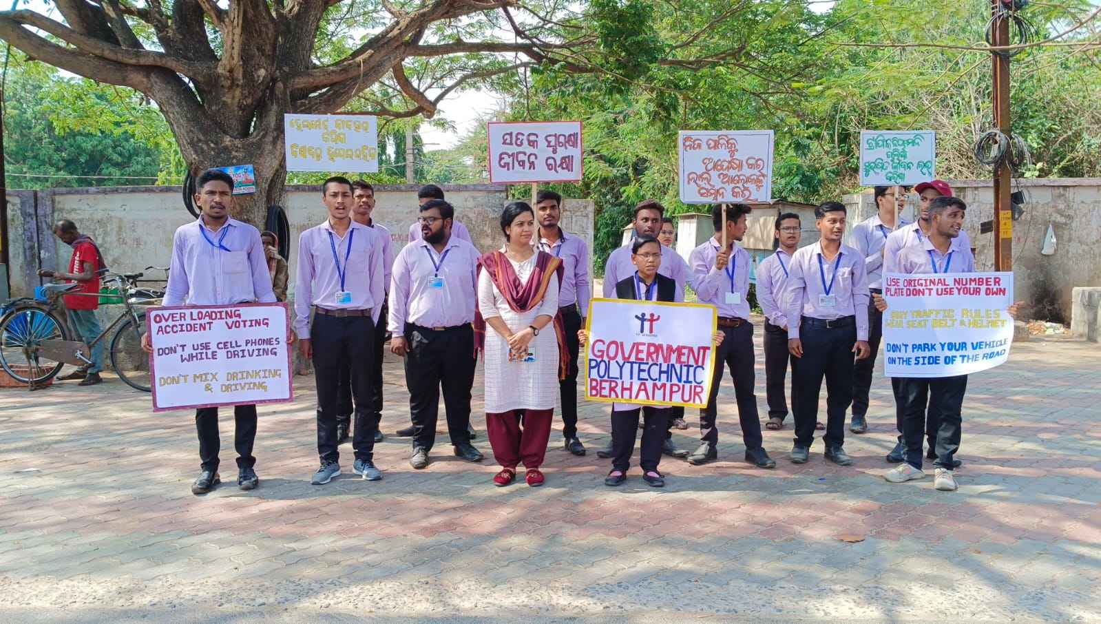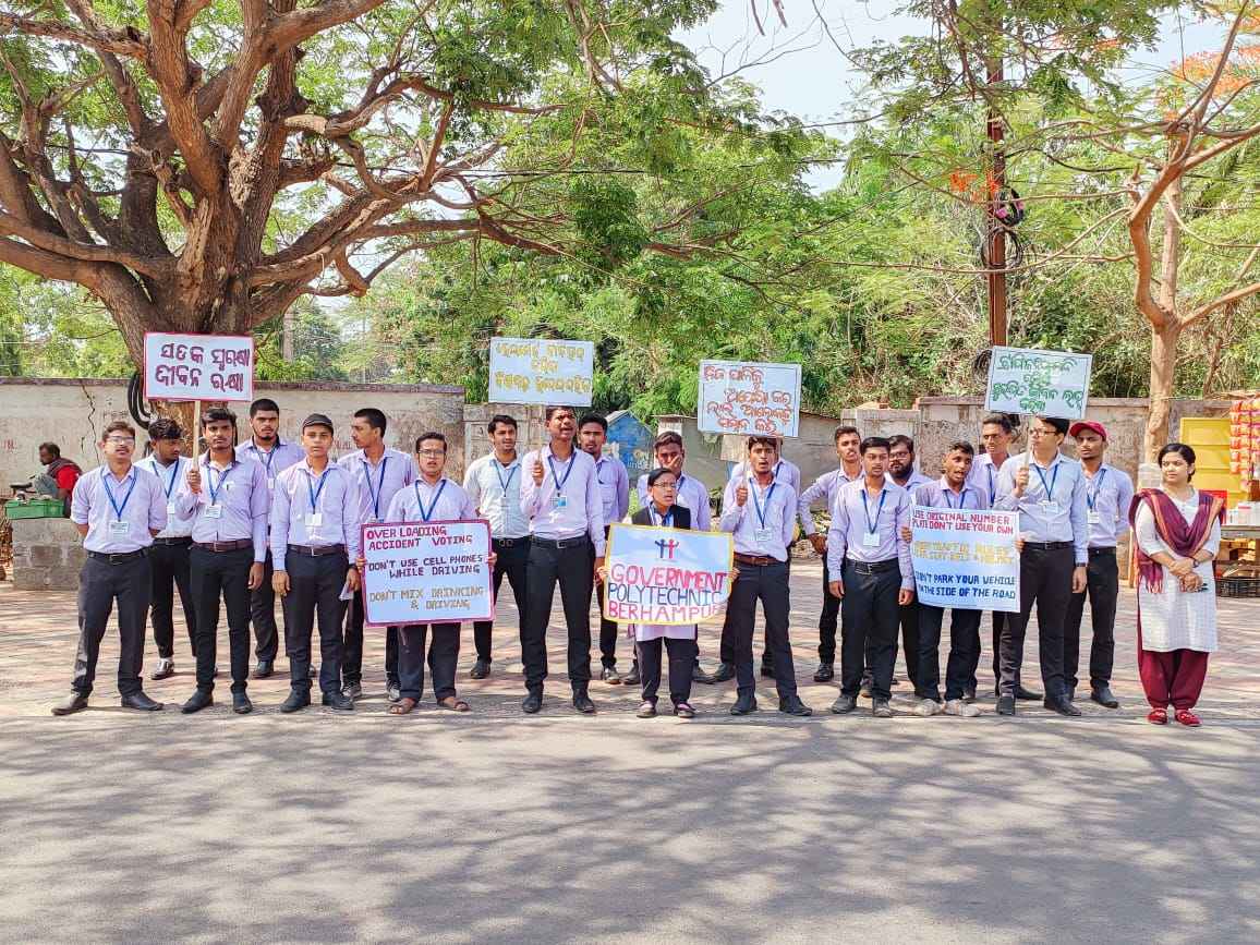 ବ୍ରହ୍ମପୁର(ଝିଲ୍ଲି କୁମାରୀ ସାହୁ): ସ୍ଥାନୀୟ ଇଞ୍ଜିନିୟରିଂ ସ୍କୁଲ ଛକଠାରେ ବ୍ରହ୍ମପୁର ସରକାରୀ ପଲିଟେକନିକ୍ ଅନୁଷ୍ଠାନ ପକ୍ଷରୁ ଟ୍ରାଫିକ ନିୟମ ଉପରେ ସଚେତନା କାର୍ଯ୍ୟକ୍ରମ ଆୟୋଜିତ ହୋଇଯାଇଛି। ଅଧ୍ୟକ୍ଷ ଇଂ. ନିଶାକର ମଲ୍ଲିକଙ୍କ ପ୍ରତ୍ୟକ୍ଷ ତତ୍ତ୍ଵାବଧାନରେ ଅନୁଷ୍ଠାନର ଶେଷ ବର୍ଷର ମେକାନିକାଲ ବିଭାଗ ଏବଂ ହୋଟେଲ ମ୍ୟାନେଜମେଣ୍ଟ ଓ କ୍ୟାଟରିଂ ଟେକ୍ନୋଲୋଜି ବିଭାଗର ବିଦ୍ୟାର୍ଥୀମାନେ ଟ୍ରାଫିକ ନିୟମ ପାଳନ ଉପରେ ବିଭିନ୍ନ ସ୍ଲୋଗାନମାନ ଦେଇ ପ୍ଲାକାର୍ଡ ପ୍ରଦର୍ଶନ କରି ଲୋକଙ୍କୁ ସଚେତନ କରିଥିଲେ। ଏହାର ମୂଳ ଉଦ୍ଦେଶ୍ୟ ବିଦ୍ୟାର୍ଥୀମାନଙ୍କ ମଧ୍ୟରେ ଦେଶ ଓ ସମାଜପ୍ରତି ଥିବା ସାମାଜିକ ଦାୟିତ୍ଵବୋଧ ଜାଗ୍ରତ କରାଇବା ସହ ଦଳଗତ କାର୍ଯ୍ୟ କରିବାକୁ ନେଇ ଶିକ୍ଷା ଓ ପ୍ରୋତ୍ସାହନ ଦେବା । ଏହା ଡିପ୍ଲୋମା ପାଠ୍ୟକ୍ରମର ଶେଷ ବର୍ଷରେ ଲାଇଫ ସ୍କିଲ୍ ବିଷୟ