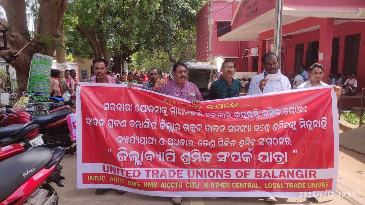 ପାଟଣାଗଡ(ଦିଲୀପ ପଣ୍ଡା): କେନ୍ଦ୍ରିୟ ଶ୍ରମିକ ସଂଗଠନ ମିଲିତ ମଞ୍ଚ ତରଫରୁ ପାଟଣାଗଡ଼ ଠାରେ ଶ୍ରମିକ ସଂଗଠନର ଏକ ସମାବେଶ ଆୟୋଜିତ ହୋଇଛି । ପ୍ରଥମେ ବଲାଙ୍ଗୀର ଜିଲ୍ଲା ଶ୍ରମିକ ସଂଗଠନ ସଭାପତି କୃଷ୍ଣଚନ୍ଦ୍ର ସାହୁ ଙ୍କ ନେତୃତ୍ବରେ ଏକ ଶୋଭାଯାତ୍ରାରେ ପଞ୍ଚମୁଖୀ ହନୁମାନ ମନ୍ଦିର ଠାରୁ ବାହାରି ସହରର ମୁଖ୍ୟ ରାସ୍ତାଦେଇ ଉପଜିଲ୍ଲାପାଳଙ୍କ କାର୍ଯ୍ୟାଳୟ ସମ୍ମୁଖରେ ପହଞ୍ଚିଥିଲା । ସେଠାରେ ଏକ ସଭା ଅନୁଷ୍ଠିତ ହୋବାପରେ ସଭାରେ ସଂଗଠନର କର୍ମକର୍ତ୍ତା ମାନେ ଶ୍ରମିକ ଶୋଷଣ ନିତି ଉପରେ ଆଲୋକପାତ କରିଥିଲେ । ପରେ ଏକ ୭ ଦଫା ସମ୍ବଳିତ ଦାବିପତ୍ର ମୁଖ୍ୟମନ୍ତ୍ରୀଙ୍କ ଉଦ୍ଦେଶ୍ୟରେ ଉପଜିଲ୍ଲାପାଳଙ୍କ ଜରିଆରେ ପ୍ରଦାନ କରିଥିଲେ । ଦାବି ଗୁଡ଼ିକ ମଧ୍ୟରେ ଜିଲ୍ଲାରେ ପଞ୍ଜିକୃତ ନିର୍ମାଣ ଶ୍ରମିକ ମାନଙ୍କୁ ଦକ୍ଷତା ବିକାଶ ନାରେ ବିଭିନ୍ନ ଘରୋଇ ସଂସ୍ଥା ମାନଙ୍କ ଦ୍ଵାରା ହଜାର ହଜାର ଶ୍ରମିକ ମାନଙ୍କୁ ଟ୍ରେନିଂ ନାରେ ପାରିଶ୍ରମିକ ଓ ନିରାପତ୍ତା ଉପକରଣ କିଣା ଟୁଲକିଟ ନାଆଁରେ ହୋଇଥିବା ଲୁଣ୍ଠନର ତଦନ୍ତ, ବାହ୍ୟ ରାଜ୍ୟକୁ ଦାଦନ ଶ୍ରମିକ ଭାବରେ ଖଟିବାକୁ ଯାଉଥିବା ଶ୍ରମିକ ମାନଙ୍କୁ ସିଧାସଳଖ ନିର୍ମାଣ ଶ୍ରମିକ କଲ୍ୟାଣ ବୋର୍ଡରେ ପଞ୍ଜିକରଣର ବ୍ୟବସ୍ଥା ପ୍ରଚଳିତ ଥିବାସ୍ଵତ୍ୟ ସଠିକ୍ କାର୍ଯ୍ୟକାରୀତାକୁନେଇ ସଦ୍ଧେହ ପ୍ରକାଶ ପାଇଛି । ଏହାର ଏକ ଉଚ୍ଚସ୍ତରୀୟ ତଦନ୍ତ,ସମଗ୍ର ଜିଲ୍ଲାରେ ବଡବଡ ମିଲରସ ଙ୍କ ମିଲ ମାନଙ୍କରେ ବର୍ଷବର୍ଷ ଧରି ନିୟୋଜିତ ଶ୍ରମିକ ମାନଙ୍କୁ ସରକାରୀ ଧାର୍ଯ୍ୟରେ ମୂଲ୍ୟ ପ୍ରଦାନ ସହ ତାଙ୍କ ନାଆଁରେ ଭବିଷ୍ୟନିଧି ଓ ଜିବନବିମା ସୁବିଧାରୁ ସେମାନଙ୍କୁ ବଞ୍ଚିତ ରଖାଜାଉଛି । ଏଥିପ୍ରତି ଦୃଷ୍ଟି ଦେବାସହ ସାମାଜିକ ସୁରକ୍ଷା ନିଶ୍ଚିତ ପାଇଁ ବ୍ୟବସ୍ଥା କରିବା, ନିର୍ମାଣଧିନ ଶ୍ରମିକ ମାନଙ୍କ ପଞ୍ଜିକରଣ ଓ ନବୀକରଣ ନାରେ କରାଜାଇଥିବା ଆବେଦନ ବର୍ଷବର୍ଷ ଧରି ପଡିରହିବା ,ଜାହା ଫଲରେ ପ୍ରକୃତ ହିତାଧିକାରୀ ଏହି ଯୋଜନାରୁ ବଞ୍ଚିତ ରହୁଛନ୍ତି । ଏହାର ପଙ୍ଖାନୁପୁଖ ତଦନ୍ତ କରିବା,ଅଣ ସଂଗଠିତ ଶ୍ରମିକ ମାନଙ୍କ ପଞ୍ଜିକରଣ ବ୍ୟବସ୍ଥା ତୁରନ୍ତ ଗ୍ରହଣ କରିବା,ଆଶା, ଅଙ୍ଗନବାଡି କର୍ମୀ ପାଚକ ପାଚିକା ଙ୍କ ଦରମା ବୃଦ୍ଧି ପ୍ରଶଙ୍ଗ ଓ ଶ୍ରମିକ ମାନ୍ୟତା ଦାବୀକୁ ସରକାରଙ୍କ ଅଣଦେଖା ଦୁର୍ଭାଗ୍ୟପୂର୍ଣ୍ଣ, ସରକାର ଶ୍ରମିକ ମାନଙ୍କୁ ରୋଜଗାର ତଥା ସ୍ଵାବଲମ୍ବି କରିବା ସହ ସରକାରୀ ଶ୍ରମିକ ଶୋଷଣ ଓ ମାରଣ ନିତି ବନ୍ଦ କରିବା ପ୍ରମୁଖ ଦାବି ଗୁଡ଼ିକ ରହିଛି । ଏହି କାର୍ଯ୍ୟକ୍ରମରେ ସଂଗଠନର ବିଭିନ୍ନ ପଦପଦବୀରେ ଥିବା କର୍ମକର୍ତ୍ତା, ଙ୍କ ସହ ସତାଥିକ ସଦସ୍ୟ ସଦସ୍ୟା ଉପସ୍ଥିତ ଥିଲେ । ପରେ ସନ୍ଧ୍ୟା ସମୟରେ ପାଟଣାଗଡ଼ର ଏକ ନିର୍ଦ୍ଦିଷ୍ଟ ହୋଟେଲରେ ସଂଘର ବିଭିନ୍ନ ପଦପଦବୀରେ ଥିବା କର୍ମକର୍ତ୍ତା ମାନେ ଏକ ସାମ୍ବାଦିକ ସମ୍ମିଳନୀ ଅନୁଷ୍ଠିତ ହୋଇଥିବା ଜଣାପଡିଛି ।