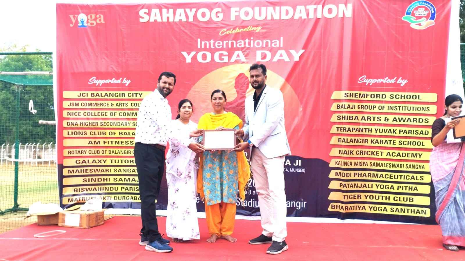 ସ୍ୱାମୀ ବିଜ୍ଞାନ ଚୈତନ୍ୟ ଜି ମହାରାଜ ଯୋଗ ଶିକ୍ଷା ଦେଇଥିଲେ | ଏହି ଯୋଗ କାର୍ଯ୍ୟକ୍ରମରେ ବଲାଙ୍ଗିର ସାଂସଦ ସଂଗୀତା କୁମାରୀ ସିଂହ ଦେଓ ଯୋଗ ଦେଇ ନିଜେ ମଧ୍ୟ ଯୋଗ କରିଥିଲେ | କାର୍ଯ୍ୟକ୍ରମରେ ବଲାଙ୍ଗିର ଜିଲ୍ଲାପାଳ ଚଞ୍ଚଳ ରାଣା ଏବଂ ଏସ. ପି ଋଷିକେଶ ଖିଲାରୀ ମଧ୍ୟ ସାମିଲ ହୋଇଥିଲେ | ଏଥିରେ ସହଯୋଗ ଫାଉଣ୍ଡେସନ ର ସଭ୍ଯ ସଭ୍ୟା , କର୍ମକର୍ତ୍ତା , ଡି ଏନ୍ ଏ ଇନଷ୍ଟିଚ୍ୟୁଟ ର ଛାତ୍ରଛାତ୍ରୀ, ନିର୍ଦ୍ଦେଶକ ବିନୀତ ଅଗ୍ରୱାଲ , ସି ଏ ସୁମିତ୍ ଅଗ୍ରୱାଲ ପ୍ରମୁଖ ବିଶେଷ ସହଯୋଗ କରିଥିଲେ l