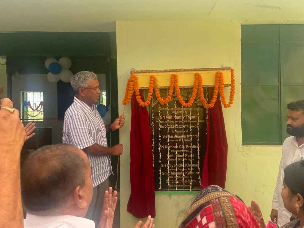 ଦେଓଗାଁ : ମାନ୍ୟବର ମୁଖ୍ୟମନ୍ତ୍ରୀଙ୍କ ପ୍ରମୁଖ ପରାମର୍ଶଦାତା ତଥା ଅଧ୍ୟକ୍ଷ, ପଶ୍ଚିମ ଓଡିଶା ବିକାଶ ପରିଷଦ ଙ୍କ ଦ୍ଵାରା ଦେଓଗାଁ ଠାରେ ୨ ହଜାର ଲିଟର କ୍ଷମତା ବିଶିଷ୍ଟ ଦୁଗ୍ଧ ଶିତଳୀକରଣ ପ୍ଳାଣ୍ଟ ର ଶୁଭ ଉଦଘାଟନ ।