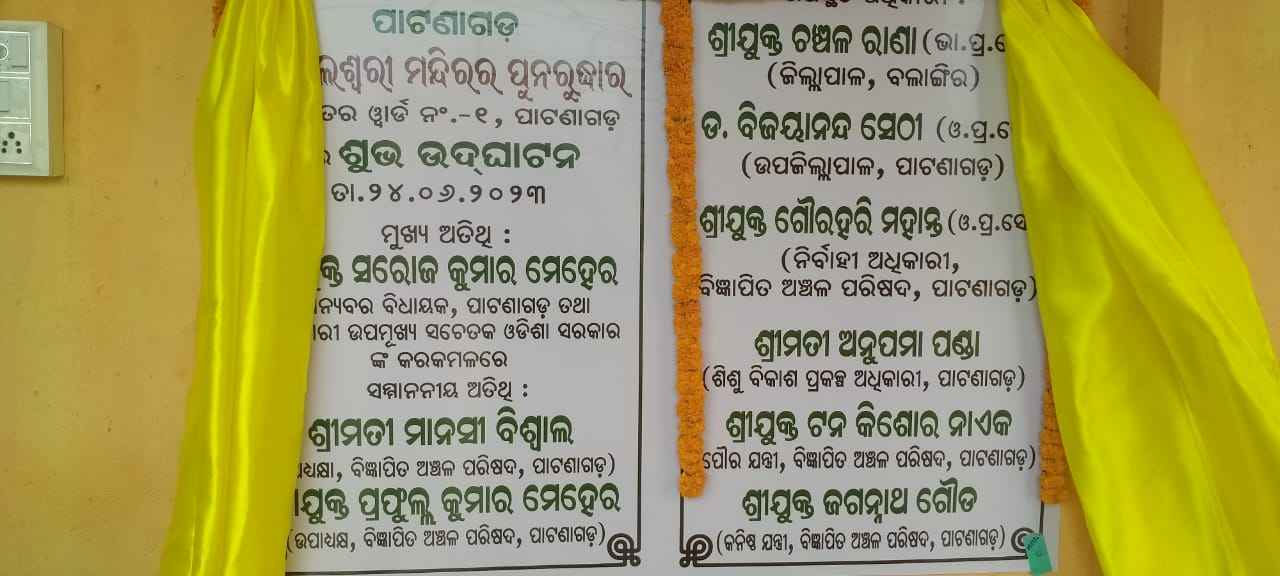 ପ୍ରଫୁଲ୍ଲ ମେହେର, ଇଓ ଗୌର ହରି ମହନ୍ତ ,ବିଭିନ୍ନ ୱାର୍ଡର କାଉନସିଲର ଙ୍କ ସହ ବିଜେଡି ଦଳର ଅନେକ କର୍ମକର୍ତ୍ତା ଉପସ୍ଥିତ ଥିଲେ।ମାନ୍ୟବର ମୁଖ୍ୟମନ୍ତ୍ରୀ ନବୀନ ପଟ୍ଟନାୟକଙ୍କ ଆଶୀର୍ବାଦରେ ପାଟଣାଗଡ ଏନ୍ ଏସି ଅଂଚଳରେ ଅନେକ ଉନ୍ନୟନ ମୂଳକ କାର୍ଯ୍ୟ କରାଯାଇଛି ଓ ଆଗାମୀ ଦିନରେ ମଧ୍ୟ କରାଯିବ ବୋଲି କହିଥିଲେ ବିଧାୟକ ସରୋଜ ମେହେର।