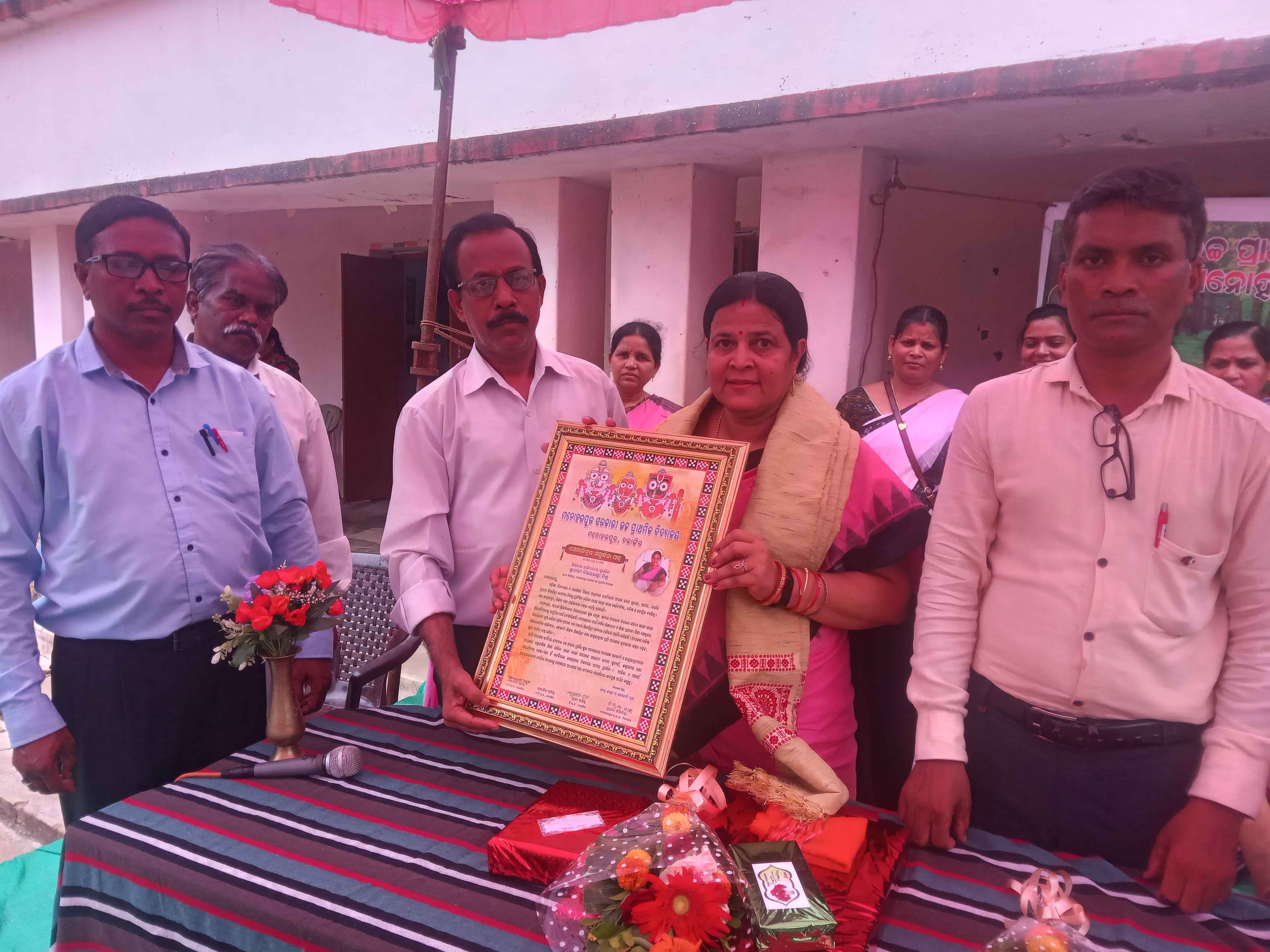 ମିଶ୍ର ସ୍କୁଲ ର ସହ ଶିକ୍ଷୟିତ୍ରୀ ଚନ୍ଦ୍ରମା ଦାସ ଙ୍କୁ ଦାୟିତ୍ଵ ହସ୍ତାନ୍ତର କରିଥିଲେ l ସ୍କୁଲର କିଛି ଛାତ୍ରଛାତ୍ରୀ ସ୍କୁଲ ର ପାରିପାର୍ଶ୍ୱିକ ବିକାଶ ଓ ଗୁଣାତ୍ମକ ଶିକ୍ଷା ପ୍ରଦାନ ଦିଗରେ ପ୍ରଧାନ ଶିକ୍ଷୟିତ୍ରୀ ଶ୍ରୀମତୀଙ୍କ ଅବଦାନ ସମ୍ପର୍କରେ ବକ୍ତବ୍ୟ ପ୍ରଦାନ କରିଥିଲେ l ସ୍କୁଲର ସମସ୍ତ ଛାତ୍ରଛାତ୍ରୀ ଓ ଶିକ୍ଷକ ଶିକ୍ଷୟିତ୍ରୀ ଯୋଗ ଦେଇ ପ୍ରଧାନଶିକ୍ଷତ୍ରୀ ଙ୍କୁ ମାନପତ୍ର ଓ ଉପଢ଼ୌକନ ଦେଇ ବିଦାୟକାଳୀନ ସମ୍ବର୍ଦ୍ଧନା ପ୍ରଦାନ କରିଥିଲେ