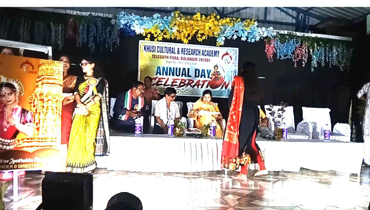 ବଲାଙ୍ଗିର,(ପ୍ରେରଣା ଖବର ): ବଲାଙ୍ଗିର ର ଅନ୍ୟତମ ସାଂସ୍କୃତିକ ଅନୁଷ୍ଠାନ ଖୁସି କଲଚରାଲ ଓ ରିସର୍ଚ ଏକାଡେମୀ ର ବାର୍ଷିକୋତ୍ସବ ସ୍ଥାନୀୟ ଟାଉନ ବାଳିକା ଉଚ୍ଚ ବିଦ୍ୟାଳୟ ପରିସରରେ ଅନୁଷ୍ଠିତ ହୋଇଯାଇଛି।ଅନୁଷ୍ଠାନ ର ସଭାପତି ପୂର୍ଣ୍ଣଚନ୍ଦ୍ର ତ୍ରିପାଠୀଙ୍କ ସଭାପତିତ୍ବ ରେ ଅନୁଷ୍ଠିତ ସାଂସ୍କୃତିକ ସଭାରେ ପୂର୍ବତନ ସାଂସଦ ତଥା ରାଜ୍ୟ ଗୃହ ନିର୍ମାଣ ନିଗମ ର ଅଧ୍ୟକ୍ଷ କଳିକେଶ ନାରାୟଣ ସିଂହଦେଓ, ବଲାଙ୍ଗୀର ପୌର ପରିଷଦ ଅଧ୍ୟକ୍ଷା ଶ୍ରୀମତୀ ଲିକା ସାହୁ ଓ ନାଟ୍ୟଭୂଷଣ ଜଗଦାନନ୍ଦ ଛୁରିଆ ବରେଣ୍ଯ ଅତିଥି ମର୍ଯ୍ୟାଦାରେ ଯୋଗଦେଇଥିଲେ।ସାମ୍ବାଦିକ ସନ୍ଦୀପ କୁମାର କୁଅଁର ଙ୍କ ମଂଚ ସଂଯୋଜନାର ଏହି କାର୍ଯ୍ୟକ୍ରମ ରେ ମଂଚ ଅଭିନେତା ରାମ ପ୍ରସାଦ ଦାଶଙ୍କୁ ମାନପତ୍ର ଉପାୟନ ଦେଇ ସମ୍ବର୍ଦ୍ଧିତ କରାଯାଇଥିବା ବେଳେ ଓଡିଶୀ ନୃତ୍ୟ ଶିଳ୍ପୀ ଅଭୀପସା ସାହୁ,ପ୍ରୀତି ପଲ୍ଲବୀ ପଟନାୟକଙ୍କୁ ନୃତ୍ୟଜ୍ୟୋତି ସମ୍ମାନ ପ୍ରଦାନ କରାଯାଇଥିଲା।ଏହା ସହ ପ୍ରାରମ୍ଭିକ ସଂଗୀତର ଗୀତିକାର କପିଳେଶ୍ଵର ଖମାରୀ , ନୃତ୍ୟ ଗୁରୁ ସୁଶ୍ରୀ ଜ୍ୟୋତିରେଖା ତ୍ରିପାଠୀ ଓ ଟାଉନ ବାଳିକା ଉଚ୍ଚ ବିଦ୍ୟାଳୟର ପ୍ରଧାନ ଶିକ୍ଷକ ନରେନ୍ଦ୍ରନାଥ ମିଶ୍ର ଙ୍କୁ ସମ୍ମାନିତ କରାଯାଇଥିଲା। ଶେଷରେ ଦେବାଶୀଷ ବାବୁ ଧନ୍ୟବାଦ ଅର୍ପଣ କରିଥିଲେ। ପ୍ରାରମ୍ଭ ରେ ସ୍ବାଗତ ସଂଗୀତ ଗାନ କରିଥିଲେ ଜ୍ୟୋତିରେଖା,ଶର୍ମିଷ୍ଠା,ଅଲିଭା ଓ ଚିନ୍ମୟୀ। କାର୍ଯ୍ୟକ୍ରମ ରେ ଅତିଥିମାନଙ୍କ ସମେତ ସମସ୍ତ ଛାତ୍ରୀ ଓ ସମ୍ବର୍ଦ୍ଦିତ ପ୍ରତିଭାଙ୍କୁ ଗଛ ଉପହାର ଦେଇ ପରିବେଶ ପ୍ରତି ସଚେତନ ହେବାକୁ ଆହ୍ବାନ ଦିଆଯାଇଥିଲା।ପରେ ପରେ ଶ୍ରୀମତୀ ଶର୍ମିଷ୍ଠା ହୋତାଙ୍କ ମଂଚ ସଂଯୋଜନାରେ ଗୁରୁ ସୁଶ୍ରୀ ଜ୍ୟୋତିରେଖା ତ୍ରିପାଠୀଙ୍କ ନିର୍ଦେଶନାରେ ଅନୁଷ୍ଠାନ ର ଛାତ୍ରୀମାନଙ୍କ ଦ୍ବାରା ଓଡିଶୀ ମଙ୍ଗଳାଚରଣ,ଓଡିଶୀ ଫ୍ୟୁଜନ,ଲୋକନୃତ୍ଯ ଓ ଅନ୍ଯାନ୍ଯ ନୃତ୍ୟ ପରିବେଷଣ କରାଯାଇଥିଲା।