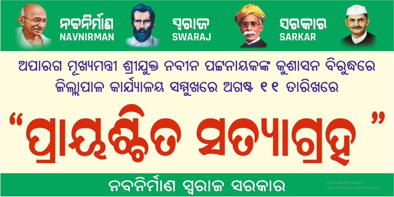 ନବନିର୍ମାଣ ସ୍ବରାଜ ସରକାର ଓଡିଶାର କୃଷକ ମାନଙ୍କ ଆର୍ଥିକ ଦୂରବସ୍ଥା ଦୁରକରି ଚାଷୀ କୁ ତାର ହକ ଦେବାପାଇଁ ଆଜି ସମଗ୍ର ଓଡିଶାରେ ଆଗକୁ ଆସି ଆଜି ସମସ୍ତ ଜିଲ୍ଲାପାଳଙ୍କ କାର୍ଯ୍ୟାଳୟରେ ପ୍ରାୟଶ୍ଚିତ ସତ୍ୟାଗ୍ରହ ଆରମ୍ଭ କରିଛି। ସେ ହିସାବରେ ଆଜି ସୁବର୍ଣ୍ଣପୁର ଜିଲ୍ଲାପାଳ ଙ୍କ କାର୍ଯ୍ୟାଳୟ ସାମ୍ନାରେ ନବନିର୍ମାଣ ସ୍ଵରାଜ ସରକାର ର ଜିଲ୍ଲା ଉପଦେଷ୍ଟା ରାଜେନ୍ଦ୍ର ମିଶ୍ର ଙ୍କ ନେତୃତ୍ବରେ ଆଜି ସତ୍ୟାଗ୍ରହ ରେ ବସିଥିଲେ। ସମଗ୍ର ଚାଷୀକୂଳ ଅର୍ଥନୀତିର ଏକ ଅସଂଗଠିତ ଶ୍ରେଣୀ ,ତେଣୁ ଅବହେଳିତ ମଧ୍ଯ ।ସେମାନଙ୍କୁ ସଂଗଠିତ କରି କୃଷକ ପାଇଁ ପ୍ରାଇସ ,ପ୍ରେଷ୍ଟିଜ,ପେନସନ ନାରାରେ