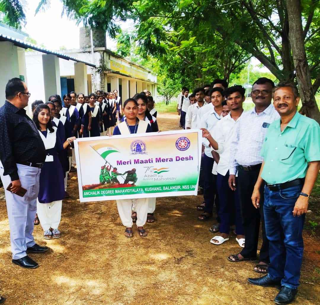 ବଲାଙ୍ଗିର : ଆଜି ବଲାଙ୍ଗିର ଜିଲ୍ଲାର ଆଞ୍ଚଳିକ ଡିଗ୍ରୀ ମହାବିଦ୍ୟାଳୟ କୁଶଙ୍ଗରେ ପ୍ରୋଗ୍ରାମ ଅଫିସର ଡ. ଲକ୍ଷ୍ମଣ ମେହେରଙ୍କ ଆବାହକତ୍ୱରେ ମୋ ମାଟି ମୋ ଦେଶ କାର୍ଯ୍ୟକ୍ରମ ଅନୁଷ୍ଠିତ ହୋଇ ଯାଇଛି l ଛାତ୍ରଛାତ୍ରୀମାନେ ଦେଶର ବୀର ଯବାନଙ୍କ ଉଦ୍ଦେଶ୍ୟରେ ଏକ ଦେଶାତ୍ମବୋଧକ ଗୀତ ପରିବେଷଣ କରିଥିଲେ l ଛାତ୍ରଛାତ୍ରୀମାନଙ୍କୁ ଦେଶର ମହାନ ସଂସ୍କୃତି ପ୍ରତି ସମ୍ମାନ, ଦୁର୍ନୀତିର ପ୍ରତିରୋଧ ତଥା ଦେଶ ପାଇଁ ଉତ୍ସର୍ଗୀକୃତ ହେବାକୁ ଶପଥ ପାଠ କରା ଯାଇଥିଲା l କାର୍ଯ୍ୟକ୍ରମରେ ବରିଷ୍ଠ ଅଧ୍ୟାପକ ଶମ୍ଭୁ ପ୍ରସାଦ ସାହୁ, ଅନନ୍ତ କୁମାର ଆର୍ଯ୍ୟ, ଅଧ୍ୟାପିକା ବିଜ୍ଞଶ୍ରୀ ଗୁରୁ ଯୋଗ ଦେଇ ପିଲାଙ୍କୁ ସଚେତନ ବାର୍ତ୍ତା ଦେଇଥିଲେ l