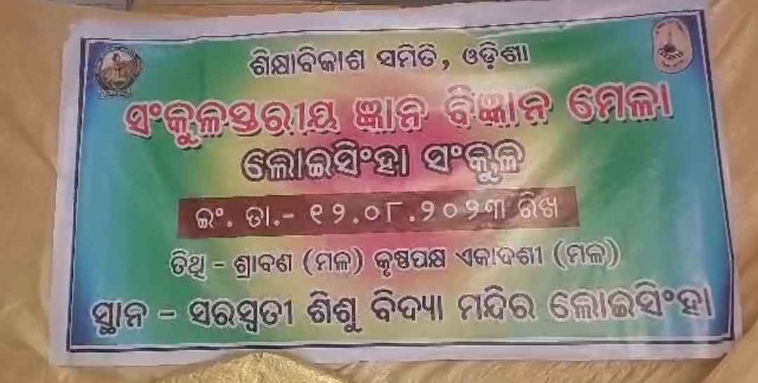 ଲୋଇସିଂହା, (ବିନୋଦ କୁମାର ଦୀପ) ଲୋଇସିଂହା ସରସ୍ବତୀ ଶିଶୁ ବିଦ୍ୟାମନ୍ଦିର ଲୋଇସିଂହା ରେ ପ୍ରଧାନ ଆଚାର୍ଯ୍ୟ ତଥା ସଂକୁଳ ସଂଯୋଜକ ଶ୍ରୀ ଶିବପ୍ରସାଦ ବାରିକ ଙ୍କ ଅଧ୍ୟକ୍ଷତାରେ ସଂକୁଳ ସ୍ତରୀୟ ଜ୍ଞାନ ବିଜ୍ଞାନ ମେଳା ଅନୁଷ୍ଠିତ ହୋଇଯାଇଛି l ଉଦଘାଟନୀ ଉତ୍ସବ ରେ ମୁଖ୍ୟ ଅତିଥି ଭାବେ ଅଵସର ପ୍ରାପ୍ତ ବିଜ୍ଞାନ ଶିକ୍ଷକ ଶ୍ରୀ ଶିବପ୍ରସାଦ ତ୍ରିପାଠୀ ଯୋଗ ଦେବାସହ ପ୍ରଦୀପ ପ୍ରଜ୍ବଳନ କରିଥିଲେ l ଉକ୍ତ ଜ୍ଞାନ ବିଜ୍ଞାନ ମେଳାରେ 40 ଟି ବିଜ୍ଞାନ ଓ ଗଣିତ ପ୍ରକଳ୍ପ ପ୍ରଦର୍ଶିତ ହୋଇଥିବା ବେଳେ ଗଣିତ, ବିଜ୍ଞାନ ଓ ସଂସ୍କୃତ ଜ୍ଞାନ ପ୍ରଶ୍ନମଞ୍ଚ, ନିବନ୍ଧ, ପତ୍ରବାଚନ, କଥା କଥନ, ମୂର୍ତ୍ତିକଳା ପ୍ରତିଯୋଗିତା, ଲୋକନୃତ୍ୟ ଆଦି ଅନୁଷ୍ଠିତ ପୂର୍ବକ କୃତି ପ୍ରତିଯୋଗୀ ମାନଙ୍କୁ ପୁରସ୍କୃତ କରାଯାଇଥିଲା l