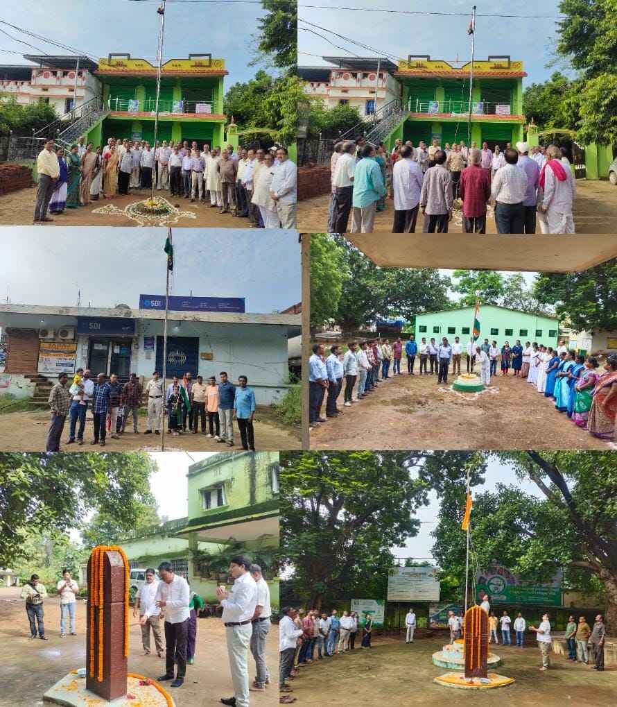 ବରଗଡ:-ଆଜି ସ୍ୱାଧିନତାର ୭୭ତମ ସ୍ୱାଧିନତା ଦିବସ ବରଗଡ ଜିଲ୍ଲା ବିଜେପୁର ଠାରେ ମହାସମାରୋହରେ ପାଳିତ ହୋଇଯାଇଛି।ଏ ପରିପ୍ରେକ୍ଷୀରେ ବରିଷ୍ଠ ନାଗରିକ ସଂଘର ସଭାପତି ନବକିଶୋର ସାହୁ ଜାତୀୟ ପତାକା ଉତ୍ତୋଳନ କରିଥିବାବେଳେ, ସ୍ଥାନୀୟ ଭାରତୀୟ ଷ୍ଟେଟ ବ୍ୟାଙ୍କ ସମ୍ମୁଖରେ ସିନିୟର୍ ଆସିଷ୍ଟାଣ୍ଡ ବୃନ୍ଦାବନ ଭୋସାଗର ଜାତୀୟ ପତାକା ଉତ୍ତୋଳନ କରିଥିଲେ।ପଞ୍ଚାୟତ ସମିତି ପରିସରରେ ତ୍ରିରଙ୍ଗା ପତାକା ବ୍ଲକର ଅଧ୍ୟକ୍ଷ ମୋତିରାମ ସାହୁ ଉତ୍ତୋଳନ କରିଥିବାବେଳେ,ଗୋଷ୍ଠୀ ସ୍ୱାସ୍ଥ୍ୟକେନ୍ଦ୍ର ବିଜେପୁର ଠାରେ ଗୋଷ୍ଠୀ ଜନସ୍ୱାସ୍ଥ୍ୟ ଅଧିକାରୀ ଡାକ୍ତର ସୁଶାନ୍ତ ମେହେର ଜାତୀୟ ପତାକା ଉତ୍ତୋଳନ କରିଥିଲେ।ସ୍ଥାନୀୟ ସାଧାରଣ ପ୍ୟାରେଡ ପଡିଆରେ ବ୍ଳକ ଅଧ୍ୟକ୍ଷ ମୋତିରାମ ସାହୁ ଜାତୀୟ ପତାକା ଉତ୍ତୋଳନ ସହ ୭୭ତମ ସ୍ୱାଧିନତା ଦିବସ ଉପରେ ଅଭିଭାଷଣ ପ୍ରଦାନ କରିଥିଲେ।ଏକ୍ରମରେ ସମସ୍ତ ସରକାରୀ ବେସରକାରୀ ଶିକ୍ଷାନୁଷ୍ଠାନ,ଅନୁଷ୍ଠାନ ସମେତ ସମସ୍ତ ସରକାରୀ କାର୍ଯ୍ୟାଳୟରେ ଖୁବ ଆଡମ୍ବର ପୂର୍ଣ୍ଣ ଭାବରେ