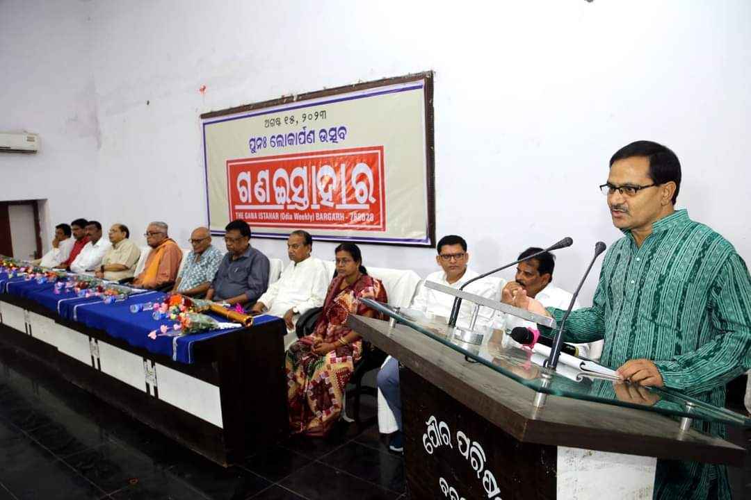 ବରଗଡ:-୧୯୮୧ ରେ ସ୍ବର୍ଗତ ଶିତିକଣ୍ଠ ପାଟ୍ଟଯୋଶୀଙ୍କ ଦ୍ଵାରା ପ୍ରତିଷ୍ଠିତ ଗ୍ରାମାଞ୍ଚଳର ଗରିବ ଖଟିଖିଆ,ନିଷ୍ପେସିତ ଜନଗଣଙ୍କ ସ୍ୱର 'ଗଣ ଇସ୍ତାହାର' ର ପୁନଃ ପ୍ରକାଶନ ଲୋକାର୍ପଣ ଉତ୍ସବ ମହା ସମାରୋହରେ ଅନୁଷ୍ଠିତ ହୋଇଛି। ଅଗଷ୍ଟ ୧୫ ରେ ବରଗଡ ବିଜୁ ପଟ୍ଟନାୟକ ଟାଉନ ହଲରେ ଏକ ବର୍ଣ୍ଣାଢ୍ୟ ପରିବେଶରେଭ ପୁନଃ ପ୍ରକାଶନର ଲୋକାର୍ପଣ ଉତ୍ସବ ହେଲା। ଏହି କାର୍ଯ୍ୟକ୍ରମରେ ଗଣଇସ୍ତାହାରର ମୁଖ୍ୟ ସମ୍ପାଦକ ପ୍ରସନ୍ନ କୁମାର ମିଶ୍ର ସଭାପତିତ୍ବ କରିଥିଲେ। ସମ୍ପାଦକ ଡ ପ୍ରଦୀପ