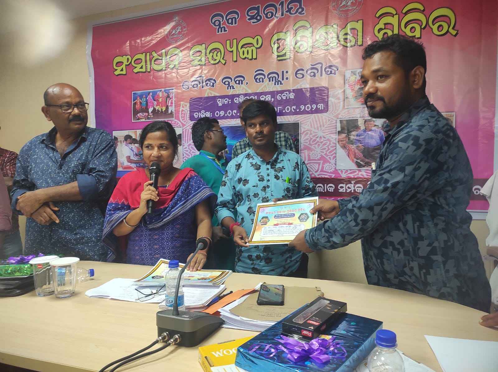 ବୌଦ୍ଧ-ପ୍ରେରଣାଖବର) ବୌଦ୍ଧ ଜିଲ୍ଲା ସୂଚନା ଓ ଲୋକ ସମ୍ପର୍କ ବିଭାଗ ଓ ଜିଲ୍ଲା ସଂସ୍କୃତି ବିଭାଗର ମିଳିତ ଆନୁକୁଲ୍ୟରେ ବ୍ଲକ୍ ସମ୍ମିଳନୀ କକ୍ଷରେ ବୌଦ୍ଧ ବ୍ଲକ୍ ସ୍ତରୀୟ ସଂସାଧନ ସଭ୍ୟଙ୍କ ଦୁଇଦିନିଆ ପ୍ରଶିକ୍ଷଣ ଶିବିରର ଉଦଜ୍ଜାପନୀ ଉତ୍ସବ ଅନୁଷ୍ଠିତ ହୋଇଯାଇଛି । କାର୍ଯ୍ୟକ୍ରମରେ ସମ୍ମାନିତ ଅତିଥି ଭାବେ ବ୍ଲକ ସାମାଜିକ ସୁରକ୍ଷା ଅଧିକାରୀ ଅଶ୍ୱିନୀ କୁମାର ପାଣ୍ଡେ ପ୍ରଶିକ୍ଷଣ ଶିବିରର ଉଦ୍ଦେଶ୍ୟ ଜ୍ଞାପନ, କଳା, ସାହିତ୍ୟ, ସଂସ୍କୃତି ଓ ପରମ୍ପରା କ୍ଷେତ୍ରରେ ବୌଦ୍ଧର ବିକାଶ, ସରକାରଙ୍କ ବିଭିନ୍ନ ଯୋଜନା ସମ୍ପର୍କିତ ବାର୍ତ୍ତା ଲୋକକଳା ମାଧ୍ୟମରେ ସମସ୍ତ ଗ୍ରାମରେ ପହଞ୍ଚାଇବା ପାଇଁ କଳାକାରମାନଙ୍କୁ ଆହ୍ଵାନ କରିଥିଲେ । ଜିଲ୍ଲା ସୂଚନା ଓ ଲୋକ ସମ୍ପର୍କ ଅଧିକାରୀ ରିତାକାନ୍ତି ବଳିୟାର ସିଂହ ପୂର୍ବଦିନର କାର୍ଯ୍ୟକ୍ରମ ର ସମୀକ୍ଷା, ଶିବିରର ଲକ୍ଷ୍ୟ ଓ ଉଦ୍ଦେଶ୍ୟ ଉପରେ ଆଲୋଚନା କରିବା ସହ ଆସନ୍ତା ସେପ୍ଟେମ୍ବର ତା. ୧୫ ରୁ ୩୦ ରିଖ ମଧ୍ୟରେ ପାଲା, ଦାସକାଠିଆ, ଘୋଡା ନାଚ, ଫୋକ ସଂଗୀତ ଓ ନୃତ୍ୟ ମାଧ୍ୟମରେ ପ୍ରତ୍ୟେକ ଗ୍ରାମରେ ସରକାରଙ୍କ ବିଭିନ୍ନ ଯୋଜନାର ସଫଳ ବାର୍ତ୍ତା ଲୋକମାନଙ୍କ ନିକଟରେ ପହଞ୍ଚାଇବା ପାଇଁ ତଥା ସୂଚନା, ଶିକ୍ଷା ଏବଂ ଯୋଗାଯୋଗ ଉପକ୍ରମରେ ଆୟୋଜିତ ଜିଲ୍ଲା ବ୍ୟାପୀ ସାଂସ୍କୃତିକ କାର୍ଯ୍ୟକ୍ରମ ସମ୍ପର୍କରେ କଳାକାରମାନଙ୍କର ଗୁରୁତ୍ଵପୂର୍ଣ୍ଣ ଭୁମିକା ରହିବ ଏବଂ ସମସ୍ତ କଳାକାରଙ୍କୁ ସୁଯୋଗ ଦିଆଯିବ ବୋଲି ମତବ୍ୟକ୍ତ କରିବା ସହ ଏହି କାର୍ଯ୍ୟକ୍ରମର ମାର୍ଗଦର୍ଶିକା ବିଷୟରେ ଆଲୋକପାତ କରିଥିଲେ । ସଂସାଧନ କର୍ମୀ ଭାବେ ଜିଲ୍ଲା କଳା ସଂସ୍କୃତି ସଂଘର ଉପସଭାପତି ଦିବ୍ୟଶଙ୍କର ରାଉତ ଲୋକକଳା ପରିବେଷଣରେ ନାଟକୀୟତାର ଗୁରୁତ୍ଵ, ପ୍ରମୁଖ ଆଠଗୋଟି ଯୋଜନାର ରୂପରେଖ, ସୂଚନା, ଶିକ୍ଷା ଓ ସଂଚାର ଅଭିଯାନ କୁ ସଫଳ କରିବା ପାଇଁ ବିଭିନ୍ନ ପଦକ୍ଷେପ ବିଷୟରେ ପୁଙ୍ଖାନୁପୁଙ୍ଖ ଆଲୋଚନା କରିବା ସହ ଆଲୋଚନାର ସାରାଂଶ, ଚୂଡାନ୍ତୀକରଣ ଓ ପ୍ରଶ୍ନୋତ୍ତର ରଖିଥିଲେ ।ଏହି କାର୍ଯ୍ୟକ୍ରମରେ ବରିଷ୍ଠ କଳାକାର, ସାହିତ୍ୟିକ, ନାଟ୍ୟକାର, ଗଣମାଧ୍ୟମପ୍ରତିନିଧି ଯୋଗ ଦେଇ ଆଲୋଚନା ରେ ସକ୍ରିୟ ଅଂଶ ଗ୍ରହଣ କରିଥିଲେ l ରଘୁନାଥ କୀର୍ତନ୍ୟ ମଣ୍ଡଳୀ, ଗୌଡି ସମ୍ପ୍ରଦା ଦଳ ଓ ସାଥି, ଗୋବିନ୍ଦପୁର ସଂକୀର୍ତ୍ତନ୍ୟ ପରିବେଷଣ , ବସନ୍ତ ରାଜହଂସ ପୁରମୁଣ୍ଡା ଖାଲିଆପାଲି ଏବଂ ରଘୁନାଥ ମେହେର, ବାଉଁଶୁଣି, ଜଗତ ରାମ ଜଗଦଲା, ଗୁଡ଼ପଡା ବାଉଁଶୁଣୀ, କୃଷ୍ଣଚନ୍ଦ୍ର ମିଶ୍ର ସରକାରଙ୍କ ବିଭିନ୍ନ ଯୋଜନା ଉପରେ ସଂଗୀତ ଓ ଭଜନ ପରିବେଷଣ କରିଥିଲେ l ଅନୁଜା ବେହେରା, ବାଉଁଶୁଣି, ଅଭାଗିନୀ ବେହେରା, ଜଗତି ଏବଂ ସାଥି କୃଷ୍ଣଗୁରୁ ପରିବେଷଣ କରିଥିଲେ l ଗଣେଶ୍ୱର ନାଗ ଓ ସାଥି, ପୂର୍ଣ୍ଣମାସି ପାଲା ଦଳ ବ୍ରହ୍ମଣି ପାଲା ପରିବେଷଣ କରିଥିଲେ l କାର୍ଯ୍ୟକ୍ରମରେ ରଞ୍ଜିତ ମହାନ୍ତି, ସାନନ୍ଦ ସାହୁ, ବ୍ଲକ ସଂସାଧାନ ସଭ୍ୟ ରଞ୍ଜନ ପାତ୍ର, କରୁଣାକର ବଗର୍ତ୍ତୀ, ସୌମିତ୍ରୀ ମାଟିଆ, ମାଧବ ରଣା, ଅଜିତ କୁମାର ସାହୁ, ରମାକାନ୍ତ ପ୍ରଧାନ ଘାସିରାମ ଝାଙ୍କର, ମନୋରଞ୍ଜନ ସାହୁ, ଜଗଦିଶ ପ୍ରଧାନ ଏବଂ ଜିତେନ୍ଦ୍ର କୁମାର ମହାନ୍ତି ସହଯୋଗ କରିଥିଲେ l କାର୍ଯ୍ୟକ୍ରମ ଶେଷରେ କଳାକାର ମାନଙ୍କୁ ସାର୍ଟିଫିକେଟ ପ୍ରଦାନ କରାଗଲା ଏବଂ ସୁଶ୍ରୀ ରିତାକାନ୍ତି ବଳିୟାର ସିଂହ ଧନ୍ୟବାଦ ଅର୍ପଣ କରିଥିଲେ l