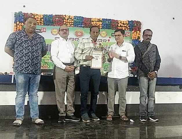 ତୁଷୁରା (ପଞ୍ଚାନନ ନାୟକ)- ବରଗଡ ଜିଲ୍ଲା ସଦର ମହକୁମା ସ୍ଥିତ ବିଜୁ ପଟ୍ଟନାୟକ ଟାଉନ ହଲ ଠାରେ ଆଯୋଜିତ ହଟ ନ୍ୟୁଜର ସ୍ବନକ୍ଷତ୍ର ମହୋତ୍ସବ ଓ ନୂଆଁଖାଇ ଭେଟଘାଟ କାର୍ଯ୍ୟକ୍ରମରେ ସାମ୍ବାଦିକ ବିଭୁତି ସମ୍ମାନରେ ତୁଷୁରା ର ଯୁବ ସାମ୍ବାଦିକ ମନୋଜ କୁମାର ଜୈନଙ୍କୁ ବରଗଡ ବିଧାୟକ ତଥା ଜିଲ୍ଲା ଯୋଜନା ବୋର୍ଡର ଅଧ୍ୟକ୍ଷ ଦେବେଶ ଆଚାର୍ଯ୍ଯ ମାନପତ୍ର ଓ ପୁଷ୍ପଗୁଚ୍ଛ ଦେଇ ସମ୍ବର୍ଦ୍ଧିତ କରିଛନ୍ତି ।