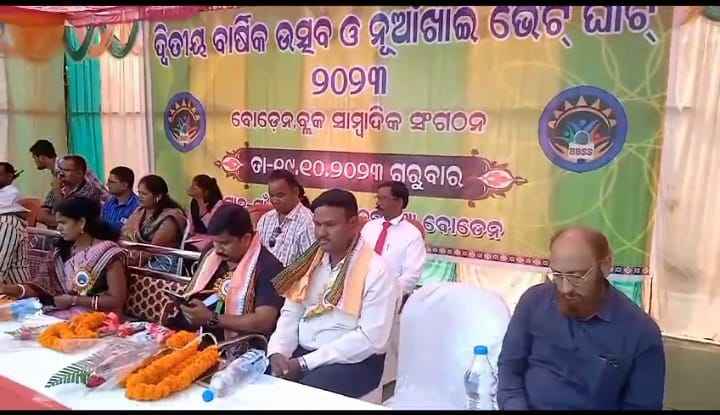 କହି ସମସ୍ତ ସମସ୍ୟା ର ଯଥା ଶୀଘ୍ର ସମାଧାନ କରାଯିବ ବୋଲି ତାଙ୍କ ବକ୍ତବ୍ୟ ପ୍ରଦାନ କରିଥିଲେ । ବୋଡ଼େନ ବ୍ଲକ ସାମ୍ବାଦିକ ସଙ୍ଗଠନ ର ଦ୍ଵିତୀୟ ବାର୍ଷିକ ଉତ୍ସବ ଓ ନୂଆଖାଇ ଭେଟଘାଟ ସମାରୋହରେ କଳା ଓ ସଂସ୍କୃତି ପୁନରୁଦ୍ଧାର ପରିଷଦ ଓଡ଼ିଶାର ସଭାପତି ତିର୍ମନ ମାଝୀଙ୍କ ତତ୍ତ୍ଵାବଧାନରେ ଲୋପାପାଇ ବସୁଥିବା ଅଧିବାସୀ ଲୋକନୃତ୍ୟ ରାମକାଠି, ମହୁରିବାଜା ,ଘୁମାର , ସମ୍ପ୍ରଦା , ଆଦି ସାଂସ୍କୃତିକ କାର୍ଯକ୍ରମ ଅନୁଷ୍ଟିତ ହୋଇଥିଲା । ସଙ୍ଗଠନର ସମ୍ପାଦକ ଭାଗ୍ୟବାନ ମାଝୀଙ୍କ ଦ୍ଵାରା ବାର୍ଷିକ ବିବରଣୀ ପଠନ କରିଥିବାବେଳେ ଓଡ଼ିଆ ଅଧ୍ୟାପିକା ଅଟୋ ନୋମସ କଲେଜ ଖଡିଆଳ ସୁଶ୍ରୀ ସାଗରିକା ପଣ୍ଡା ଓ ଅଧ୍ୟକ୍ଷ ପଲ୍ଲୀ ପ୍ରଗତି ଉଚ୍ଚ ମାଧ୍ୟମିକ ବିଦ୍ୟାଳୟ ଦୋହେଲପଡ଼ା ରୁଦ୍ର ମାଧବ ବାରିକ ମଞ୍ଚପରିଚାଲାନା କରିଥିଲେ । ସଙ୍ଗଠନର ସମସ୍ତ ସାମ୍ବାଦିକ ବନ୍ଧୁଙ୍କ ପୂର୍ଣ୍ଣ ସହଯୋଗ ରେ କାର୍ଯକ୍ରମ ଟି ସଫଳିଭୂତ ହୋଇଥିଲା । କାର୍ଯକ୍ରମ ଶେଷରେ ସଂଗଠନର ସହ ସମ୍ପାଦକ ଉପେନ୍ଦ୍ର ବାଗ ଧନ୍ୟବାଦ ଅର୍ପଣ କରିଥିଲେ ।